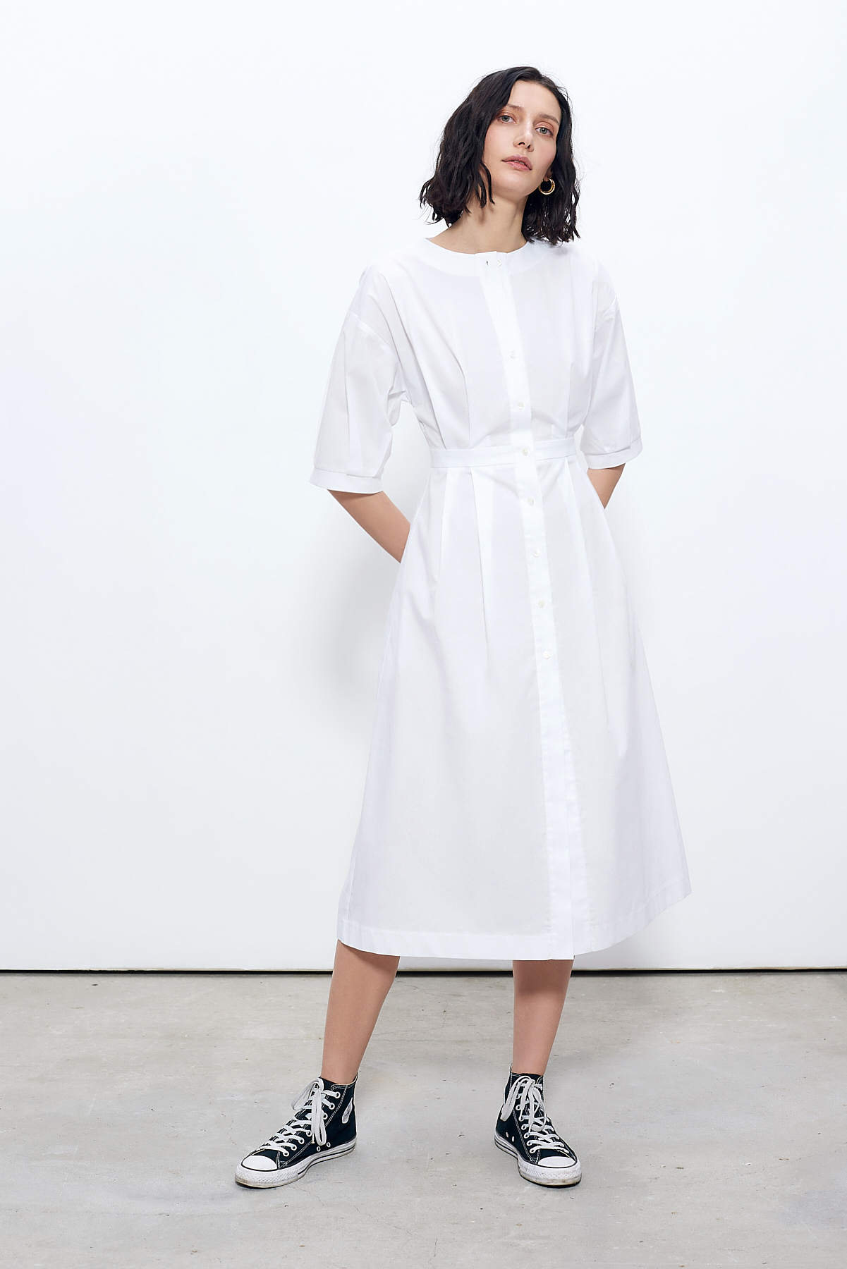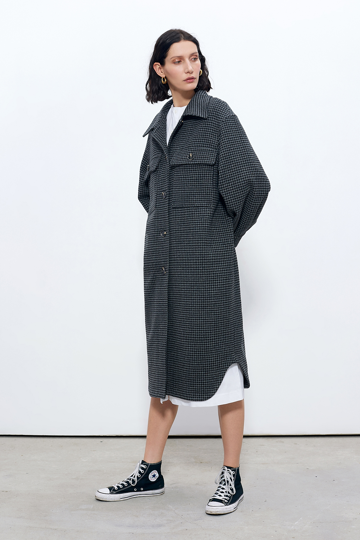 К работе над новой коллекцией бренд подошел как к созданию полноценного гардероба, в котором все вещи легко комбинируются между собой: от базисной одежды до нарядов для запоминающегося выхода в свет. Основой коллекции стали более повседневные модели — брючные костюмы, футболки и майки, платья. Верхняя одежда представлена утепленными рубашками в двух вариациях длины - стандартной и макси.