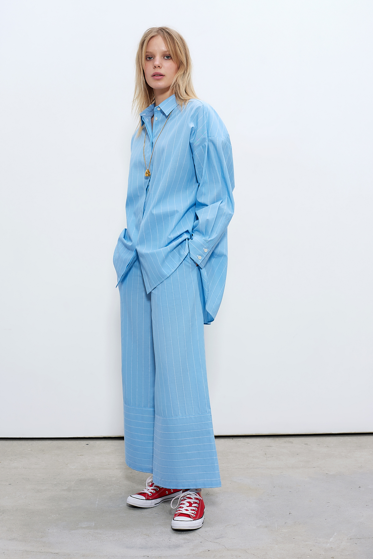 Особое внимание было уделено знаковому для бренда трикотажу, из которого в коллекции есть платья, тенниски, боди, костюмы, кроп-топы и свитера. Последние дизайнер бренда Юля Логвин рекомендует небрежно забрасывать на плечи в прохладные весенние вечера или использовать во время путешествий как "план Б" на случай резкой смены погоды. В соответствии с поводом в коллекции можно подобрать и платье: от городских моделей из легкого хлопка и льна, конструктивистских в духе Баухауса до изысканных шелковых в пол.