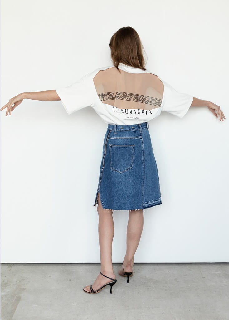 Вывернутый деним и костюмная полоска в коллекции Litkovskaya Pre-Spring 2020
