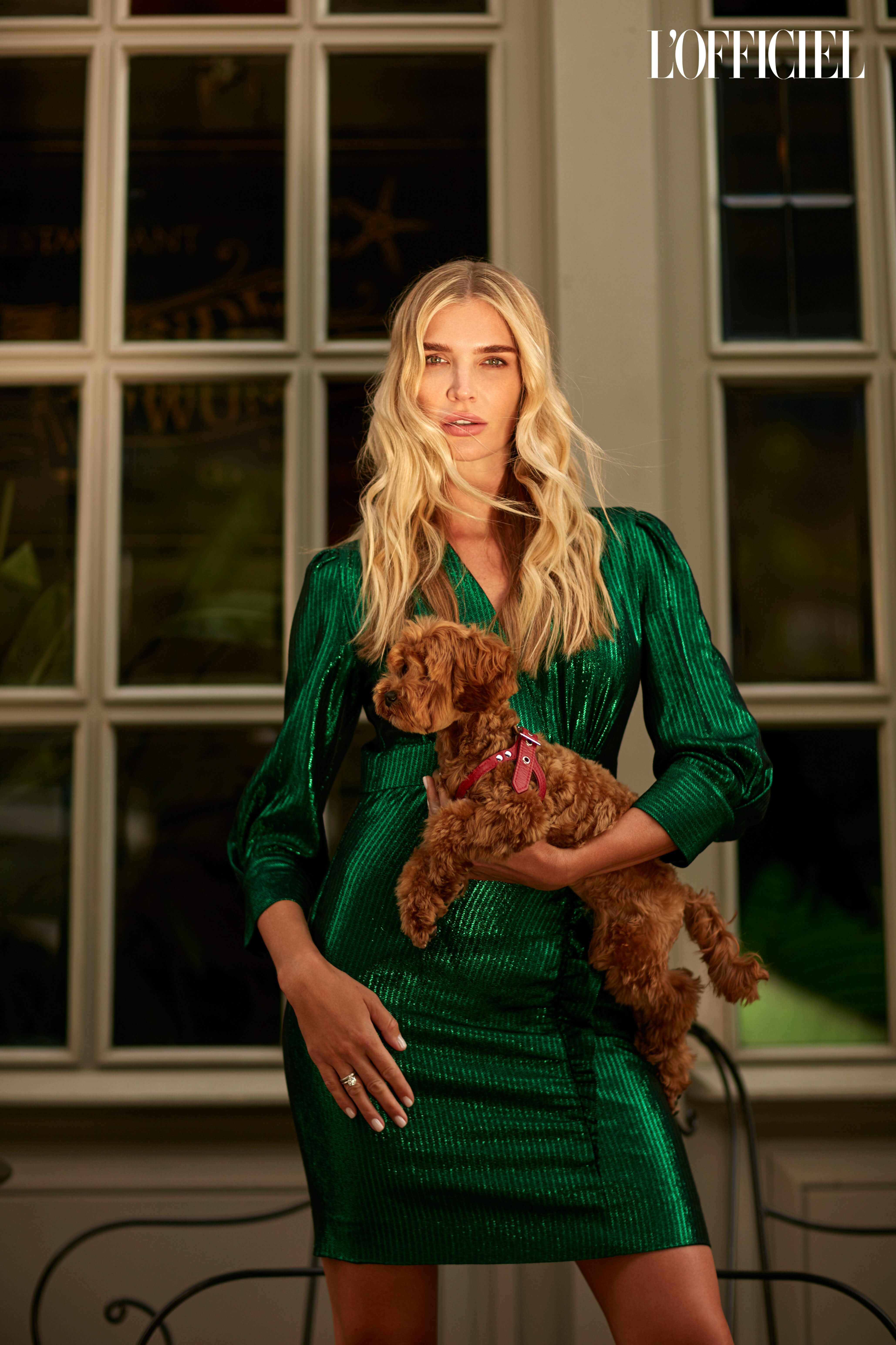 На Полине: пуловер из кашемира, платье из полиэстера Maje, сапоги — собственность модели