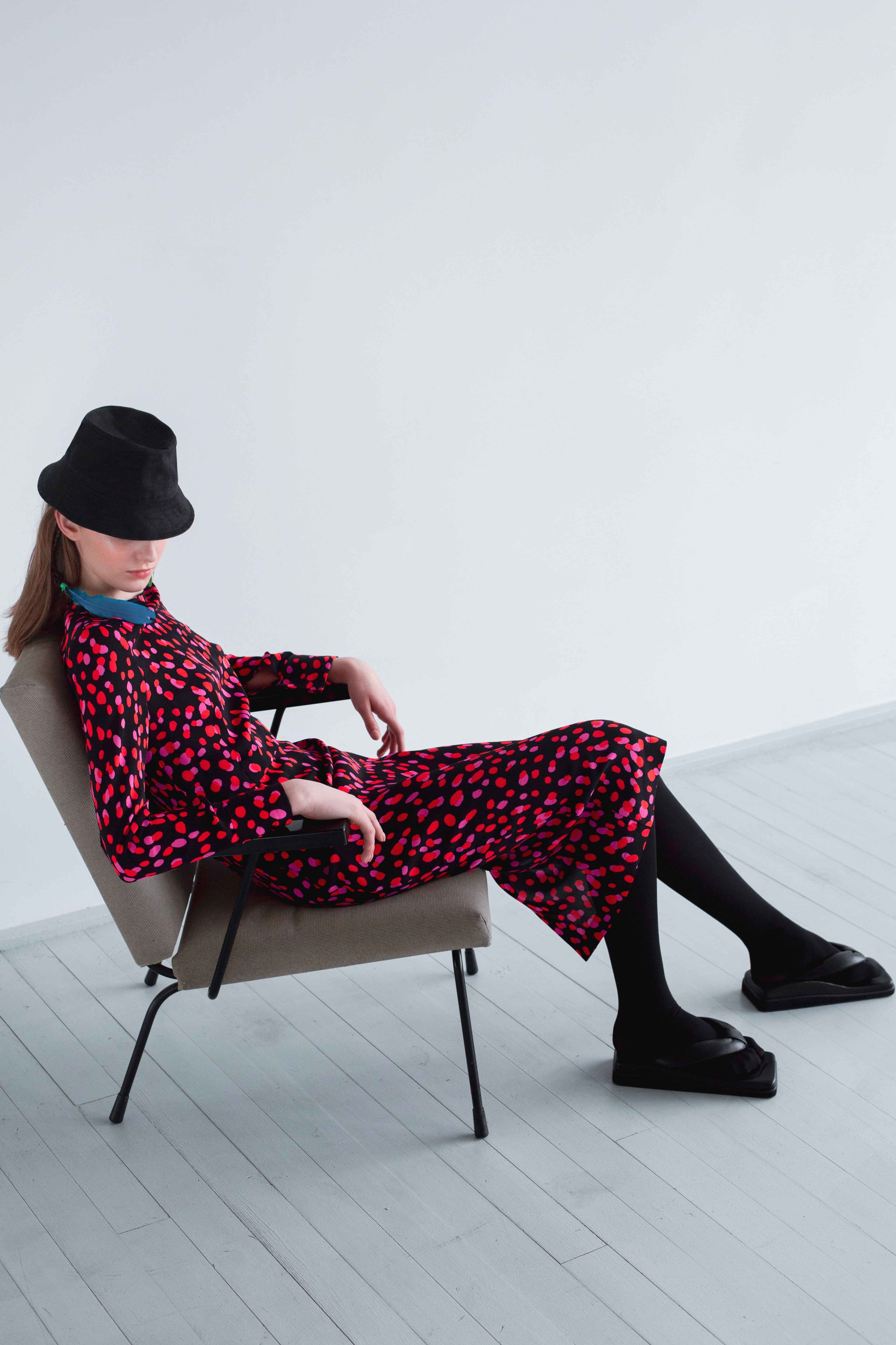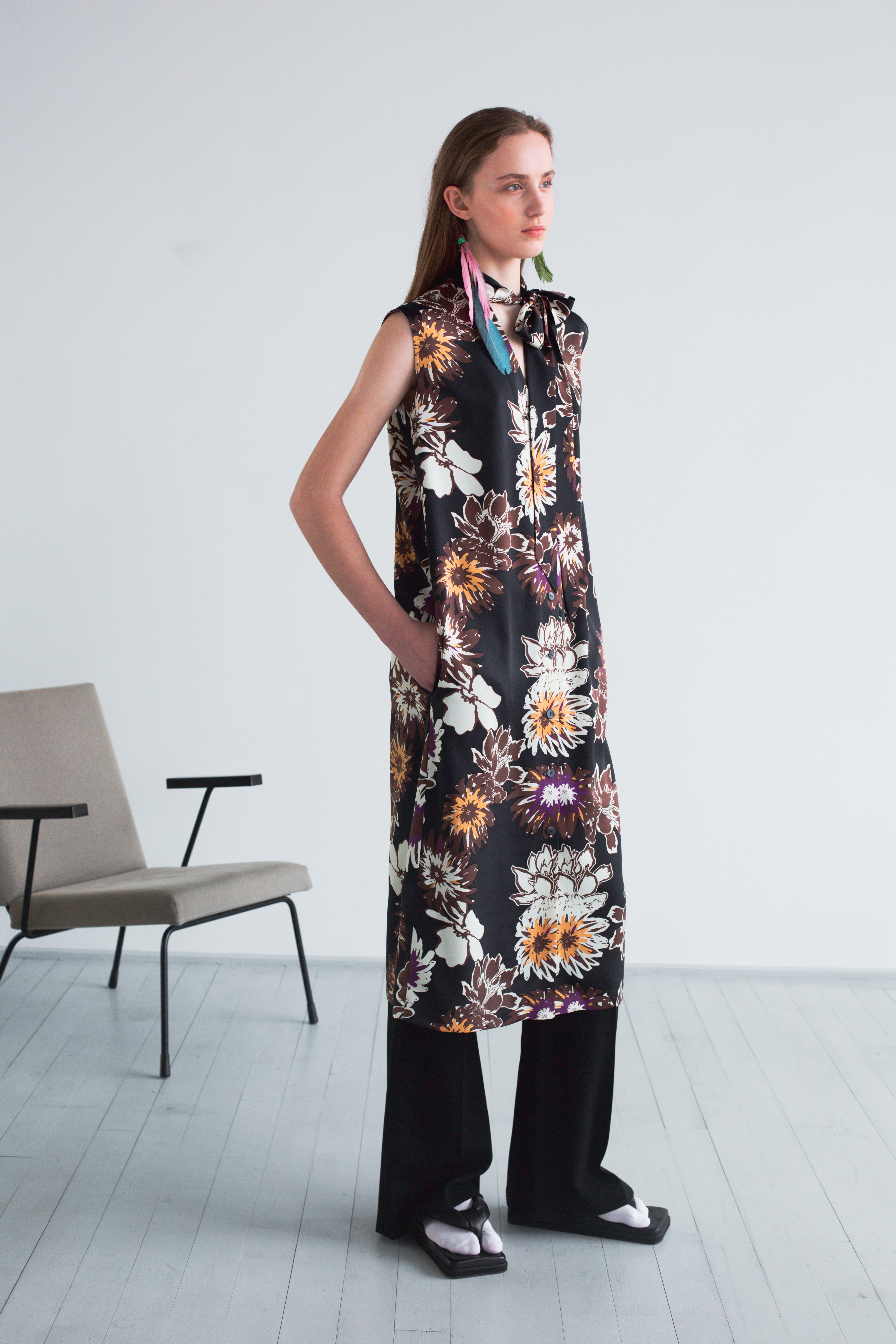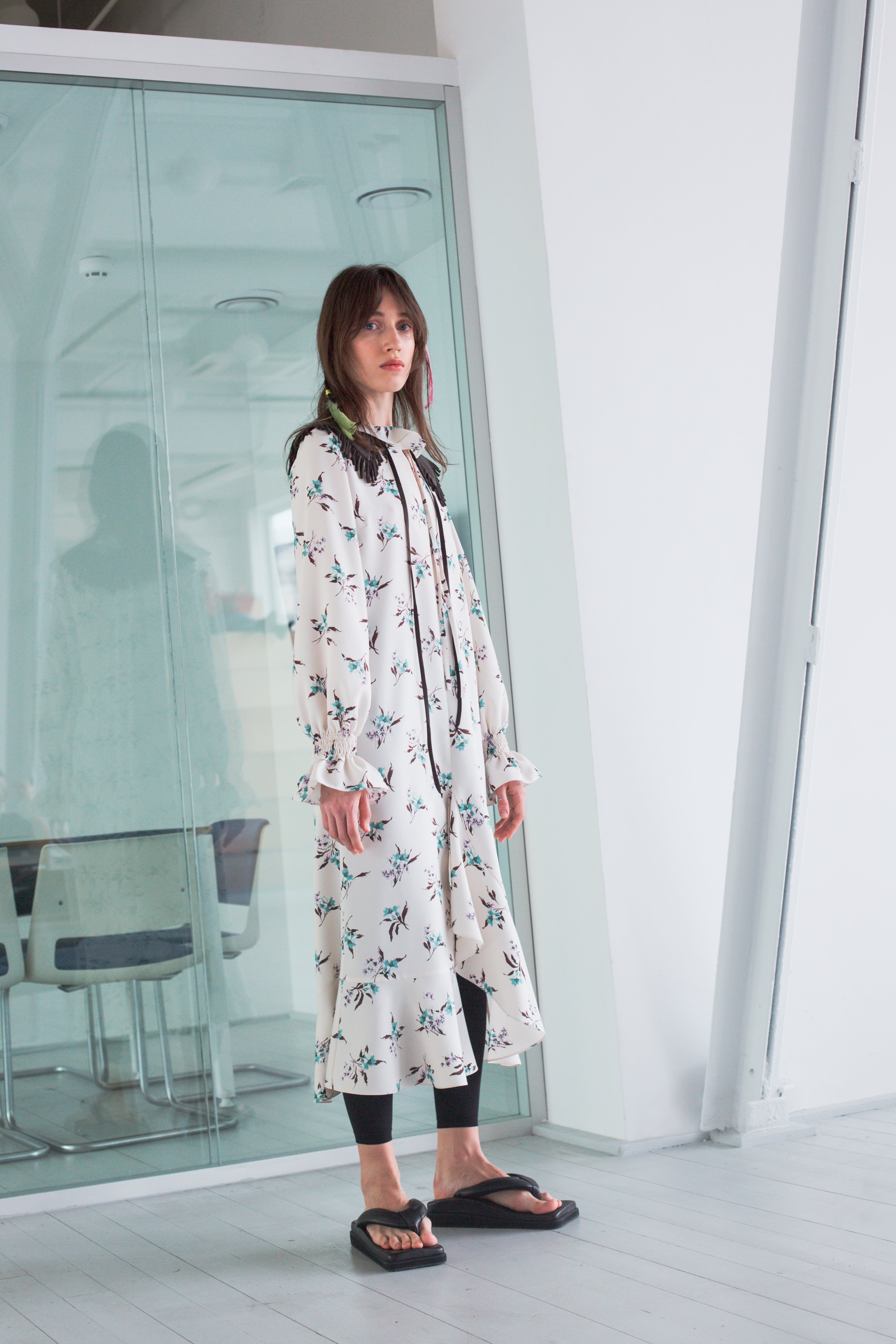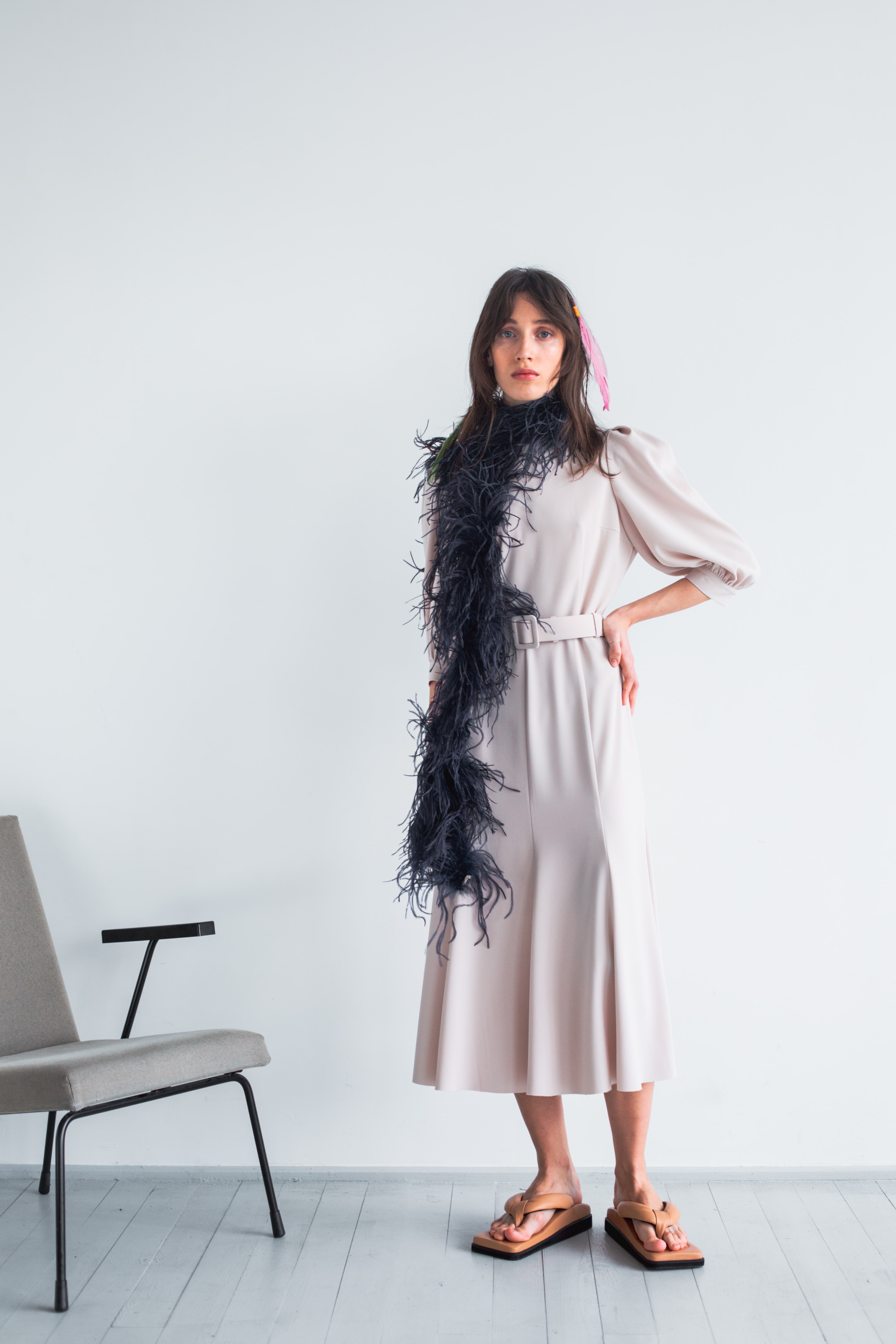 В новой коллекции дизайнер Лилия Пустовит объединила традиции косовской керамики, с её орнаментальным "древом жизни", и эстетику португальской этники — в частности декоративные приемы, которые встречаются на плитке "азулежу". Насыщенные осенние краски сочетаются с классической клеткой и знаковым для бренда цветочными принтом. Женственные платья дополнены отложными воротниками из экокожи, декорированными бахромой. Оставаясь верным своей ДНК, бренд Poustovit снова выдерживает грань между актуальностью и вневременной элегантностью.