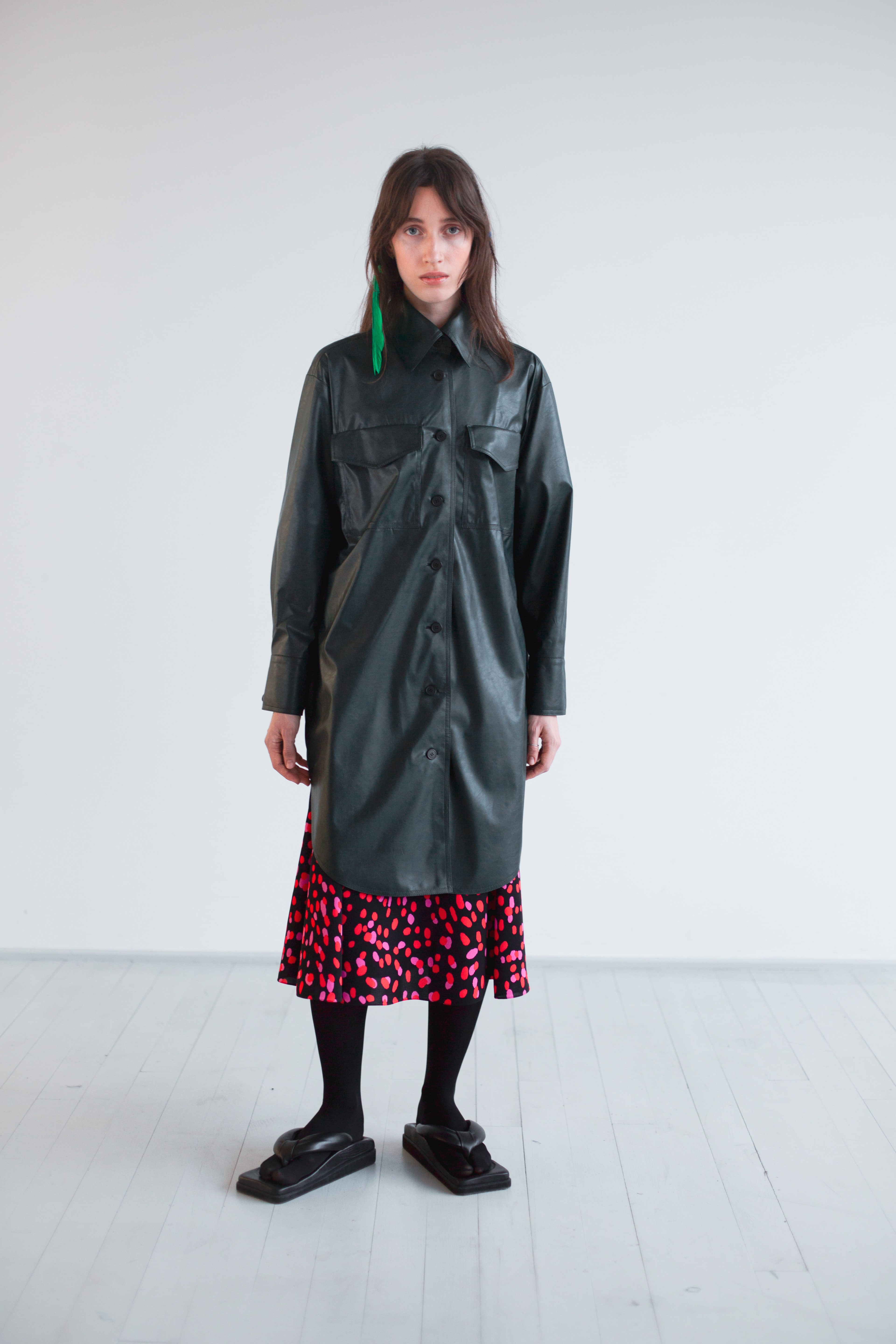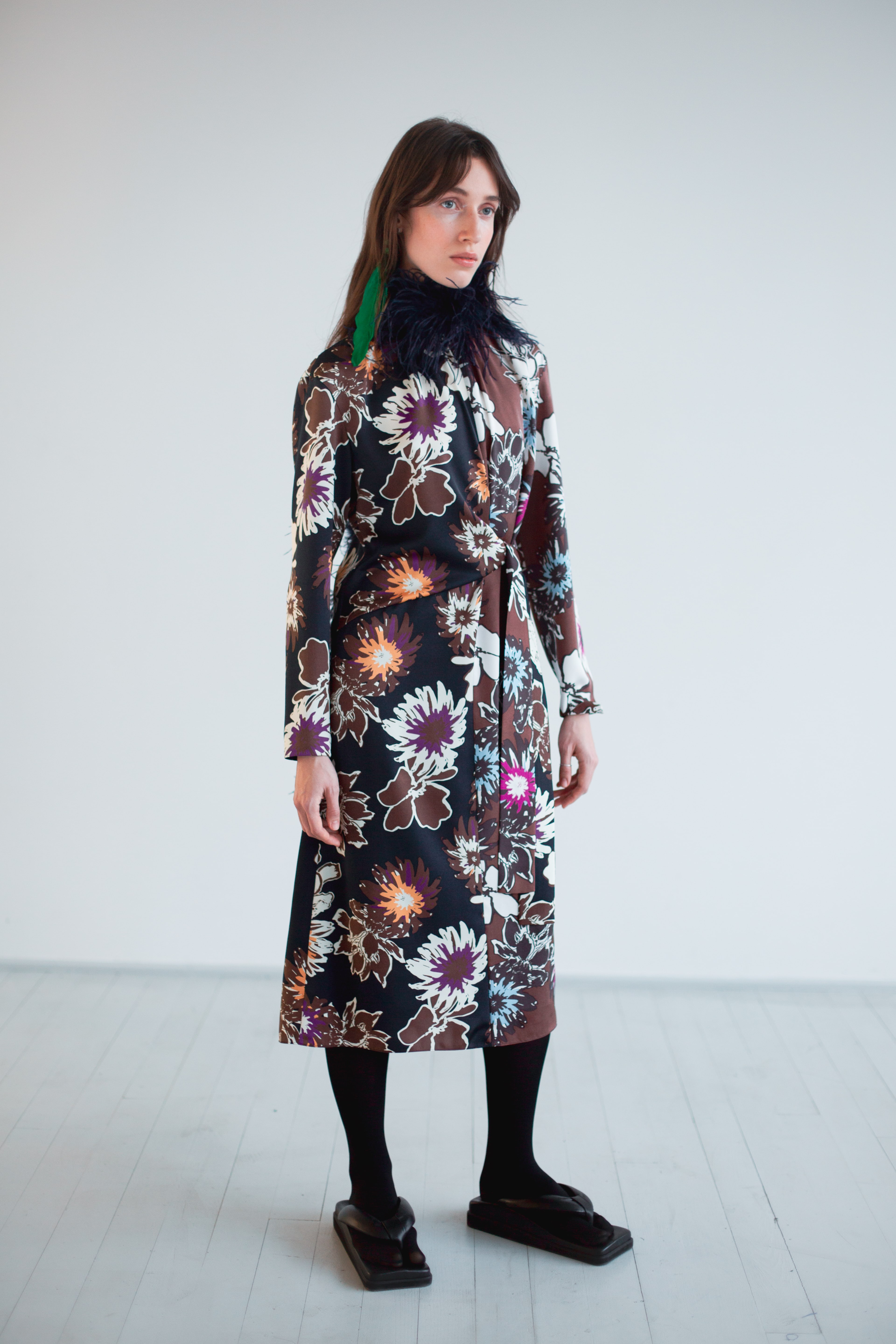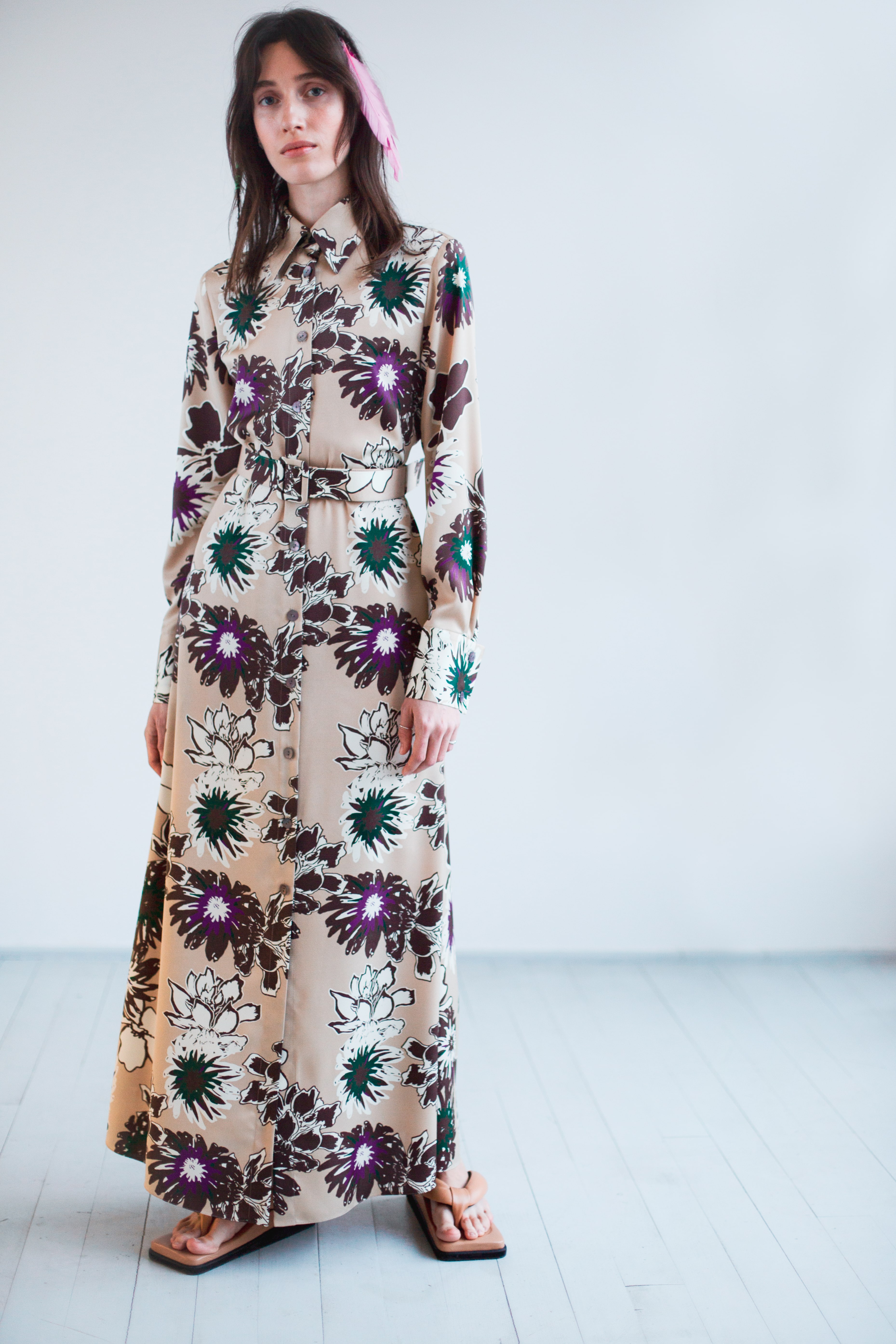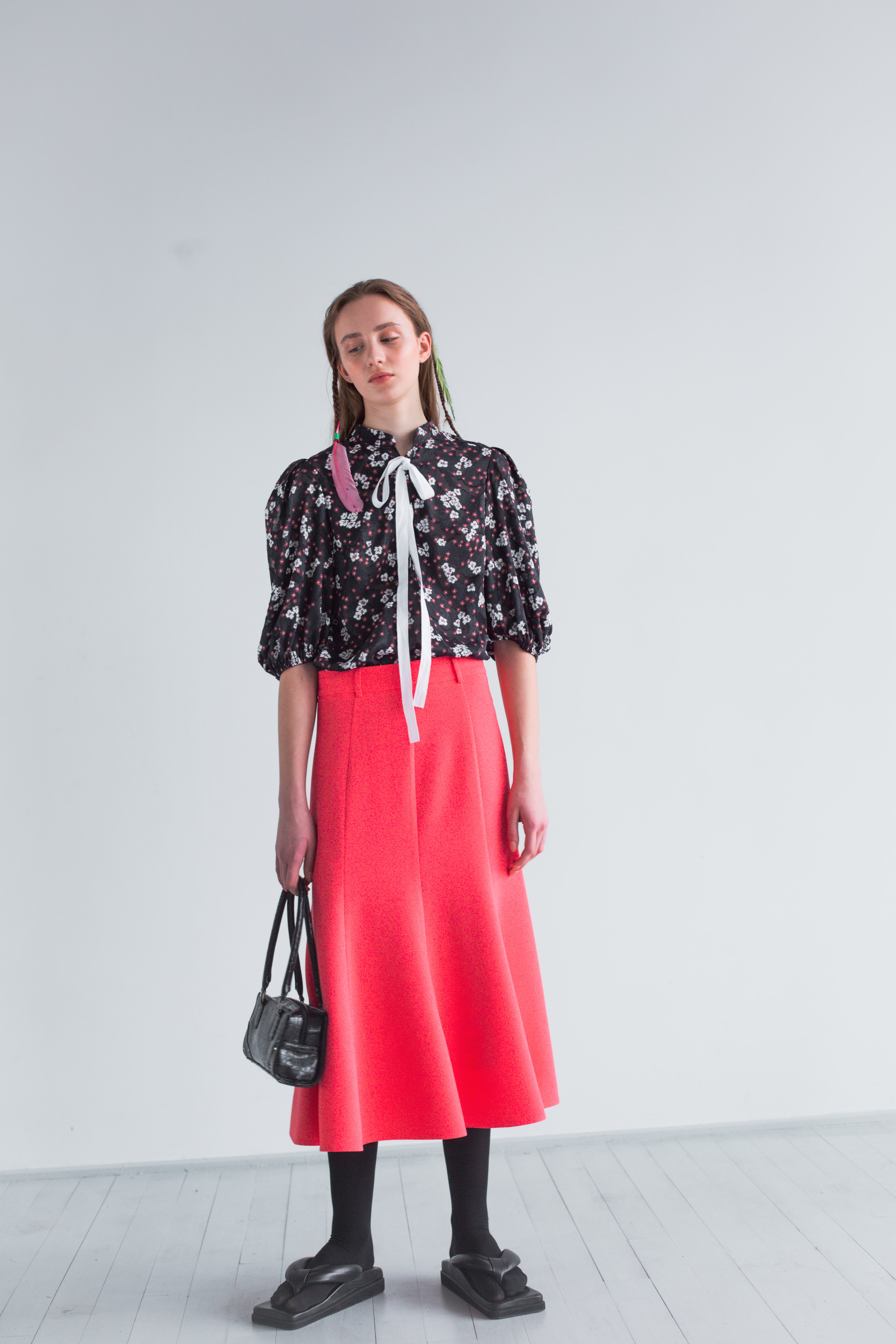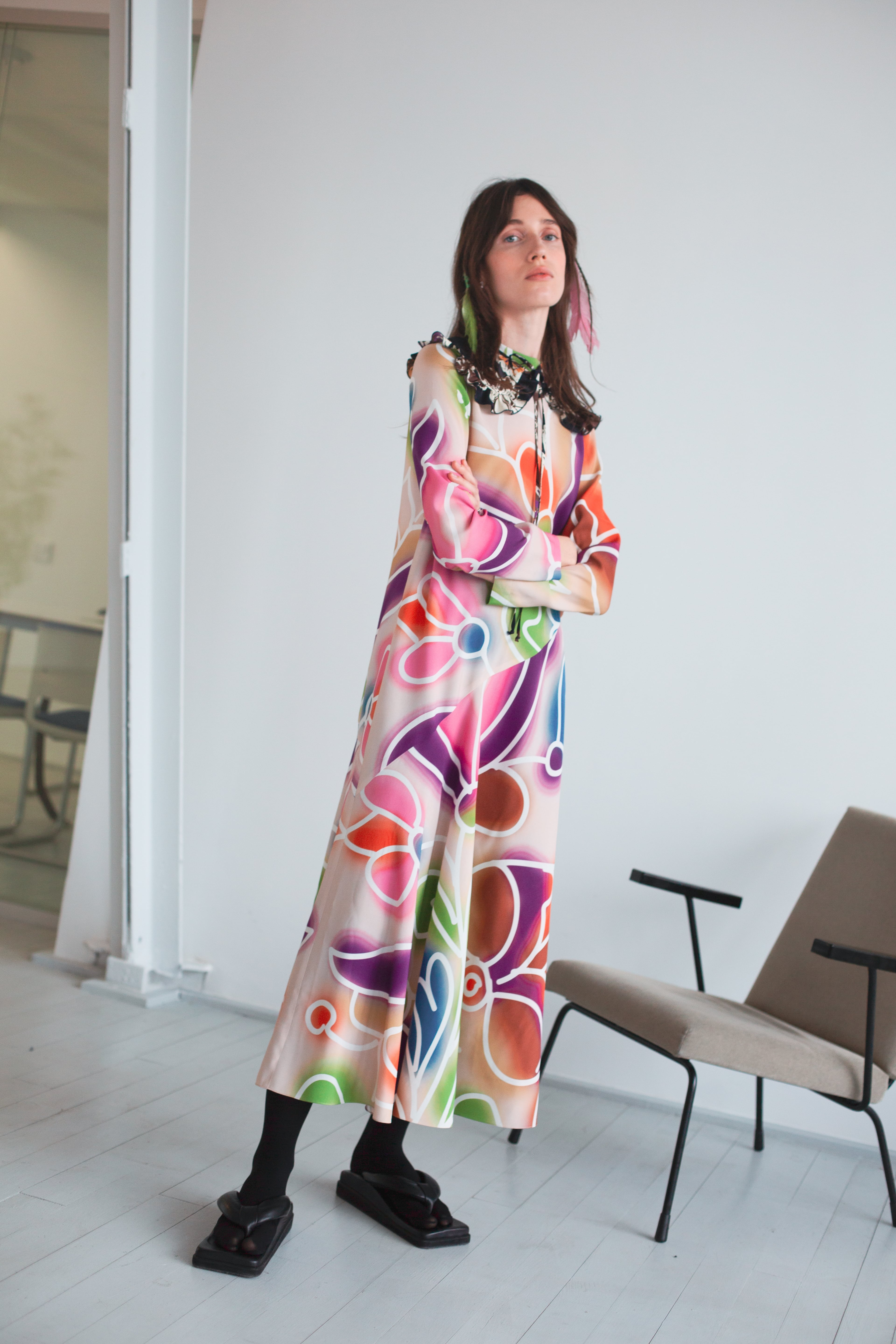 В новой коллекции дизайнер Лилия Пустовит объединила традиции косовской керамики, с её орнаментальным "древом жизни", и эстетику португальской этники — в частности декоративные приемы, которые встречаются на плитке "азулежу". Насыщенные осенние краски сочетаются с классической клеткой и знаковым для бренда цветочными принтом. Женственные платья дополнены отложными воротниками из экокожи, декорированными бахромой. Оставаясь верным своей ДНК, бренд Poustovit снова выдерживает грань между актуальностью и вневременной элегантностью.