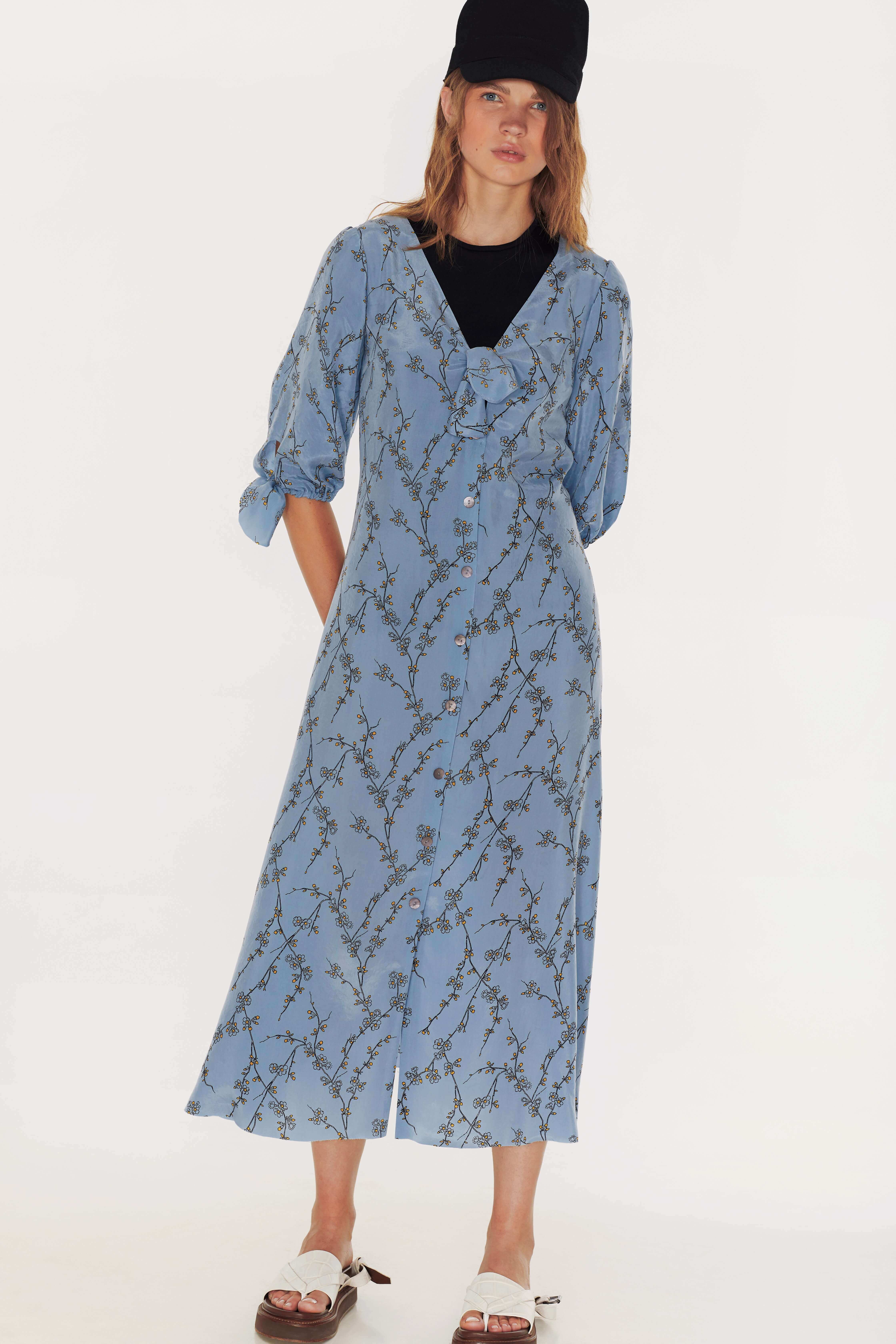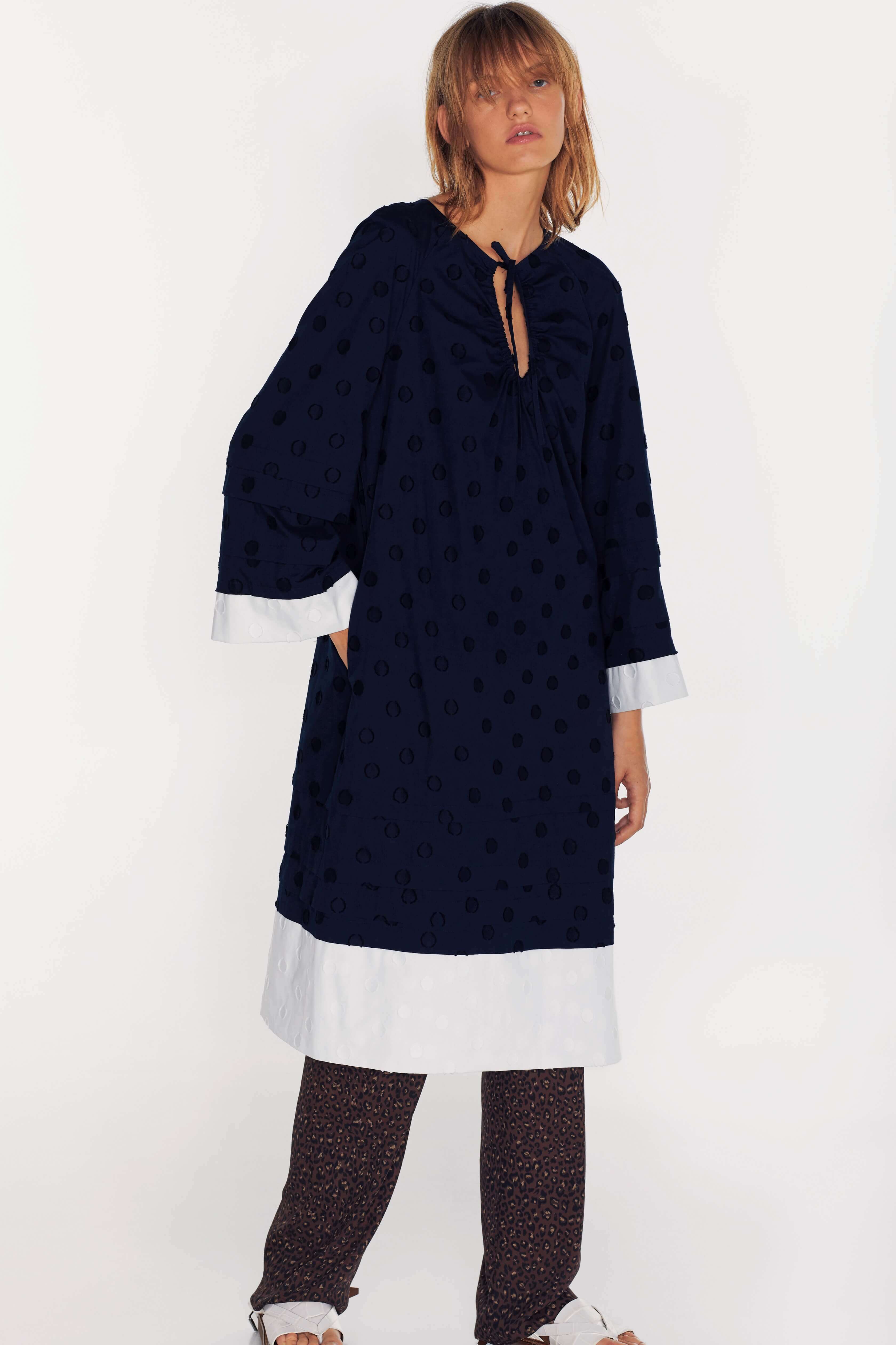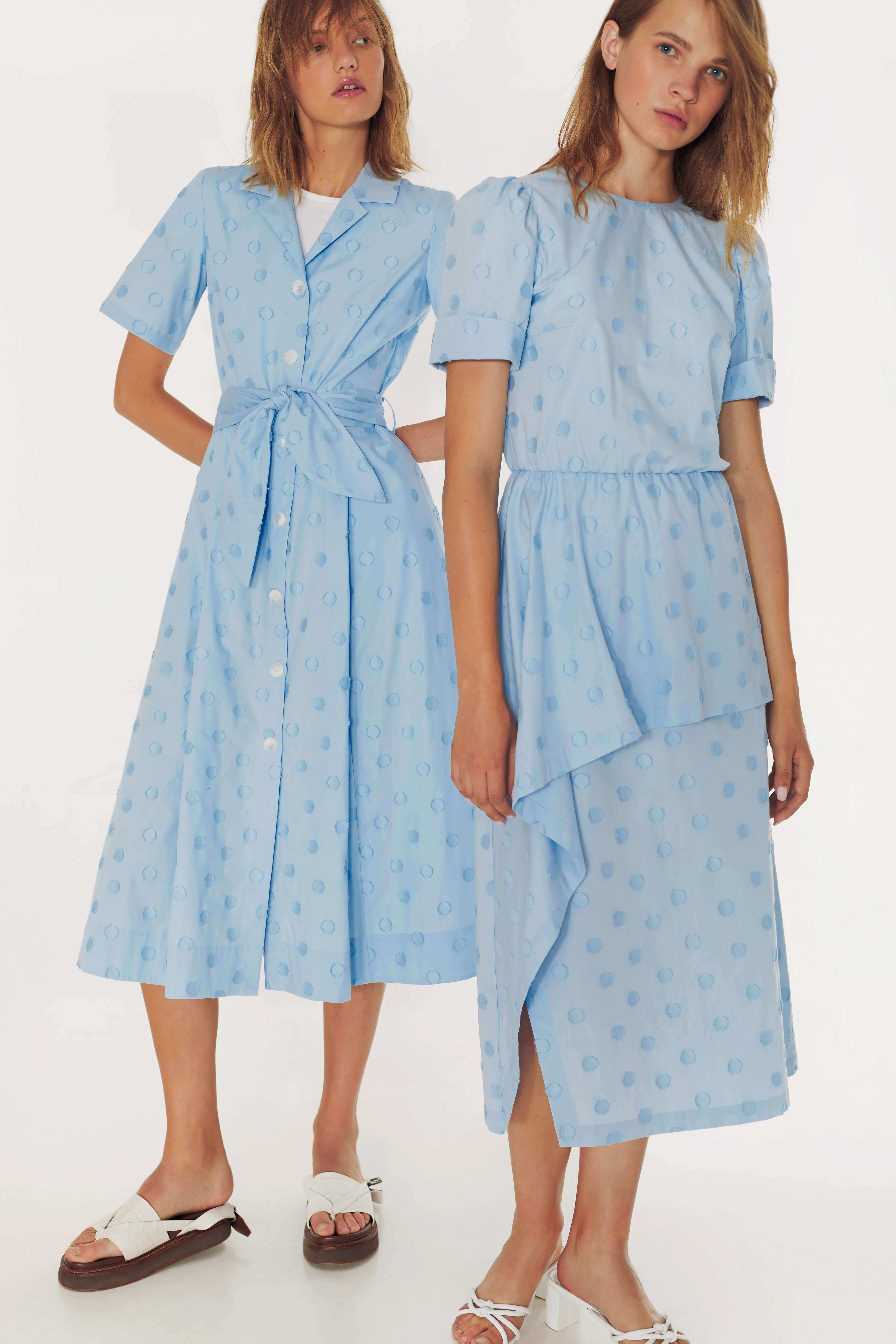 В одежде и аксессуарах использованы ключевые элементы — узлы из ткани. Они есть на деталях в рукавах, декольте и сумках-узелках.