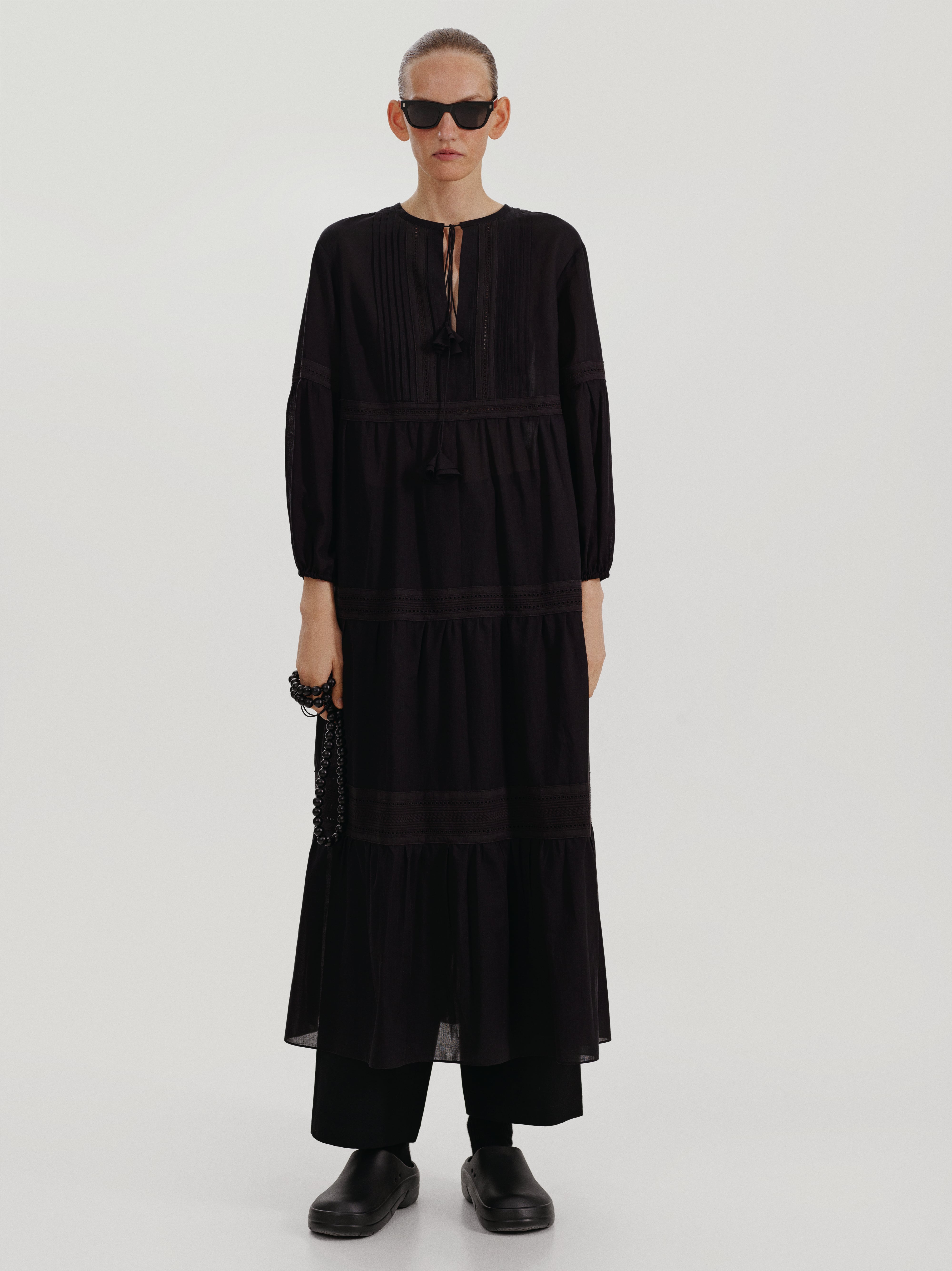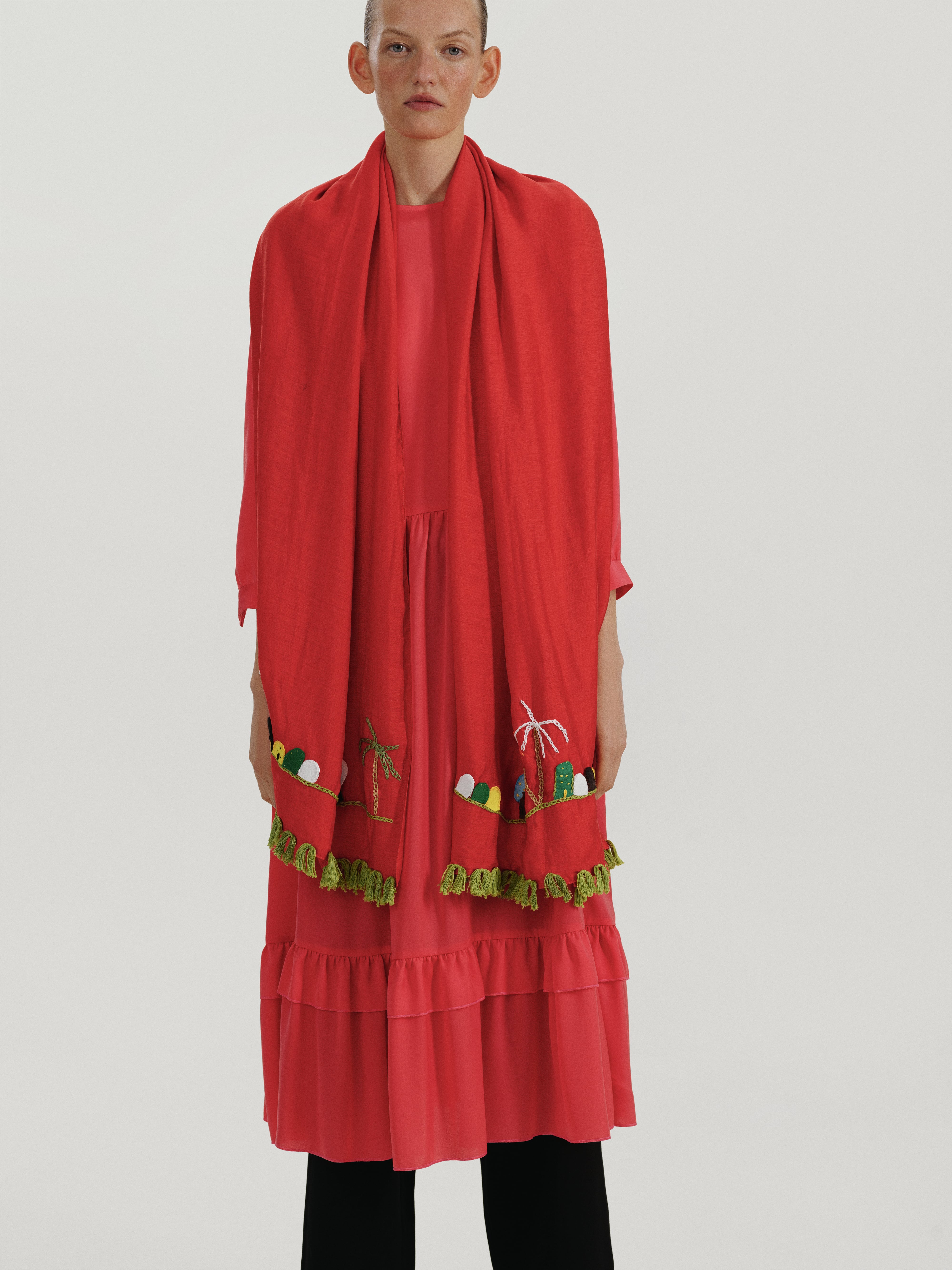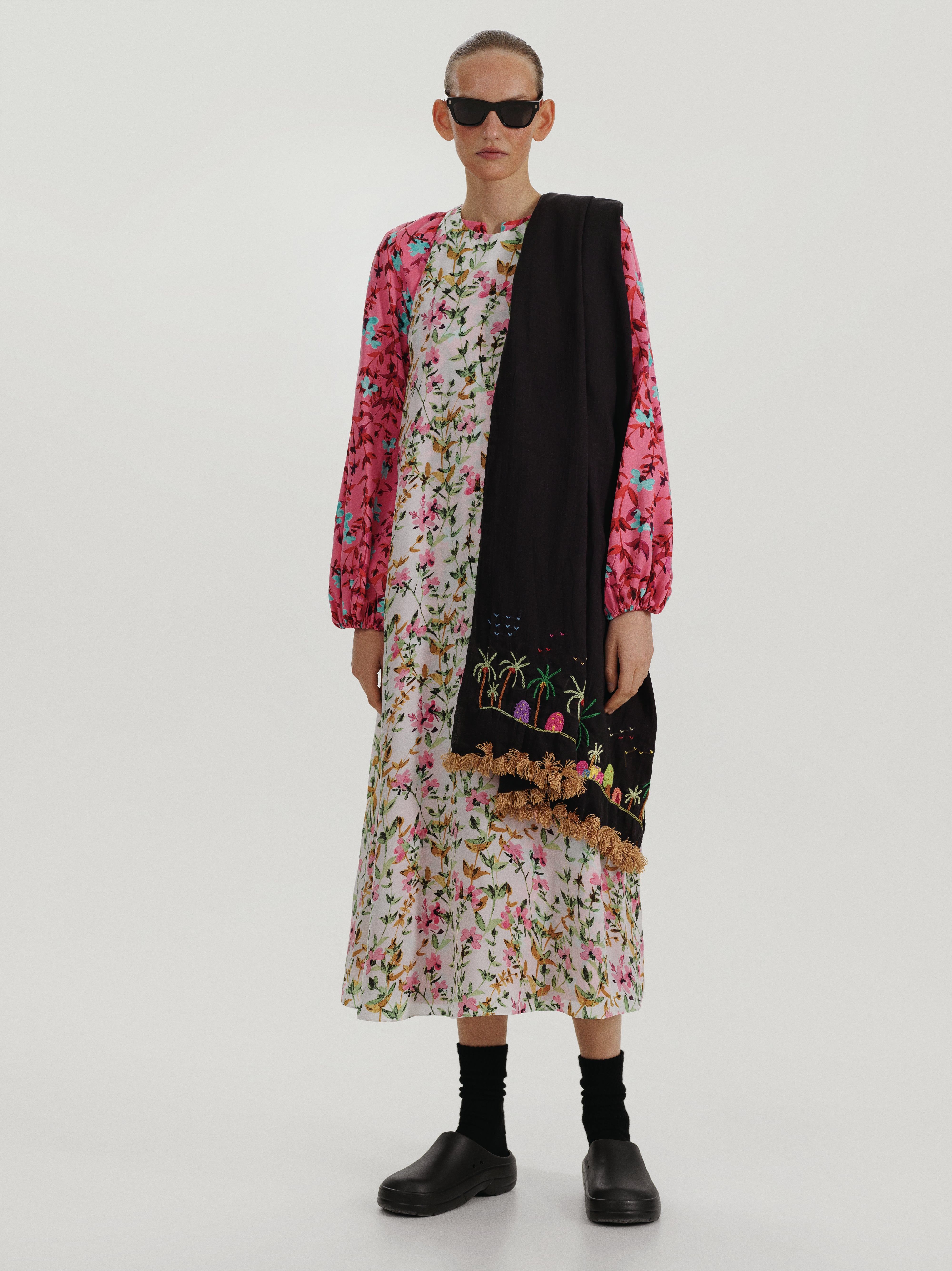 Южноафриканские мотивы Лилия сочетает с украинскими традиционными элементами кроя и декора. Платья в коллекции дополняют вышивки, а длинные шарфы — инфантильные изображения пальм и яркого солнца, напоминающие детские рисунки.