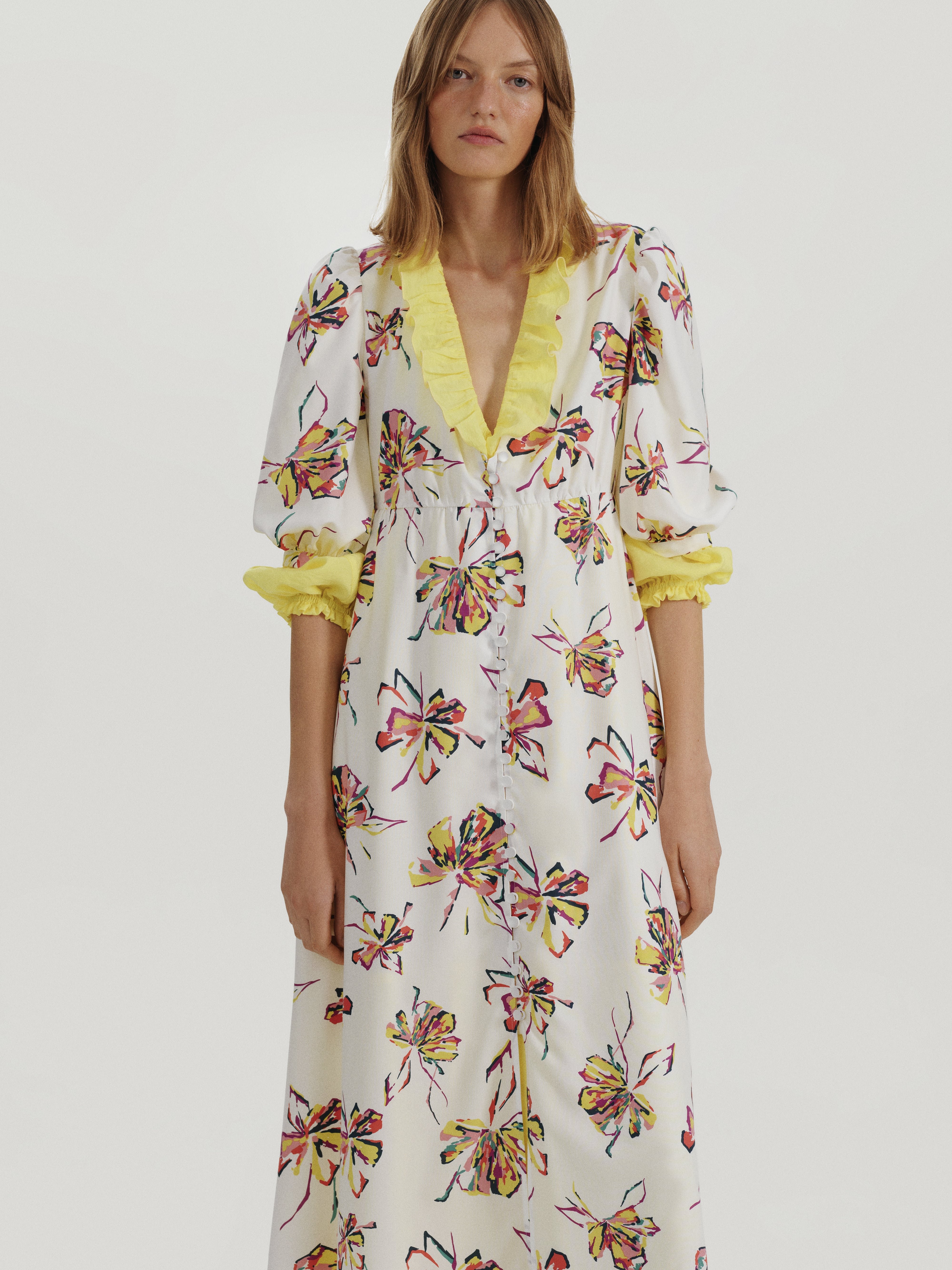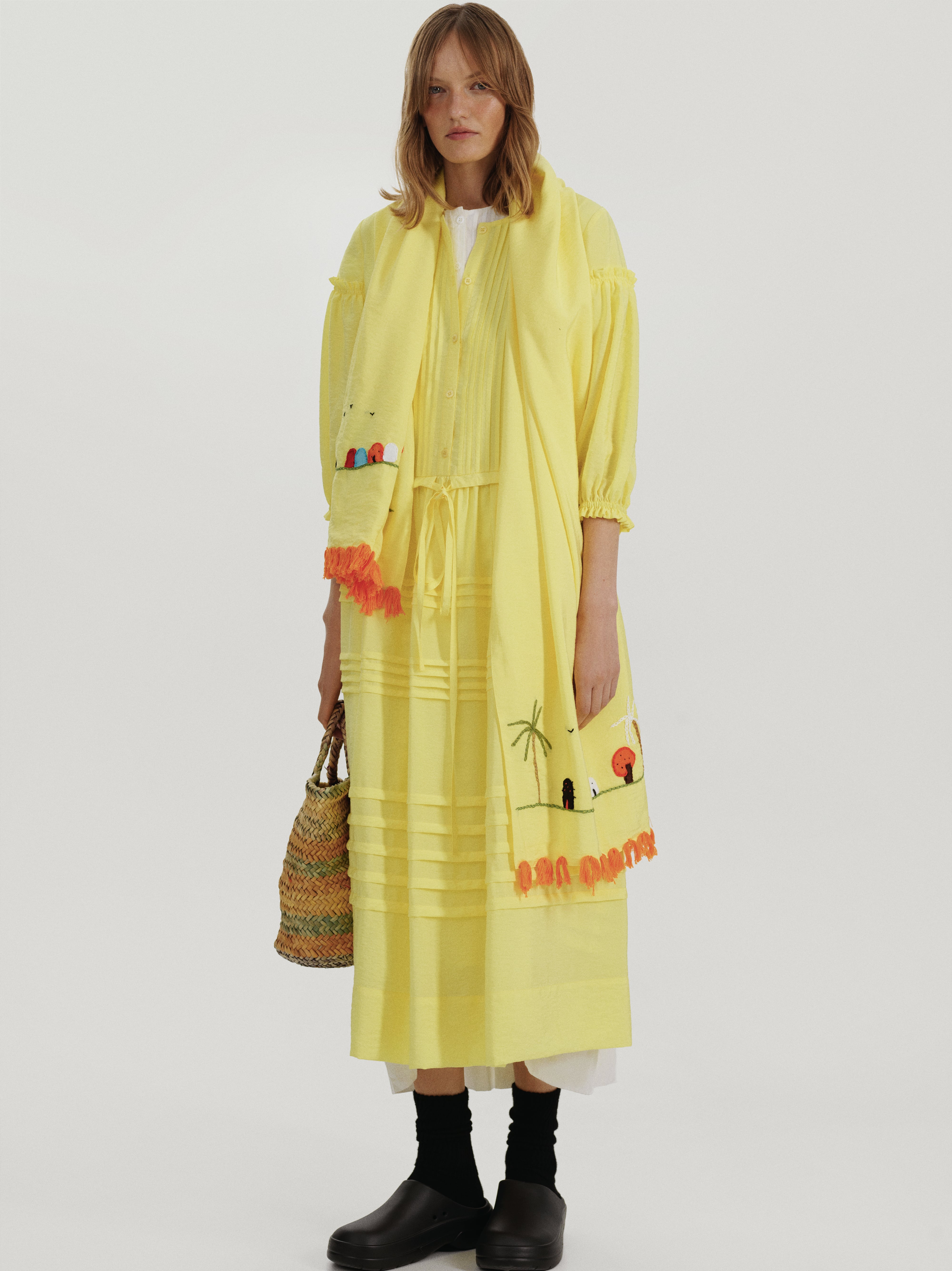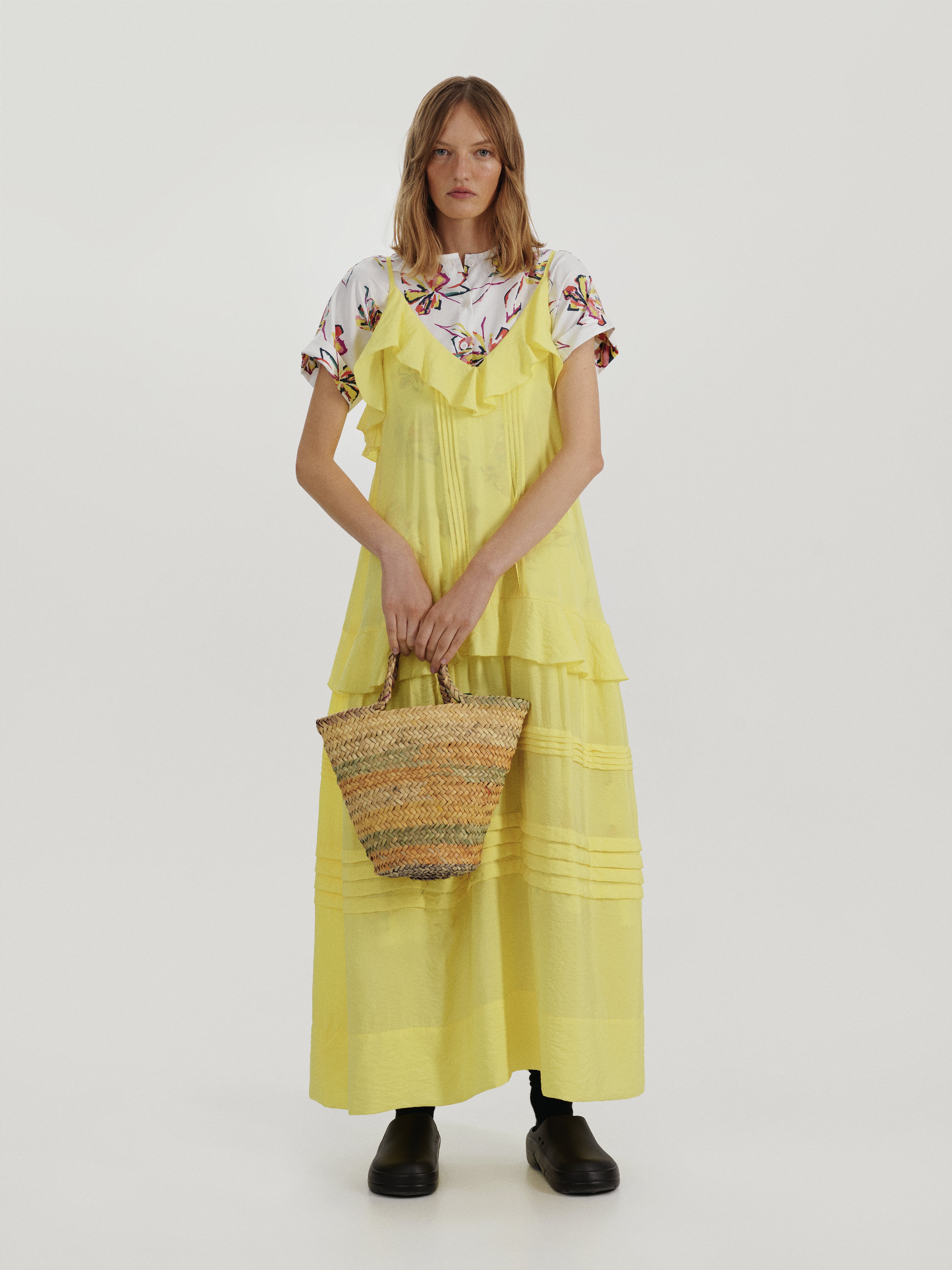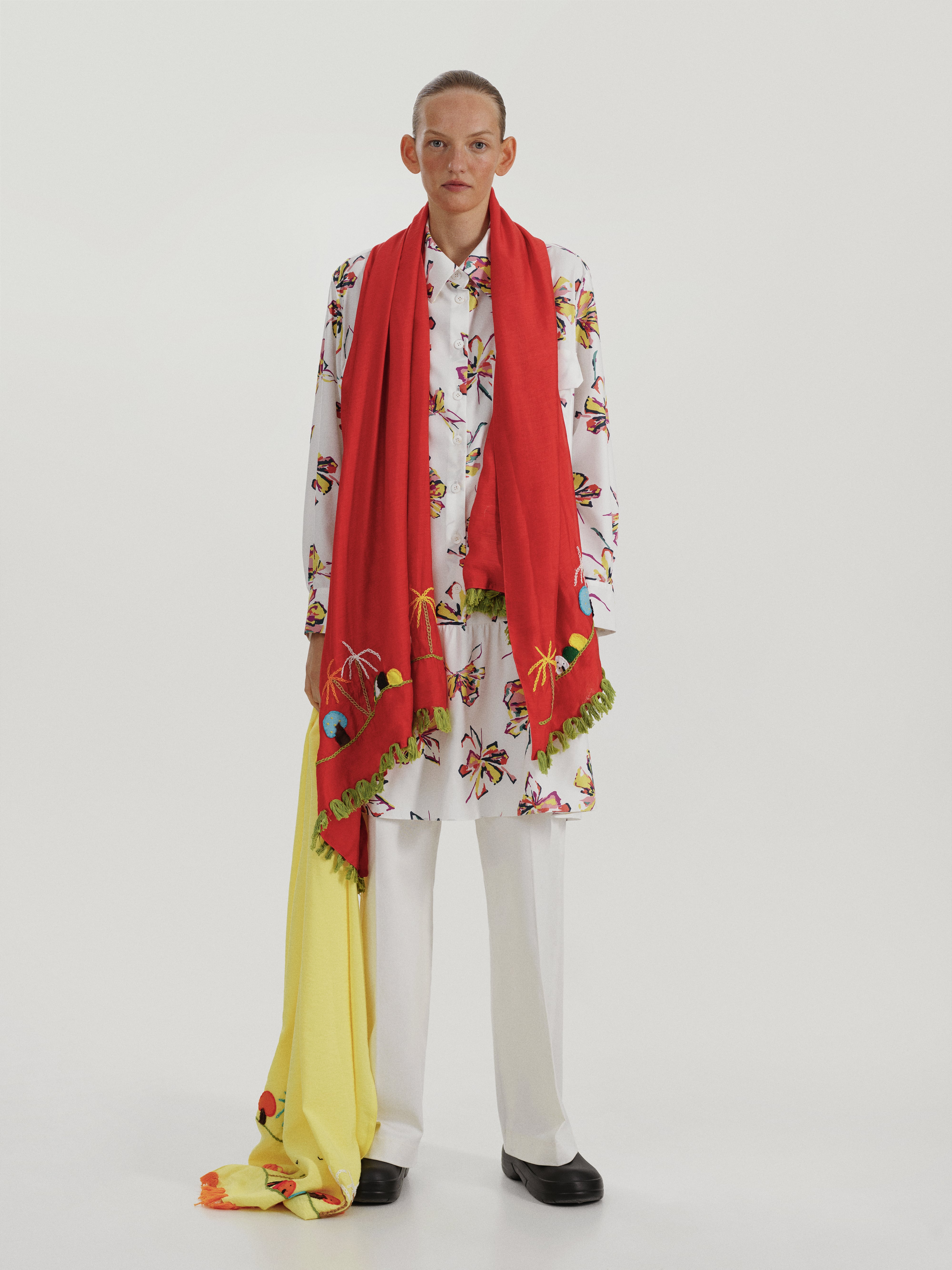 На смену принтам в новой линейке Poustovit приходят яркие и чистые цвета: желтый, красный, белый, синий и другие. Коллекция весна-лето — 2022 стала манифестом оптимистической и жизнеутверждающей позиции, присущей модному коду бренда.