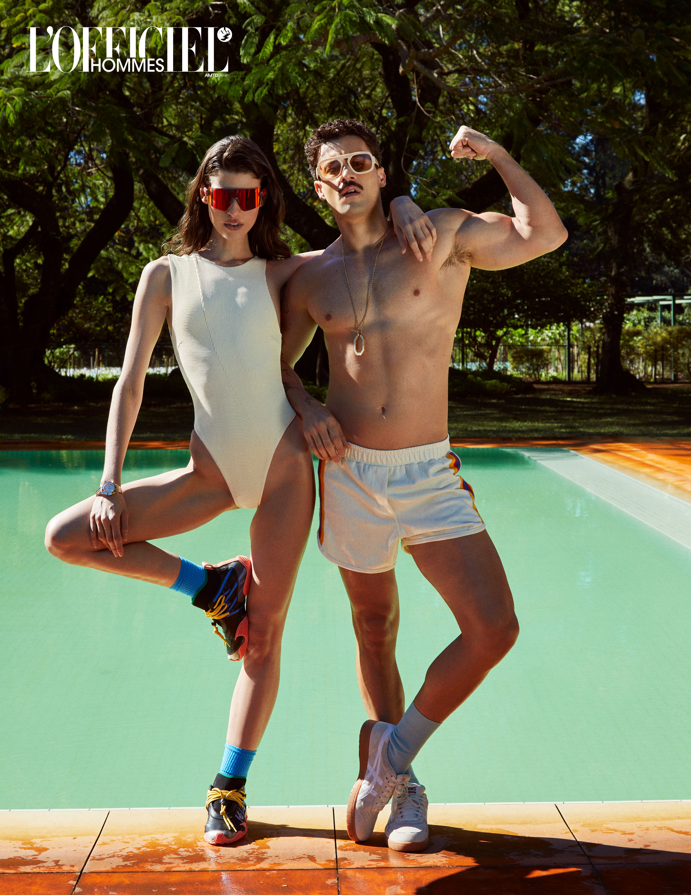 João: shorts RETROPY, tennis ASICS, socks ZARA, sunglasses AP.YAS, Necklace SWAROVSKI. Erika: swimsuit HAIGHT, tennis FILA, socks ZARA, sunglasses EVOKE, wristwatch SWAROVSKI