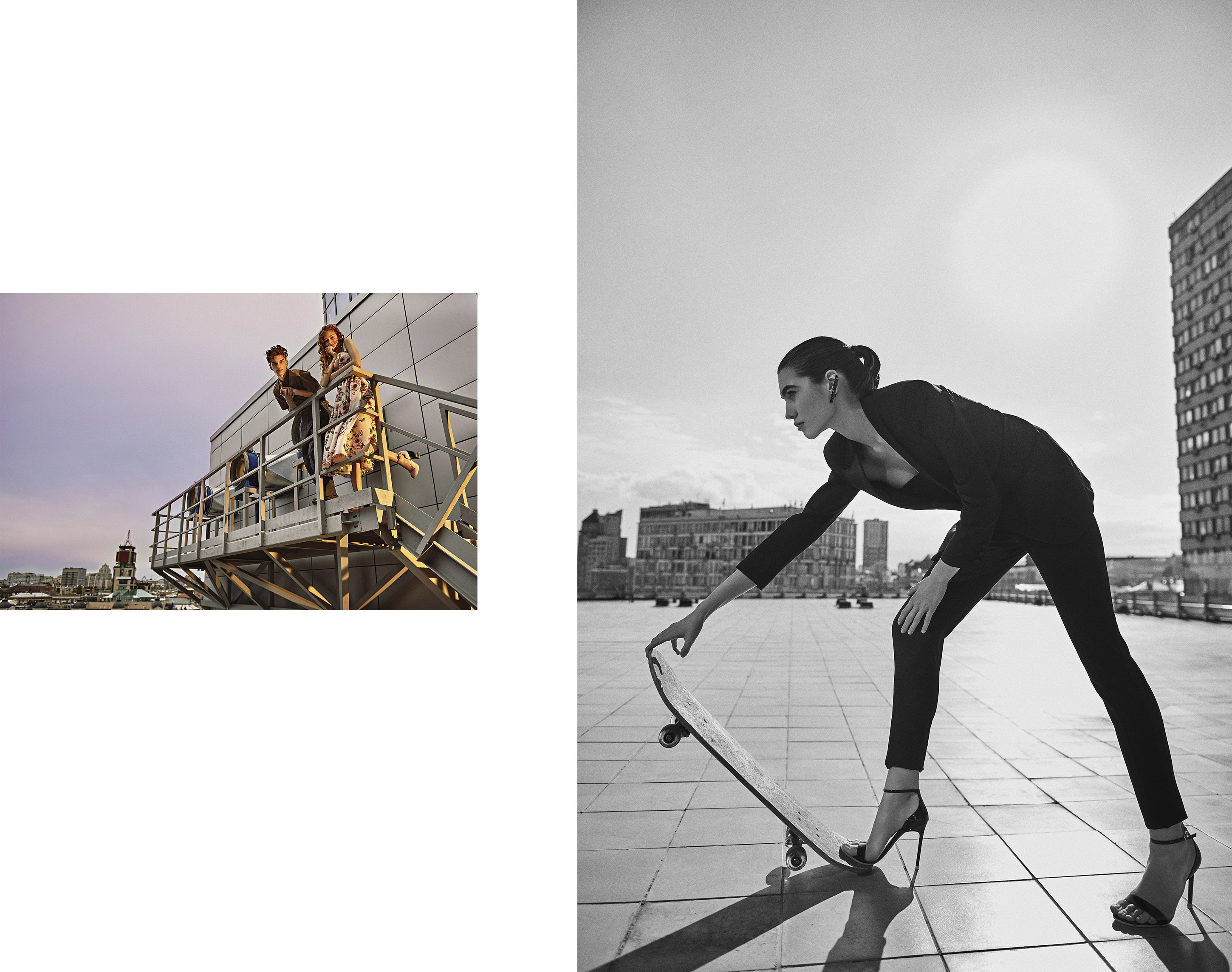 Задачей съемочной команды было не только мысленно вернуться в то время, но и предложить образы, которые придутся по духу современным выпускникам — смелые и нетривиальные. Героини нашей стори надевают платья с пышными юбками, отсылающие к эпохе new look, и летящие наряды, украшенные цветами. Женственные образы чередуются с вариациями стиля power dressing: выпускницы позируют в строгих смокингах Saint Laurent, дополненных "уличными" толстовками с капюшоном, и кружевных брюках с лентами.