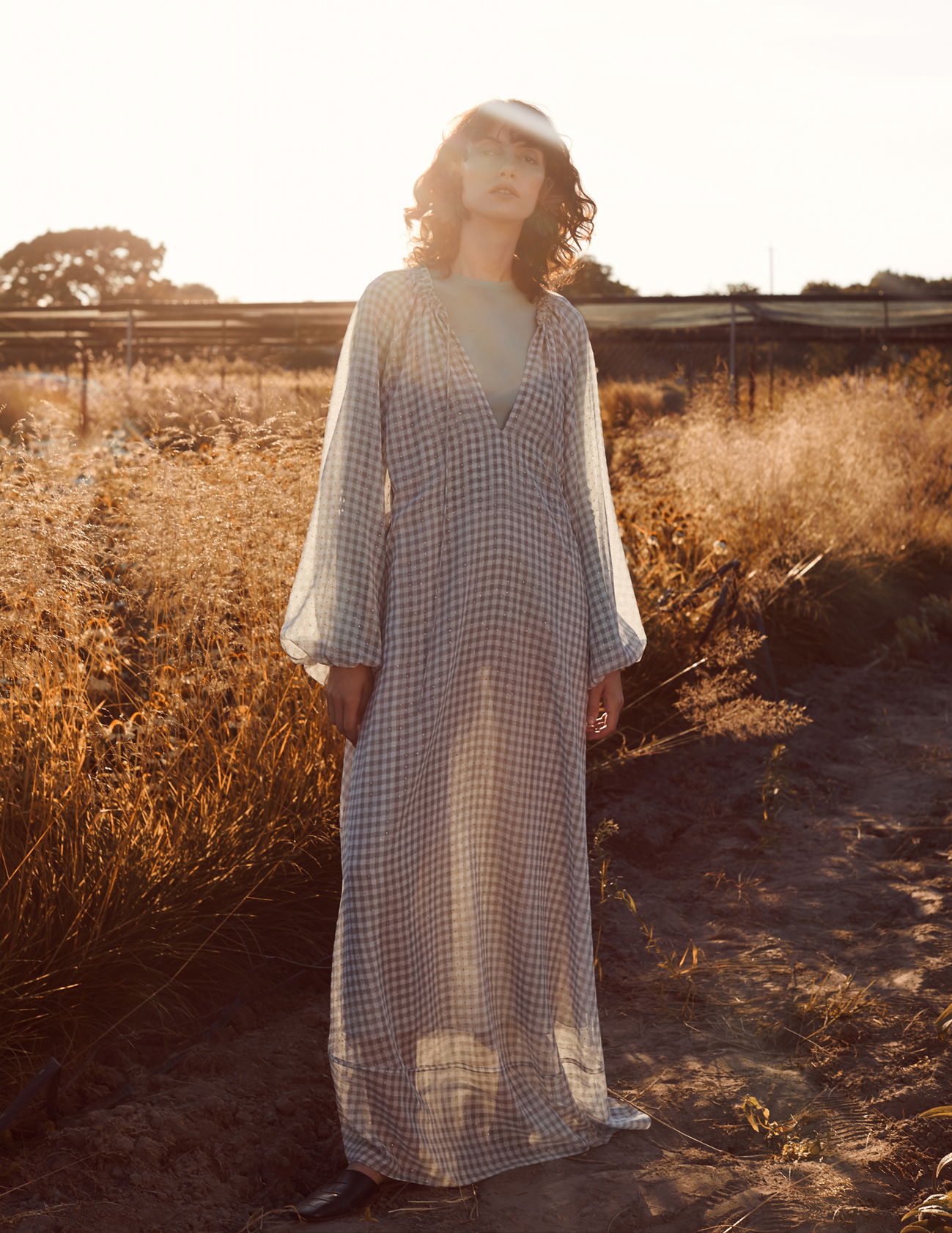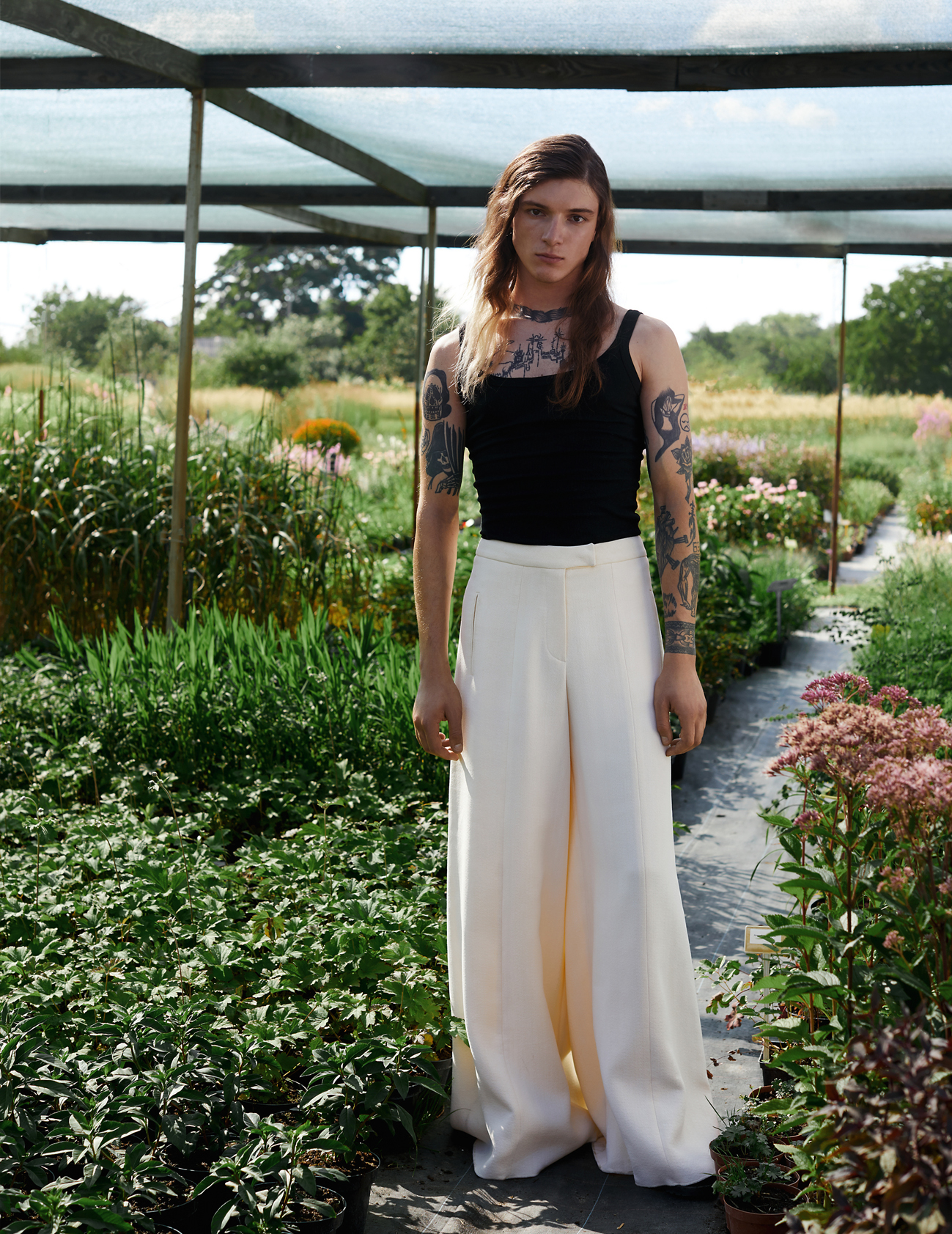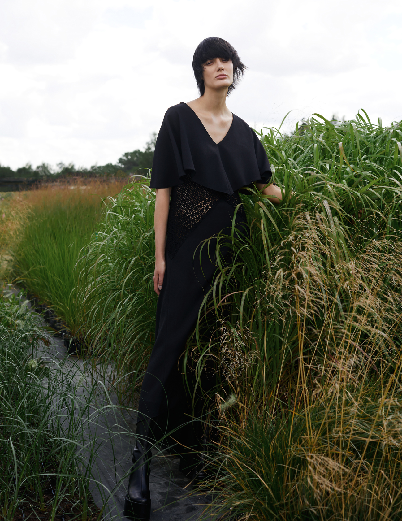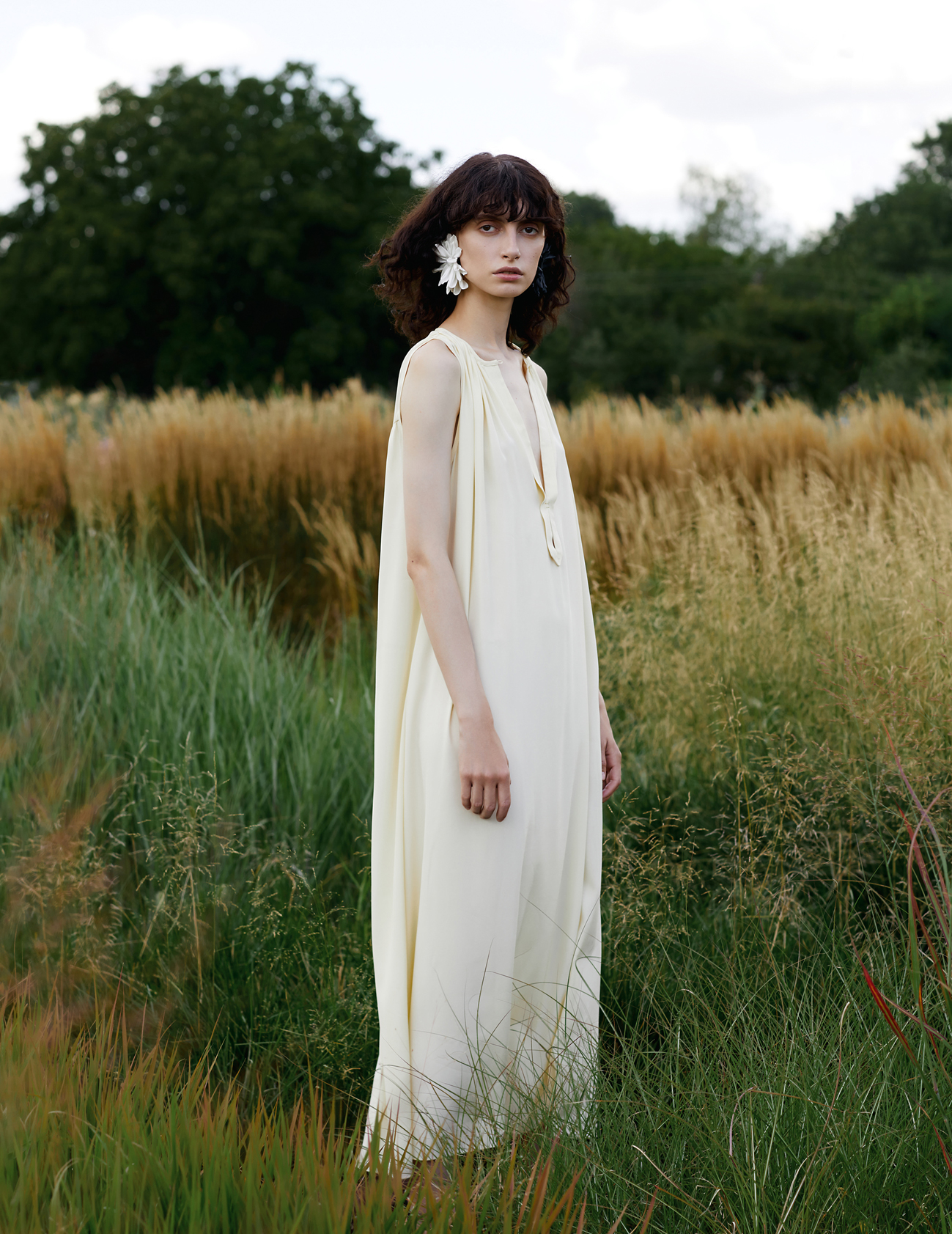 В коллекции есть чопорные юбки миди, которые тут же соседствуют с чувственными вязаными топами и деликатными бра на тонких бретелях, носить которые можно в парах с брюками клеш и "сигаретами". Общую монолитность весенней коллекции дизайнер тонко нарушает накладными воротниками из жаккарда и кружева и серег из шелка в форме цветов. Соблазнительный лейтмотив поддерживают связанные крючком платья-кольчуги, полупрозрачные сарафаны в россыпях кристаллов и сетчатые платья-чехлы. Живописная артизанальность коллекции граничит с минималистичным шиком, что делает вещи уместными в самых разных ситуациях.