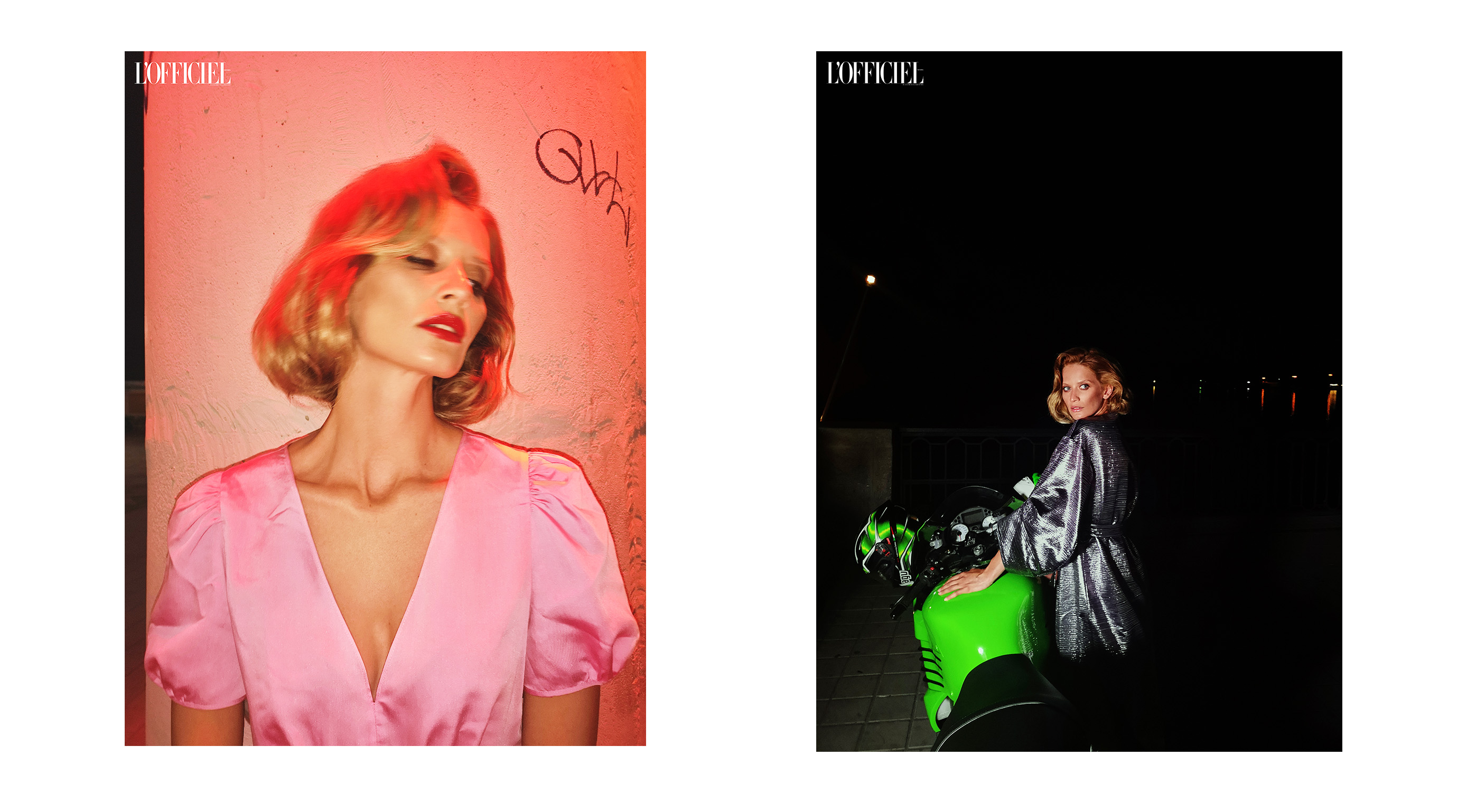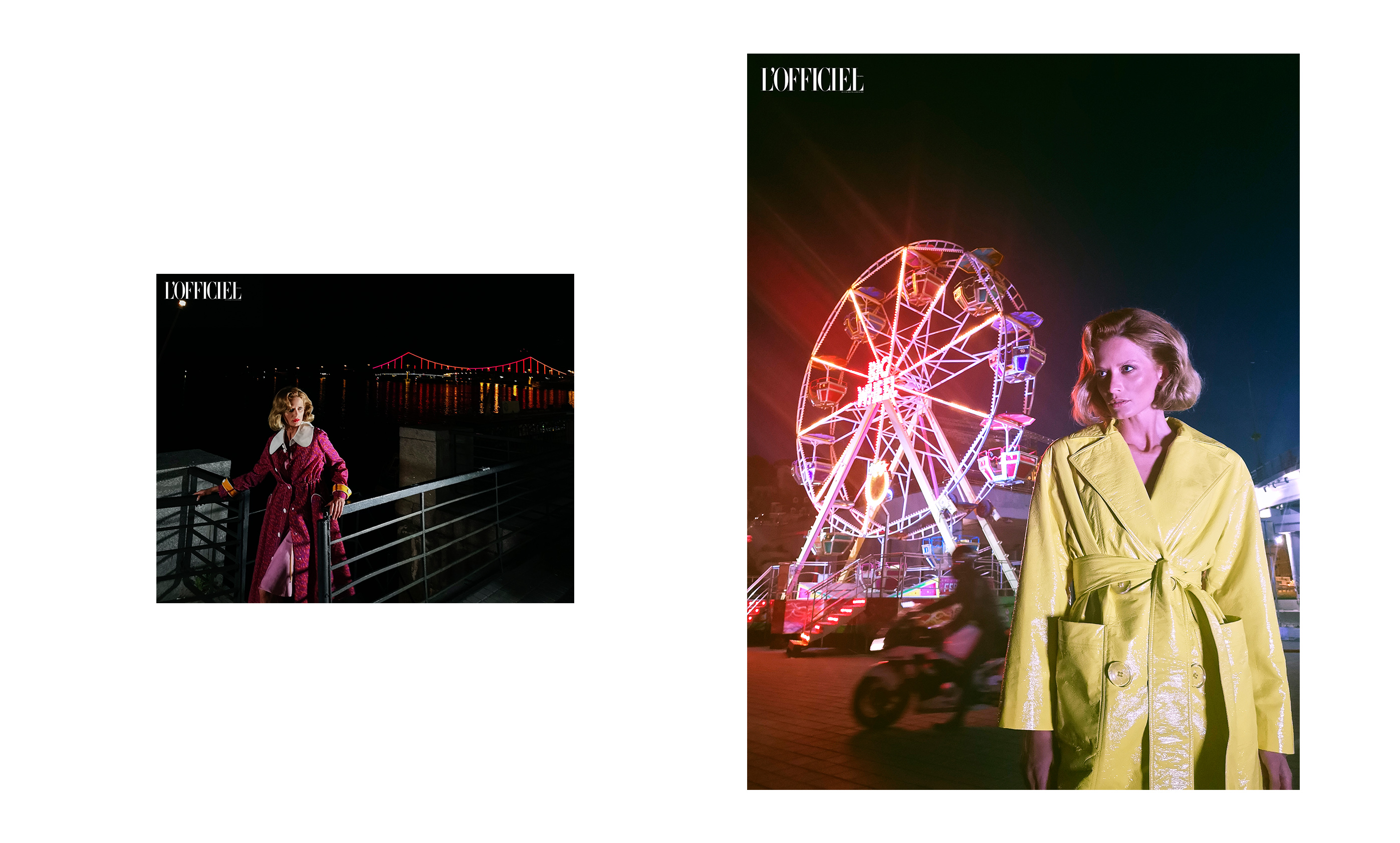 Первые недели лета позади: открывающие сезон дискотеки уже отгремели, а кинотеатры под открытым небом провели свои первые показы. Героиню нашей новой съемки не интересуют ни шумные вечеринки, ни романтичные вечера в парке у экрана. Она ищет приключения в ночном городе: вот она гуляет у "Чертова колеса", сверкающего всеми оттенками неоновых огней, дальше она не прочь прокатиться по пустынным улицам на спортивном мотоцикле, а затем остановиться у манящей витрины бутика, мечтая то ли о новых туфлях, то ли о новой жизни. Никто и не удивится, если под утро она решит сбежать из города — как диктует французское кино — на корабле.
