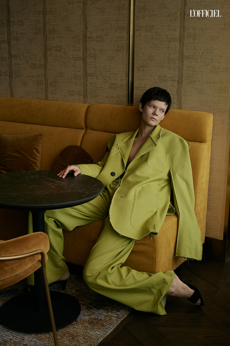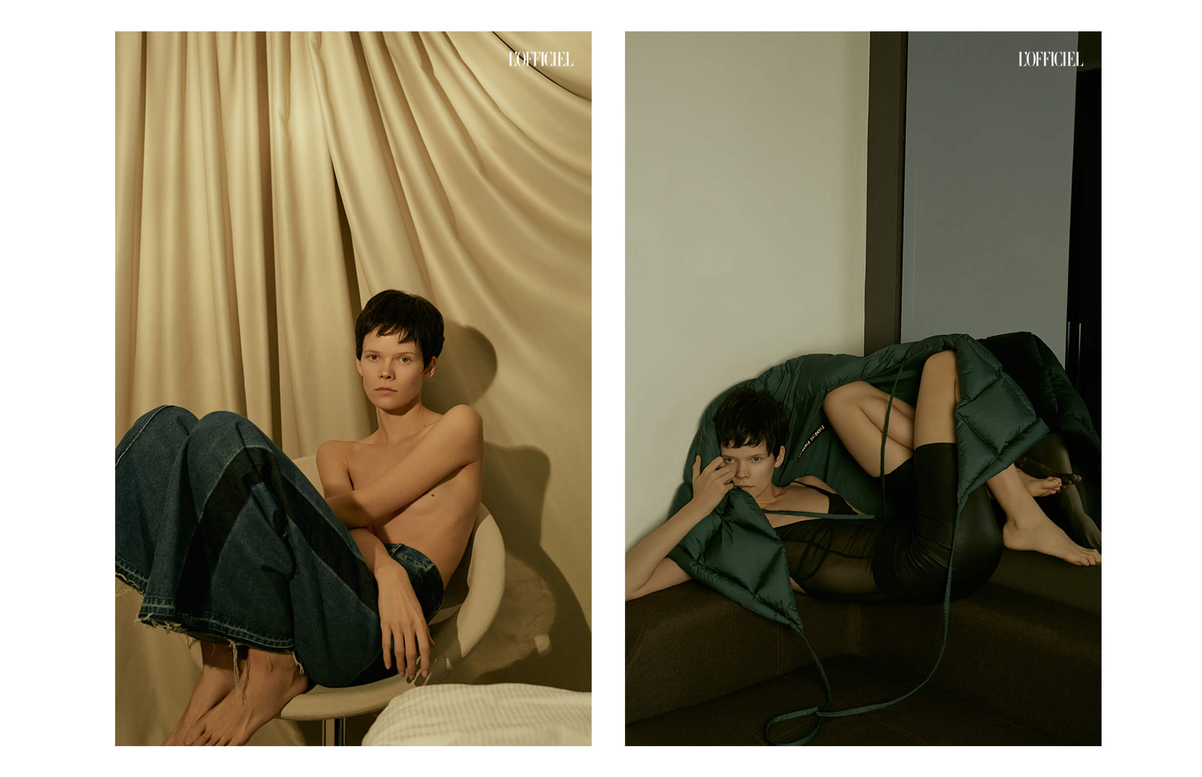 В съемке L'Officiel модель Ирина Кравченко как будто вовсе не позирует, а обращает взгляд к объективу, выходя из задумчивого и умиротворённого состояния. Уютный брючный костюм оттенка лайма, трикотажные джемперы и платья и объёмный пуховик, который кажется тёплым одеялом, становятся символами внутреннего спокойствия и размеренного ожидания весны.