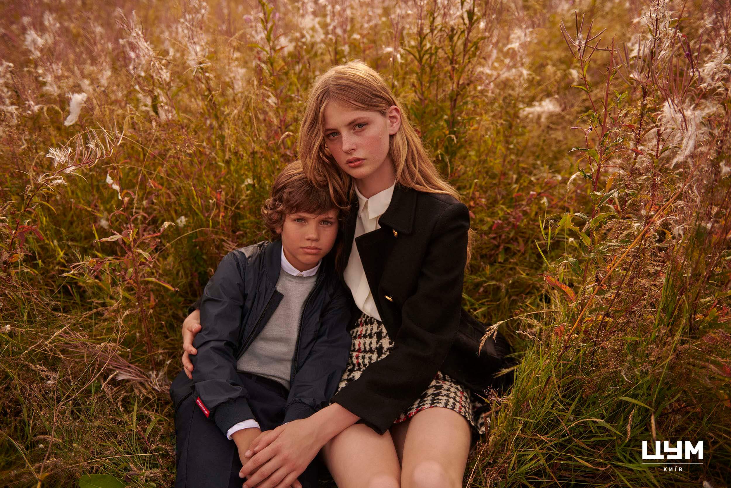 Слева: куртка Freedomday, свитер и брюки Armani JR, рубашка Armani JR. Справа: жакет Red Valentino, рубашка DKNY, юбка Red Valentino
