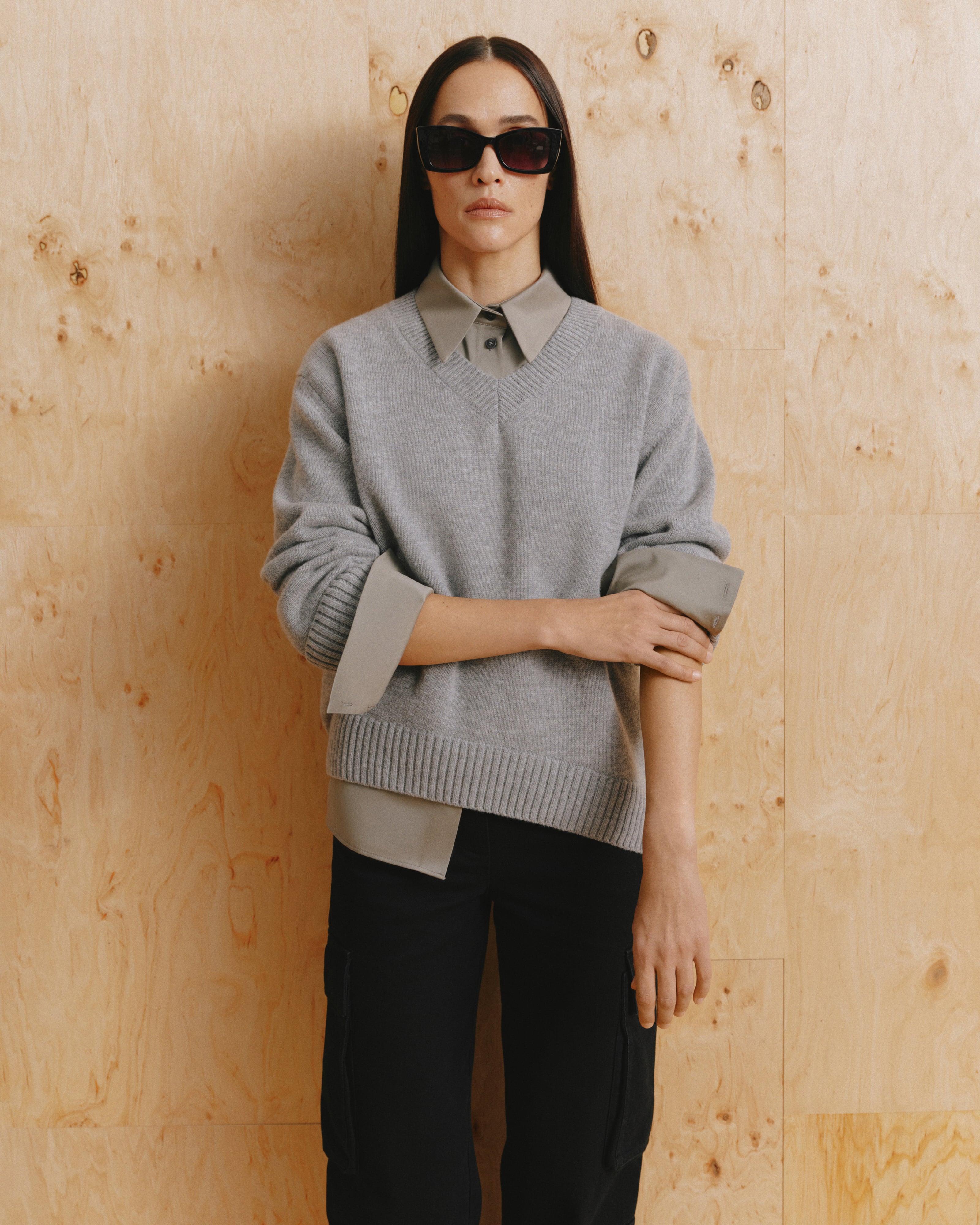В кампейні також представлені светри, створені в колаборації з трикотажним брендом Love by the moon. Універсальні моделі з високою горловиною та V-подібним вирізом чудово доповнять гардероб на холодну пору року.