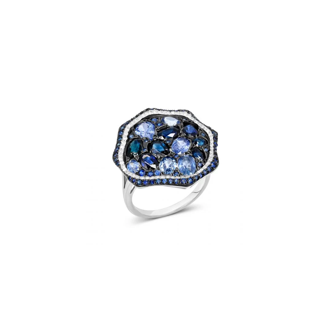 Піджак Dries Van Noten, Sohorooms. Брюки Dries Van Noten, Sohorooms. Каблучка з діамантами та сапфірами в білому золоті, Ювелірний Дім ZARINA. Сережки з діамантами та сапфірами у білому золоті, Ювелірний Дім ZARINA.