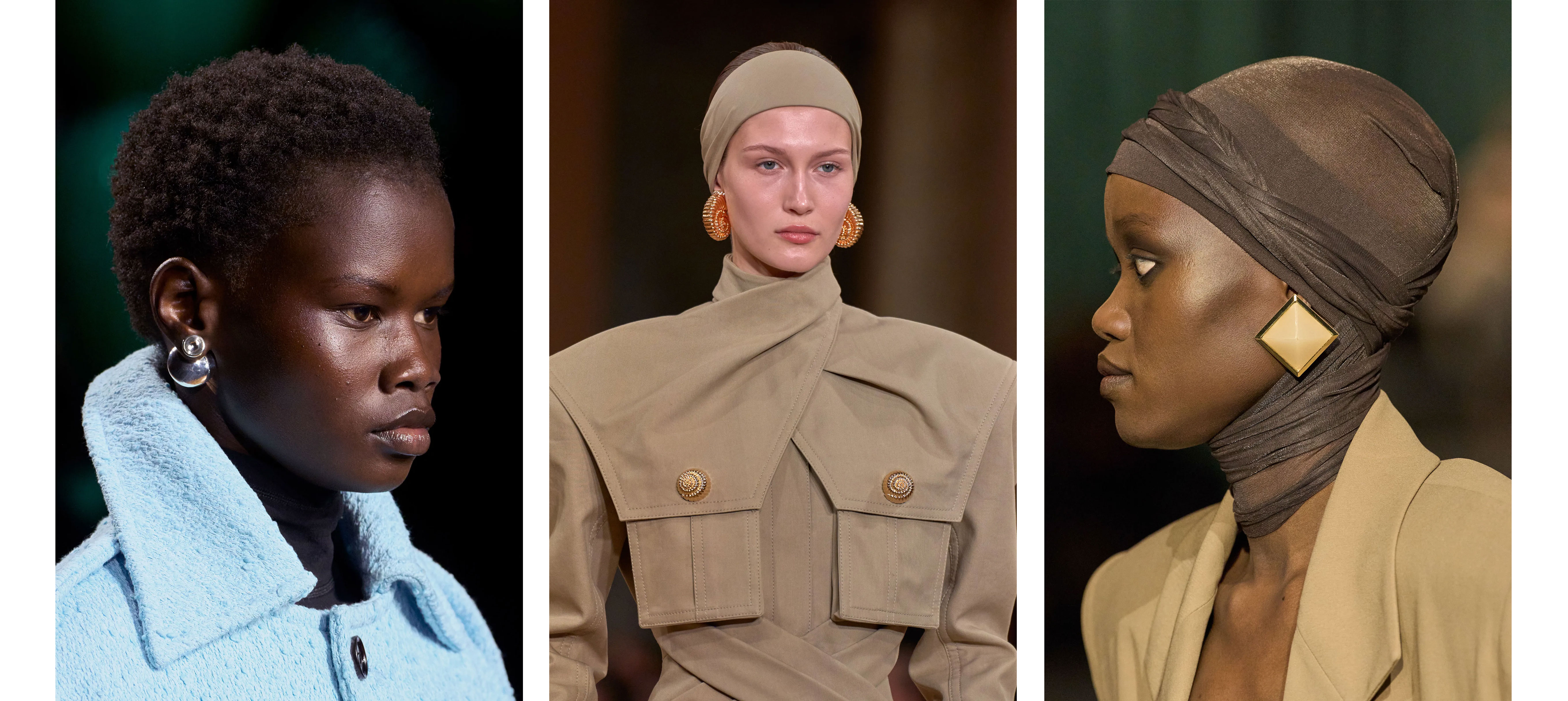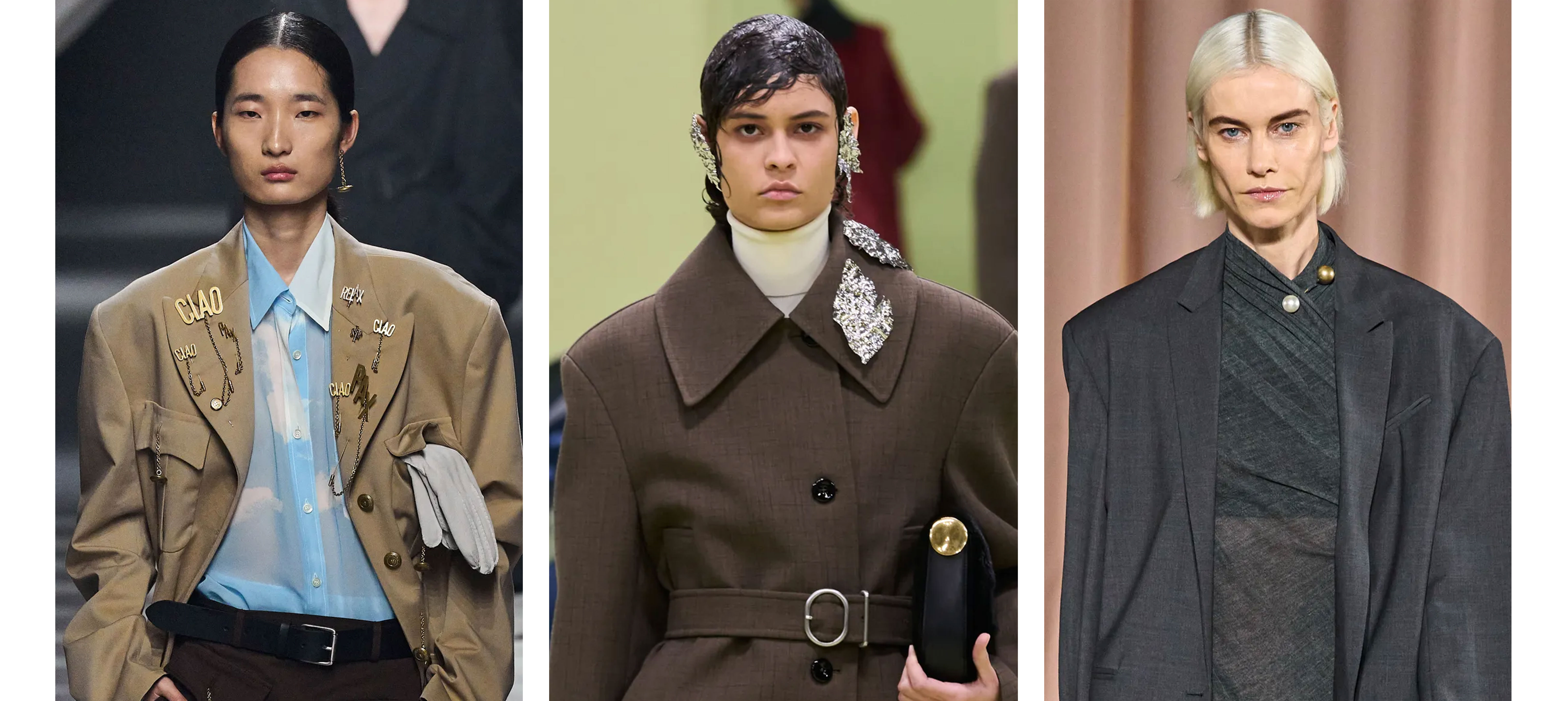 Зліва направо: Bottega Veneta осінь-зима 2024/2025, Balmain осінь-зима 2024/2025, Saint Laurent осінь-зима 2024/2025