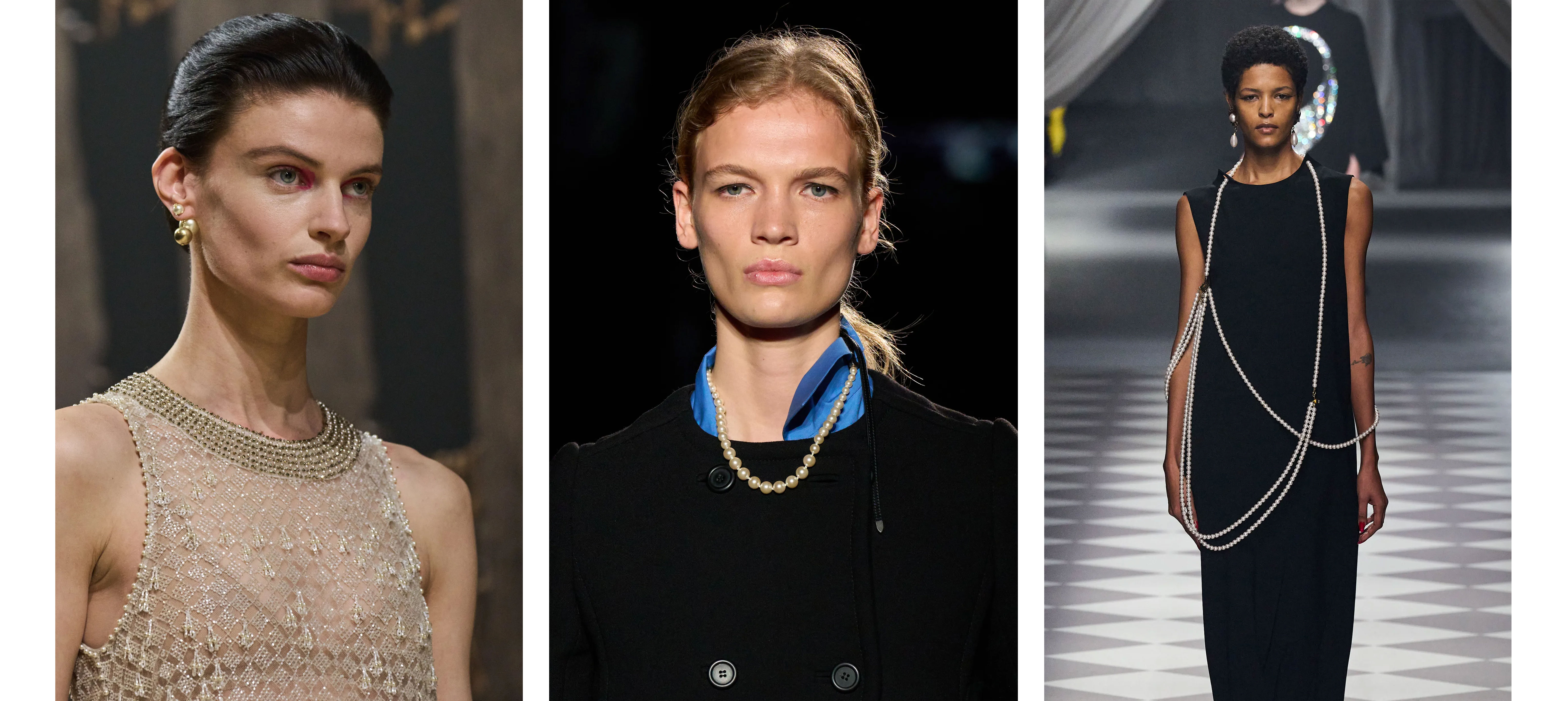 «Жінці потрібні мотузки та мотузки з перлів», — говорила Габрієль «Коко» Шанель. Цього сезону оздоби з перламутровими зернами — позачасові аксесуари — покликані додати витонченості, а також грайливості в образи у вуличному стилі. Miu Miu представили перлове намисто, що одягнуте поверх пальта. Заразом Dior роблять ставку на сережки з перлами та золотом.