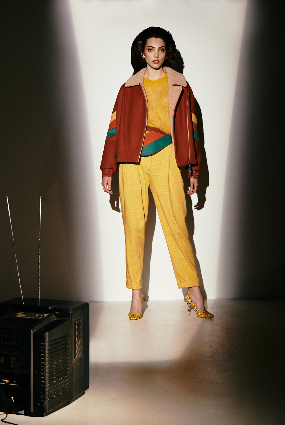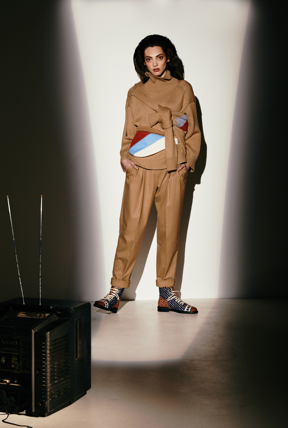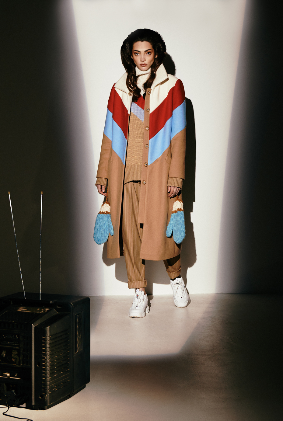 Чтобы подчеркнуть женственность и красоту линий тела, Катя обращается к бюстье, высоким талиям и тугим поясам. Раскованную же сторону коллекции уравновешивают брючные костюмы – слегка маскулинные, как любили в 90-х, дополненные уютными свитерами с высоким горлом, пальто и длинные дубленки. Ностальгию в образах вызывают аксессуары – варежки на веревочках, поясные сумки и, конечно же, корсеты.