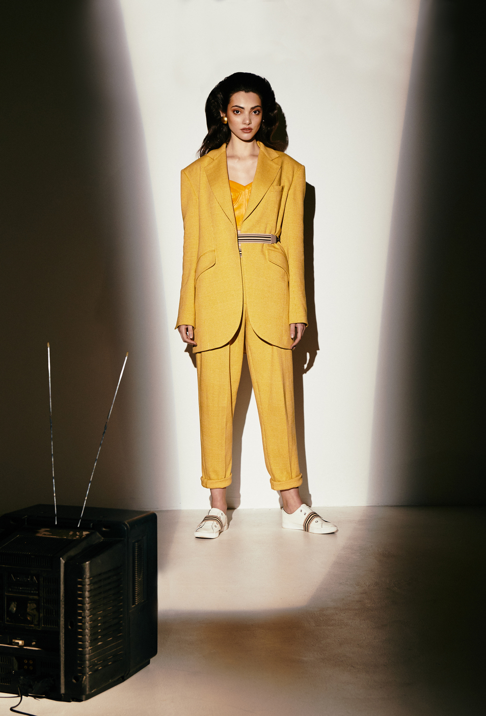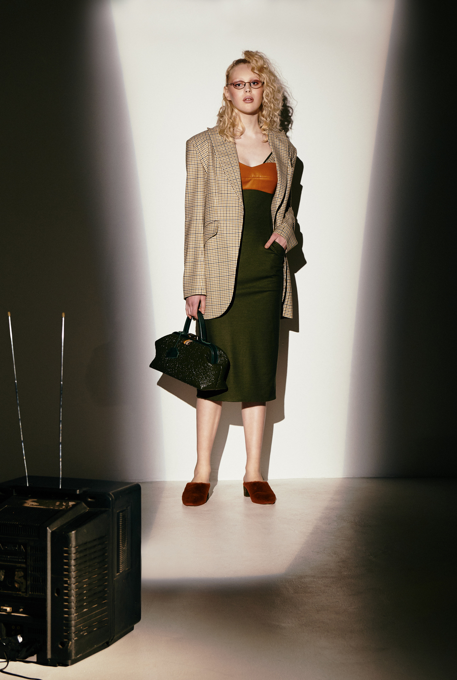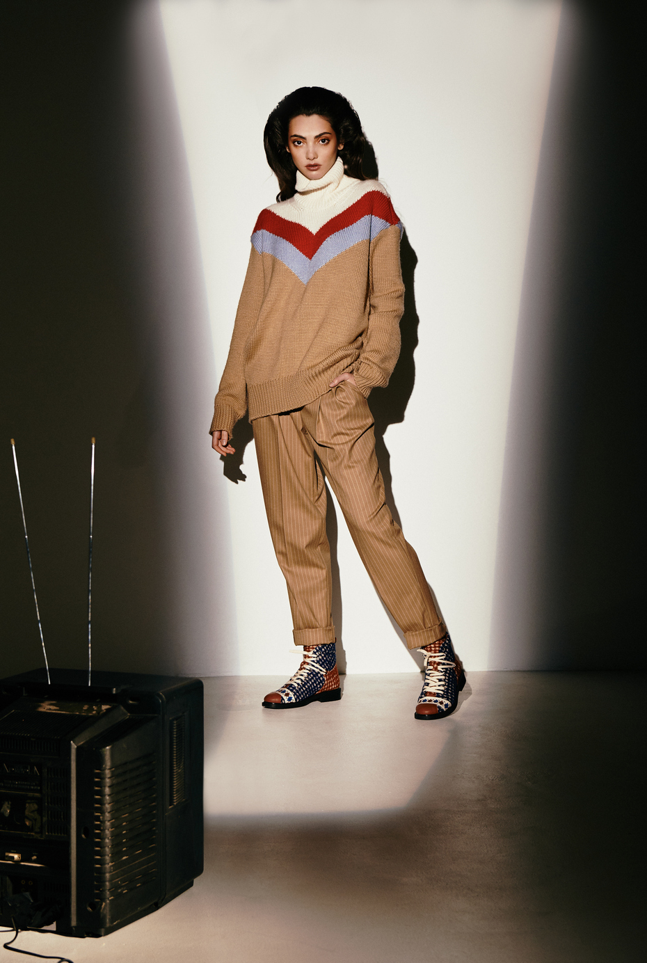 Чтобы подчеркнуть женственность и красоту линий тела, Катя обращается к бюстье, высоким талиям и тугим поясам. Раскованную же сторону коллекции уравновешивают брючные костюмы – слегка маскулинные, как любили в 90-х, дополненные уютными свитерами с высоким горлом, пальто и длинные дубленки. Ностальгию в образах вызывают аксессуары – варежки на веревочках, поясные сумки и, конечно же, корсеты.