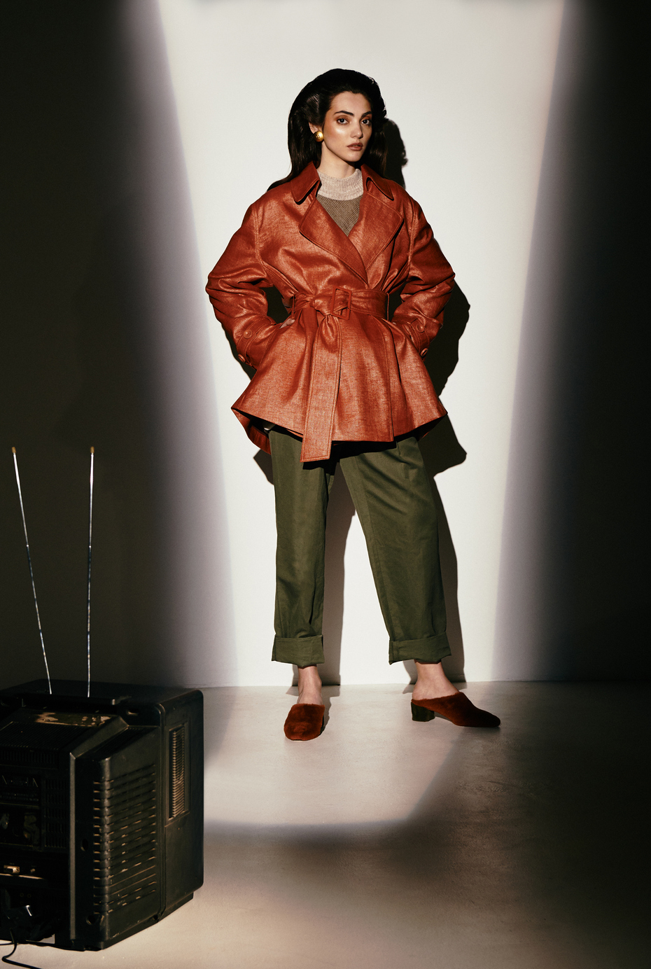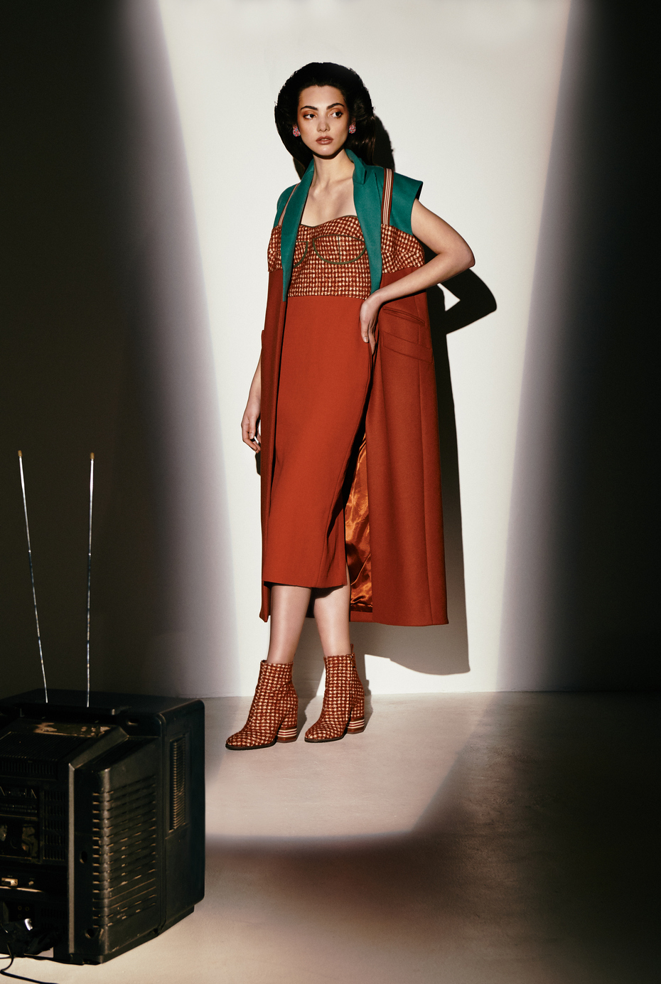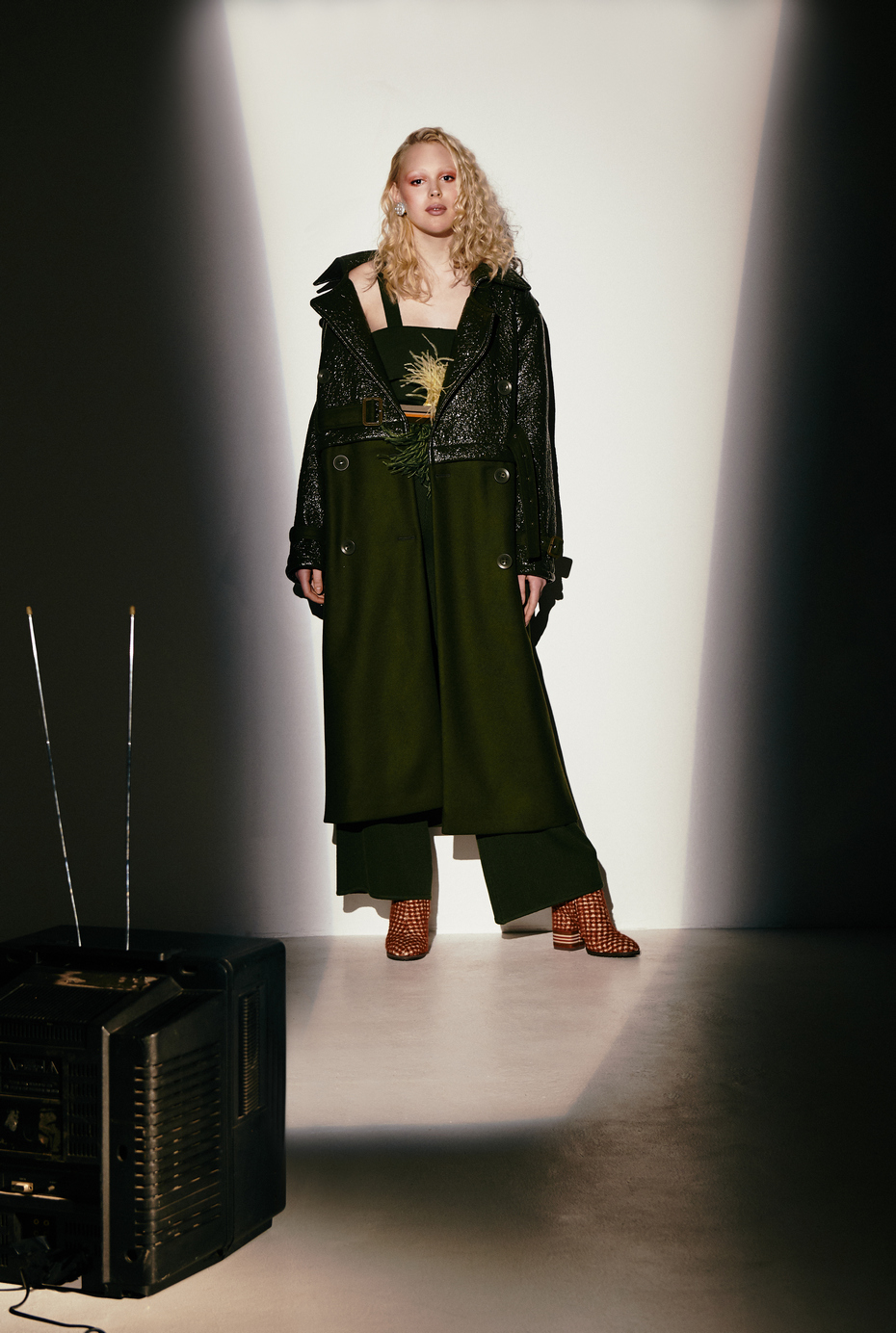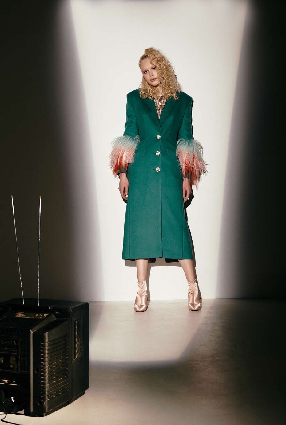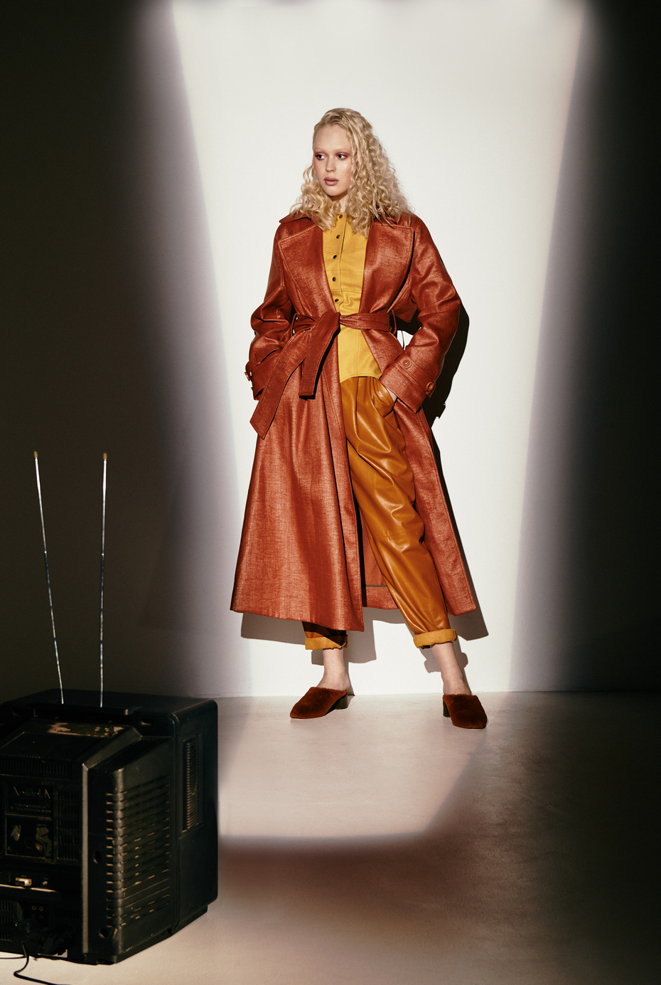 Мини-юбки, кожаные корсеты, перья, яркие цвета и начесанные локоны – все это отображение сексуальной революции, которая буквально провоцировала общество в разгар 90-х на территории стран СНГ. В коллекции дизайнер использует перья, лакированную шерсть, а также деним и вязку. Монохромные цвета, которые уже стали традиционными для коллекций The Coat by Katya Silchenko, отходят на второй план: основной акцент – на голубой, оранжевый, желтый, зеленый и бежевый.