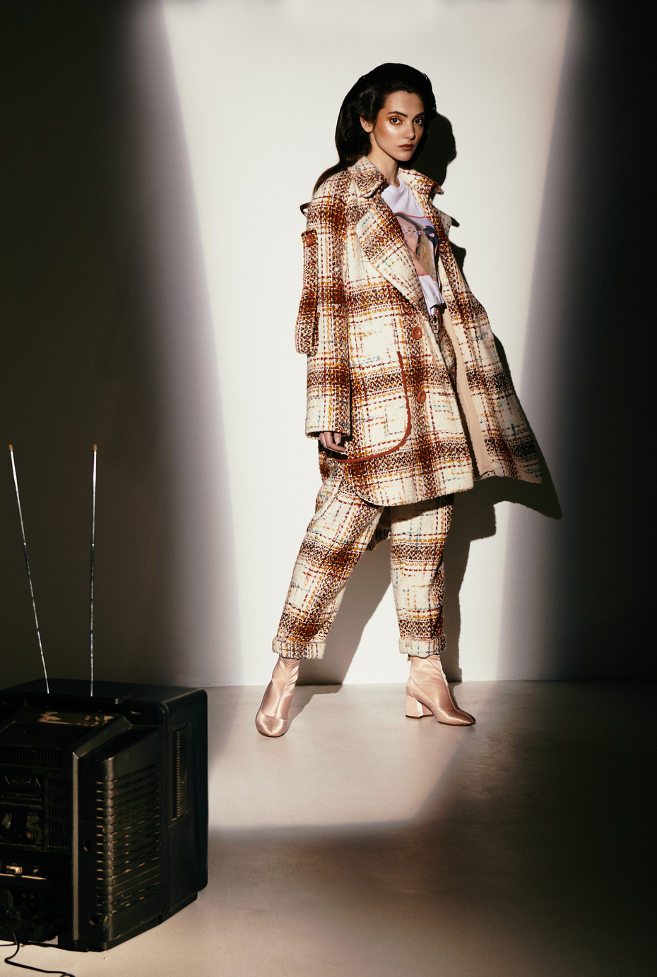 Дизайнер Катя Сильченко, работая над новой осенне-зимней коллекцией, вспоминала о 90-х, их контрастах и свободе. Прежде всего, Катя хотела избавиться от типичных образов той эпохи – серости и угрюмости, – и потому она делала акцент на женственность и легкую повсеместную молодость. Контраст реалий, в которых выросло целое поколение, и образы главных «икон» того времени послужили дизайнеру вдохновением.