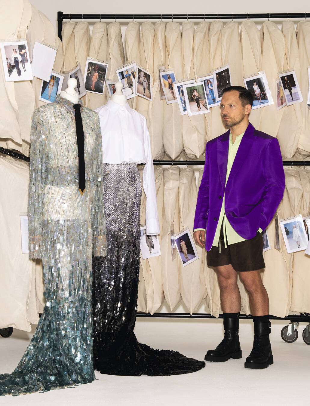 Александр: Я думаю, що цей сезон насправді був чимось на кшталт реакції на все це. Дійсно можна відчути, що на подіумі навмисно створювалась нудна атмосфера з великою кількістю чорних або коричневих костюмів. У Нью-Йорку в цьому сезоні було багато галасу навколо цих величезних червоних чобіт MSCHF! Я дивився на них і думав: «Це буквально смерть моди». Це як той віртуальний одяг, який ви додаєте до своїх фотографій в Інтернеті; це все, що я ненавиджу. Там немає жодної взаємодії з фізичним одягом, що для когось, на кшталт мене, хто витрачає всі свої гроші на одяг, просто неправильно. Всі знають про мою одержимість Гальяно, але ви берете ці вечірні сукні в едвардіанському стилі, і їх можна просто вдягнути, як футболку. Це стосується чистоти їхнього дизайну, який, як на мене, вражає уяву.
