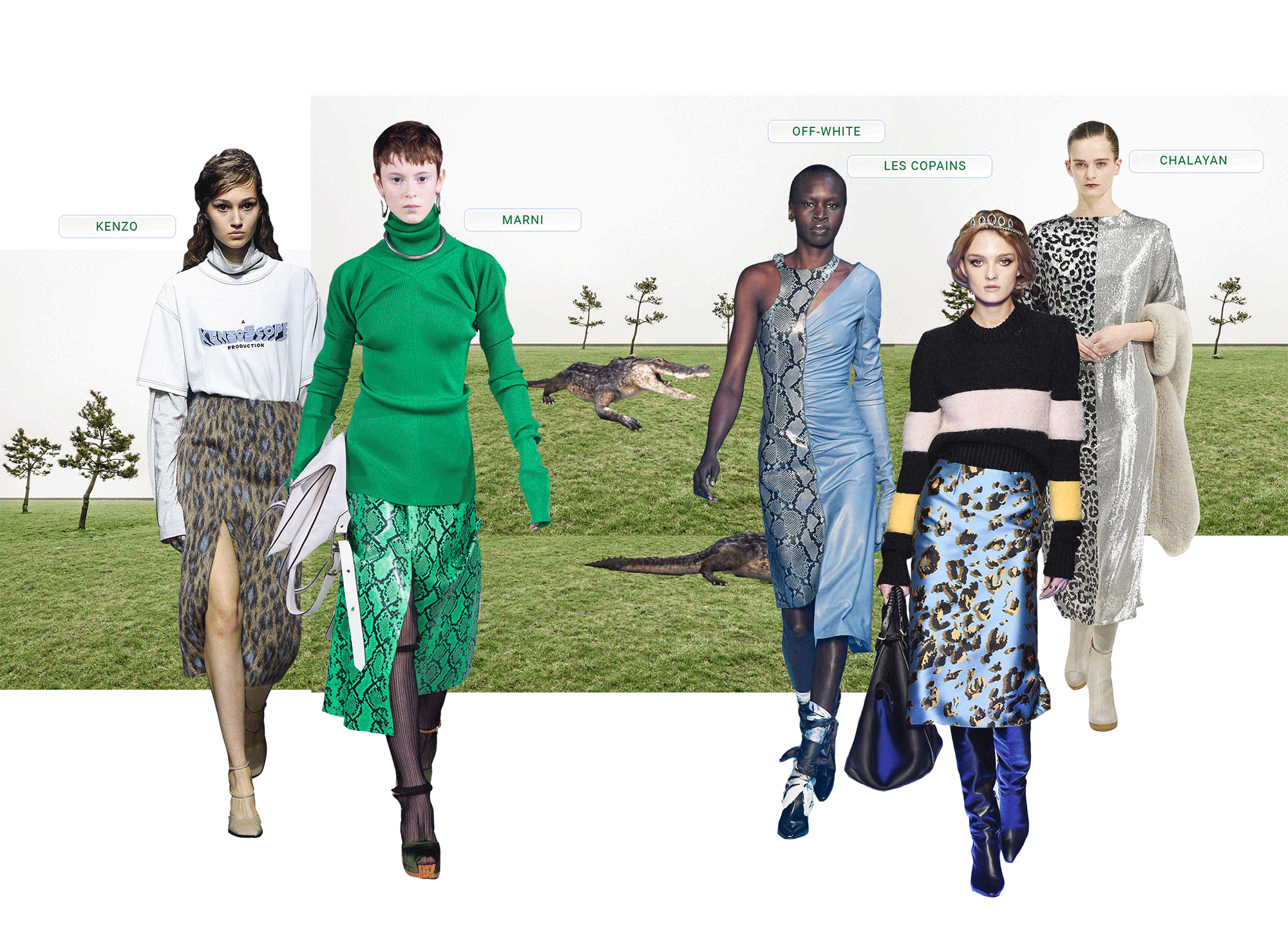Дизайнеры внимательно подходят к анималистическому принту и используют его в разных вариациях, задумываясь обо всех потенциальных клиентах. Скажем, если вы уже готовы стать леопардом, но лишь процентов на 15 – пожалуйста, вот вам сумочка или корсет. С уровнем вашей решимости увеличивается и количество «звериного» в образе: начиная от MSGM и их «змеиной» рубашки, деликатно прикрытой розовым жакетом, до Tom Ford и Gareth Pugh, которые мечтают сделать леопардовым весь ваш мир. Итак, насколько вы аллигатор, змея или даже зебра? Давайте решать!