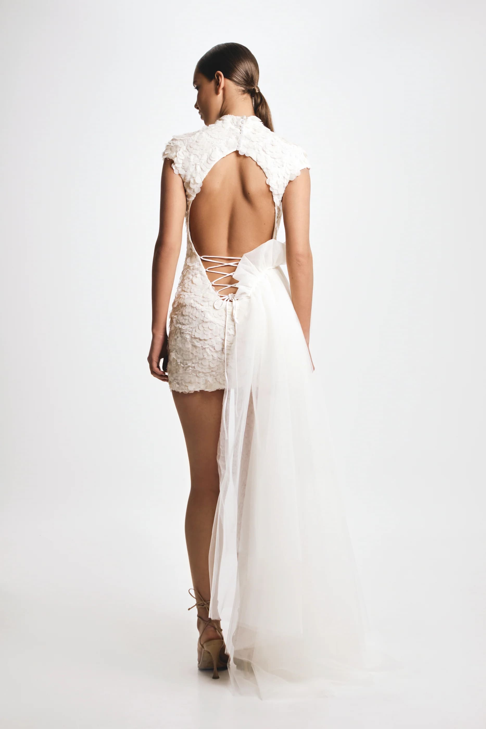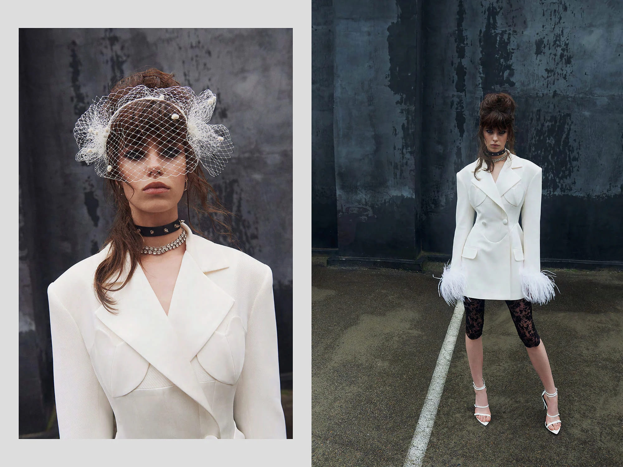 Героїня Сultnaked завжди обирає себе — і дебютна весільна колекція бренду не зраджує цю константу. До лінійки Bride увійшли сукня довжини міні, яка приховує в собі зручний комбінезон, сукня культової моделі Killa в білому кольорі, а також топи-бандо, скорти та навіть джинси. Доповнює колекцію класичний весільний аксесуар — фата в відтінку Innocent White.