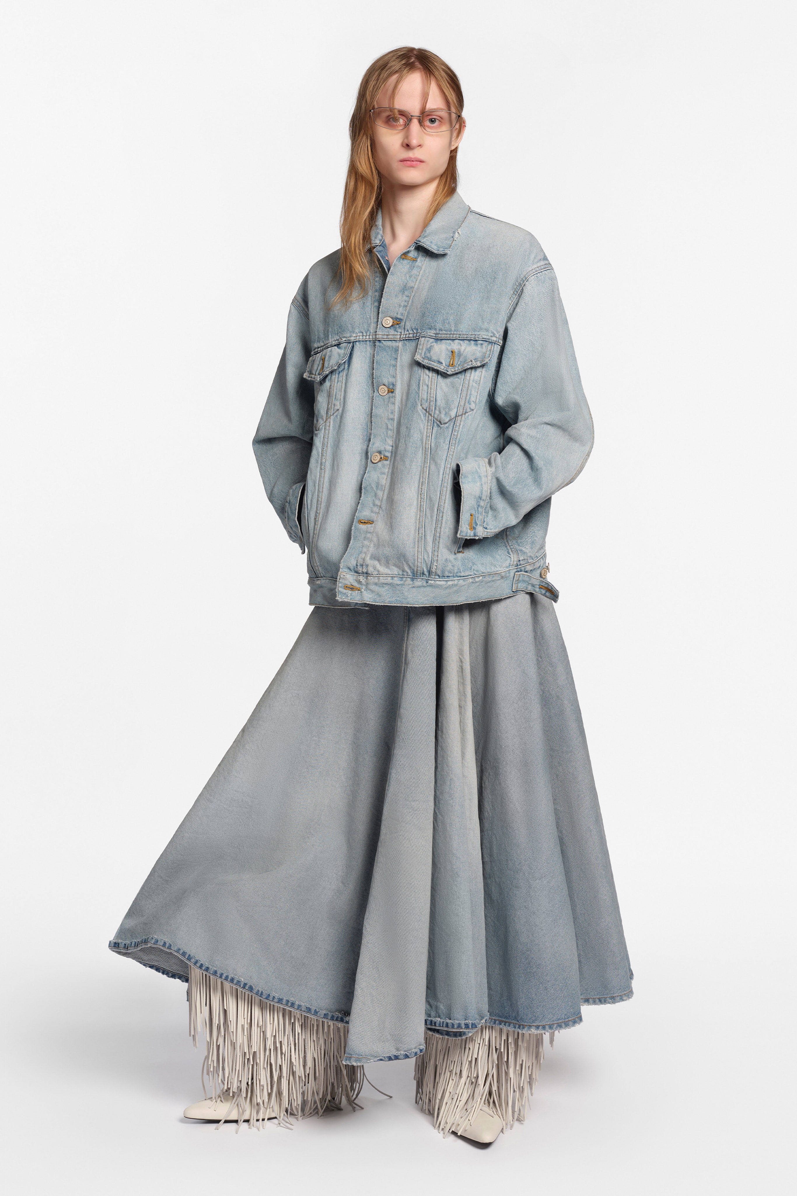 Серед образів нової колекції — структуровані костюми та верхній одяг з акцентом на лінії талії, сукні skinny та шкіряні спідниці з бахромою, а також денімові капрі з акцентним декоративним пір’ям, які контрастують з об’ємними спортивними костюмами з трикотажу. Апогеєм прощання Демни стала колаборація з Брітні Спірс, різноманітні портрети якої були зображені на футболках та інших елементах spring — 2026. Співачка створила для Balenciaga й спеціальний плейлист, який можна прослухати на офіційному сайті Дому.