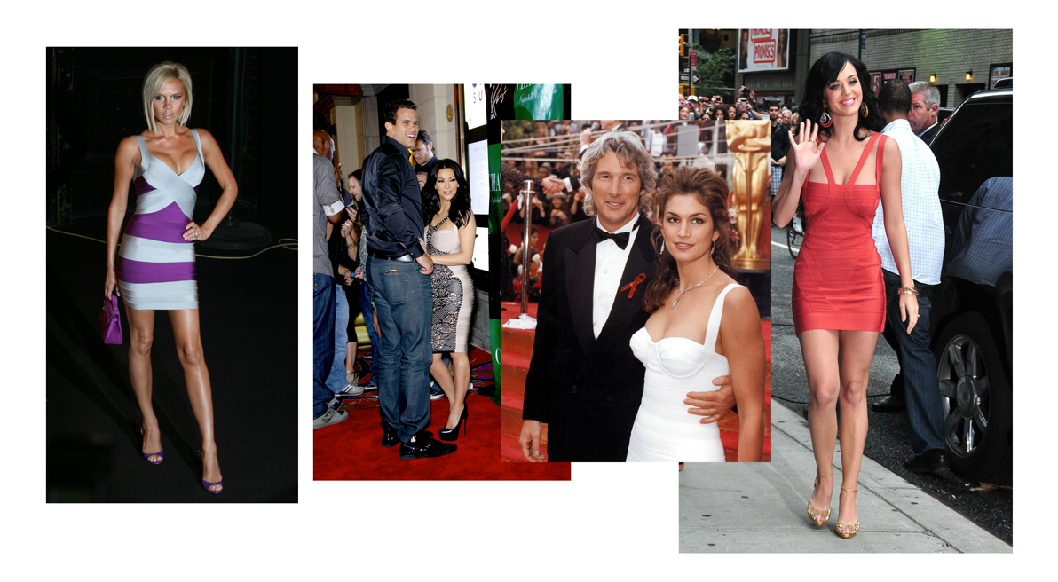 У бандажних сукнях Hervé Legér, особливо примітно під час нульових, з’являлися Ріанна, Вікторія Бекхем, Кім Кардаш’ян, Кейт Вінслет, Кеті Перрі, Крістіна Агілера, Періс Гілтон і Міранда Керр. «Історія сукні дуже проста. До того, як я почав створювати одяг, я був перукарем, потім капелюшником. Одного разу на фабриці я знайшов стрічки, які прямували на смітник. Вони наштовхнули мене на ідею взяти ці стрічки й покласти їх одна біля одної, як це робиться під час виготовлення капелюха», — говорив про створення своєї іконічної речі Ерве Леру.