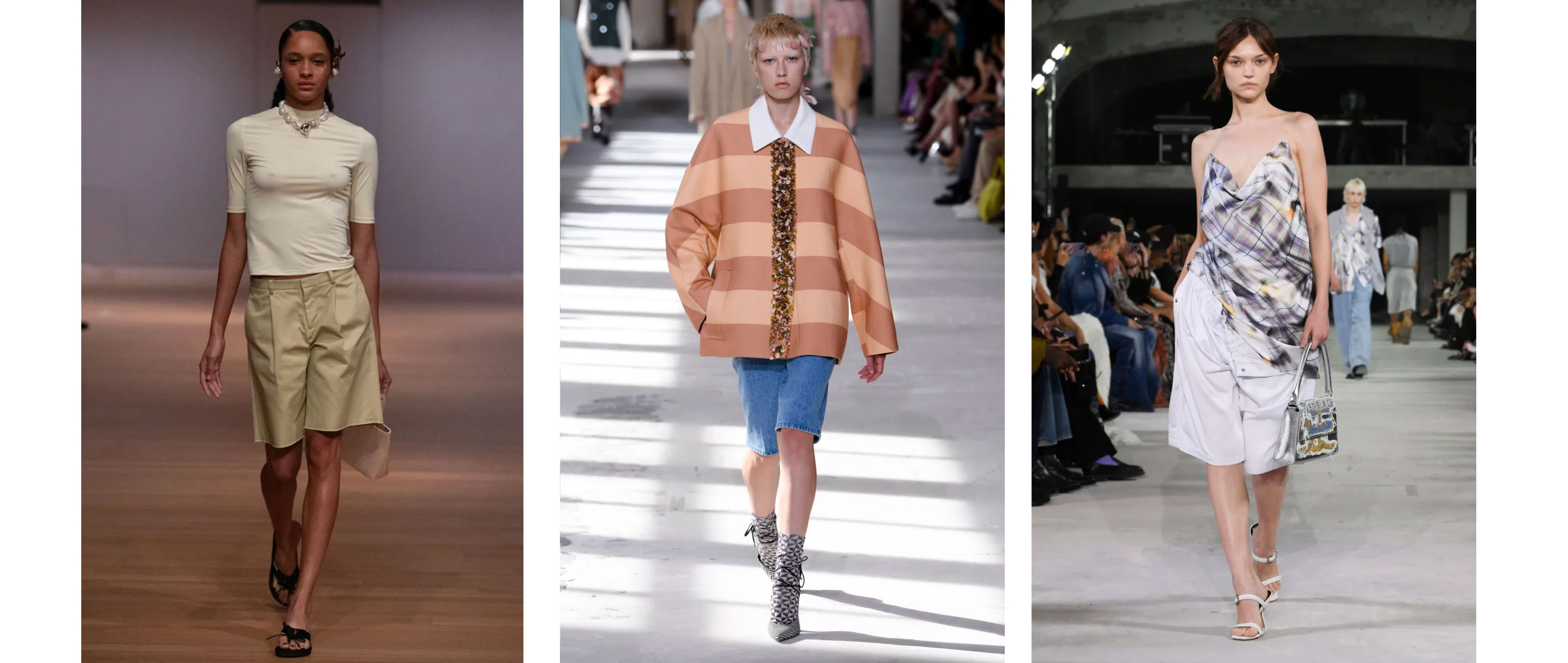А також у Dries Van Noten, де верх у стилі преппі з масивним, білим коміром і лелітками поєднали з денімовими бермудами та туфлями із зав’язками. Доєднується до прихильників спорт-шику і Y/Project. Власний бренд креативного директора Diesel Гленна Мартенса пропонує актуальну стилізацію, яку нескладно відтворити. Необхідні інгредієнти включають принтований топ на тонких бретелях, утилітарні бермуди, білі босоніжки з ремінцями й сріблясту сумку.