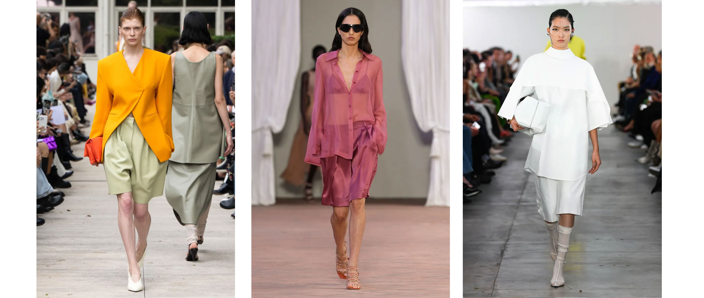 У Jil Sander ставка була зроблена на білий — позачасовий, чуттєвий і завжди вишуканий. Що ж до італійського бреду Calcaterra, у ньому до уваги модників запропонували сірувато-зелені бермуди. Коли ж ви не проти додати барв у свій вихід, натхненням стане стилізація цього фешн-гравця. Це приклад прийому колорблокінгу, коли гармонійно поєдналися жовтогарячий, кораловий, білий і вже згаданий сірувато-зелений.