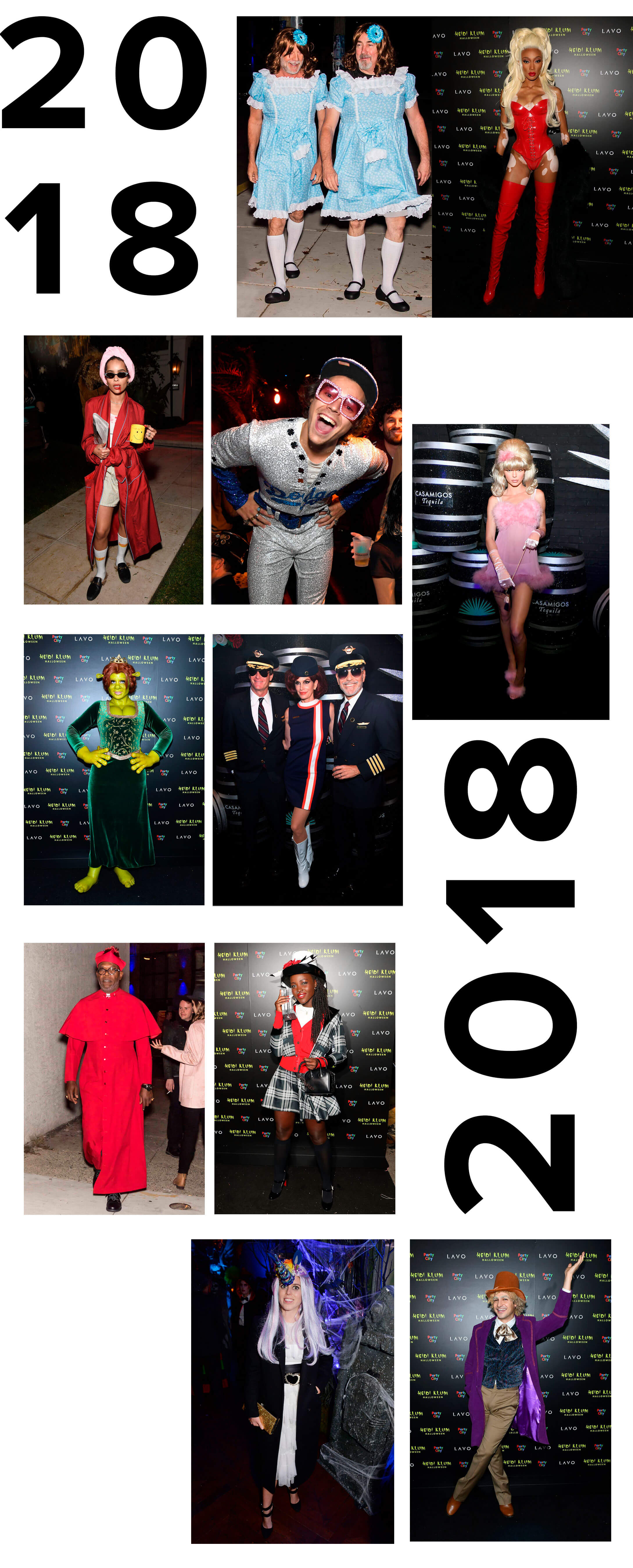 В 2018-м, кажется, все забыли о ведьмах и призраках. Модель Уинни Харлоу переоделась в американского актера и дрэг-квин РуПола, а Брюс Уиллис и его друг Стивен Идс стали близняшками из фильма "Сияние”. Зои Кравиц надела любимый халат, лоферы Gucci и нарисовала кровь, намекая, что это образ вампира за завтраком, а не домашняя одежда.