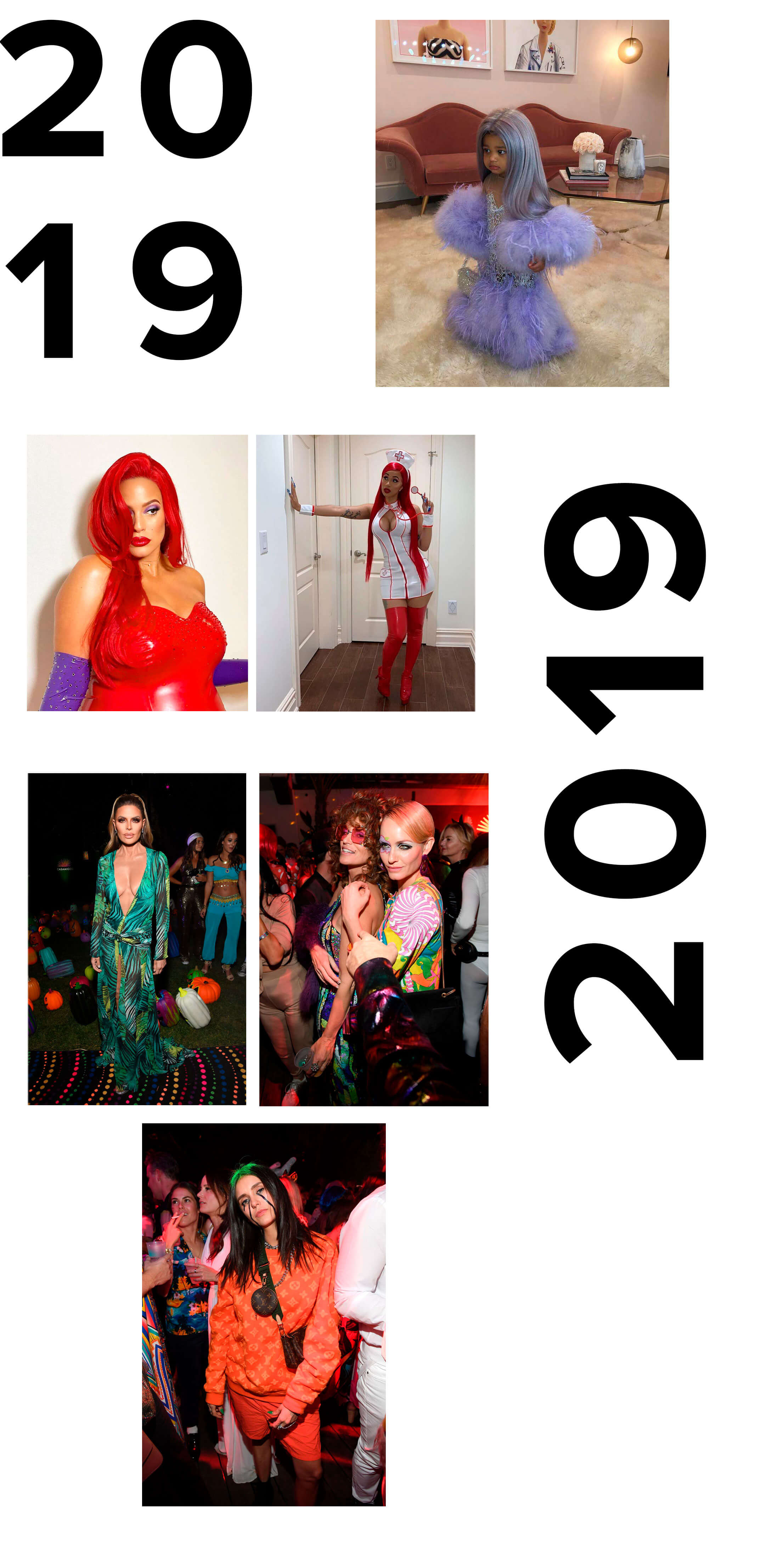 Телеведущая Лиза Ринна снова возродила то самое платье Дженнифер Лопеc, в котором певица закрыла показ Versace. Амбер Валетта выбрала образ Твигги, Синди Кроуфорд — поп-дивы 70-х. Нина Добрев с ног до головы оделась в Louis Vuitton и перевоплотилась в Билли Айлиша (при виде ее костюма нам так и хочется спеть bad guy).