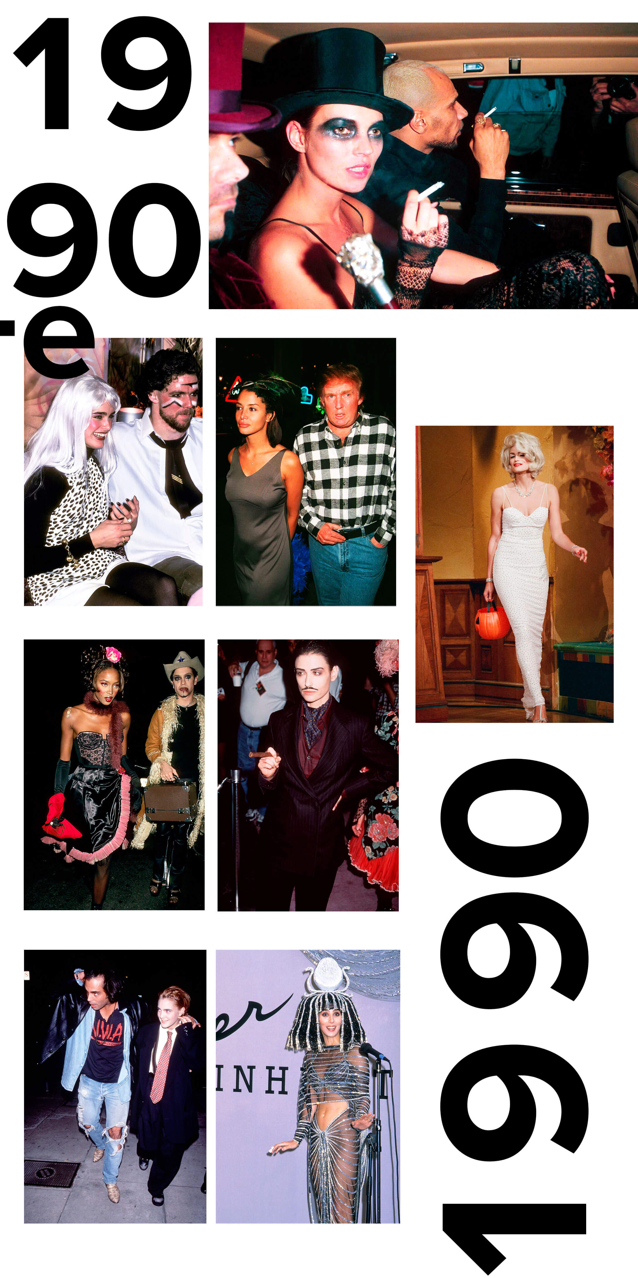 Шер выбрала образ Клеопатры (но мы то знаем, что даже без костюма она бы выглядела на все сто). Деми Мур отказалась от заезженных косичек и черного платья Вэнсдэй Аддамс и перевоплотилась в грозного отца из "Семейки Аддамс". Но из всех хеллоуинских костюмов 90-х побеждает, конечно же, Дональд Трамп — он просто снял свой привычный плохо сидящий пиджак и брюки со складочкой. А Дрю Бэрримор надела такой же.