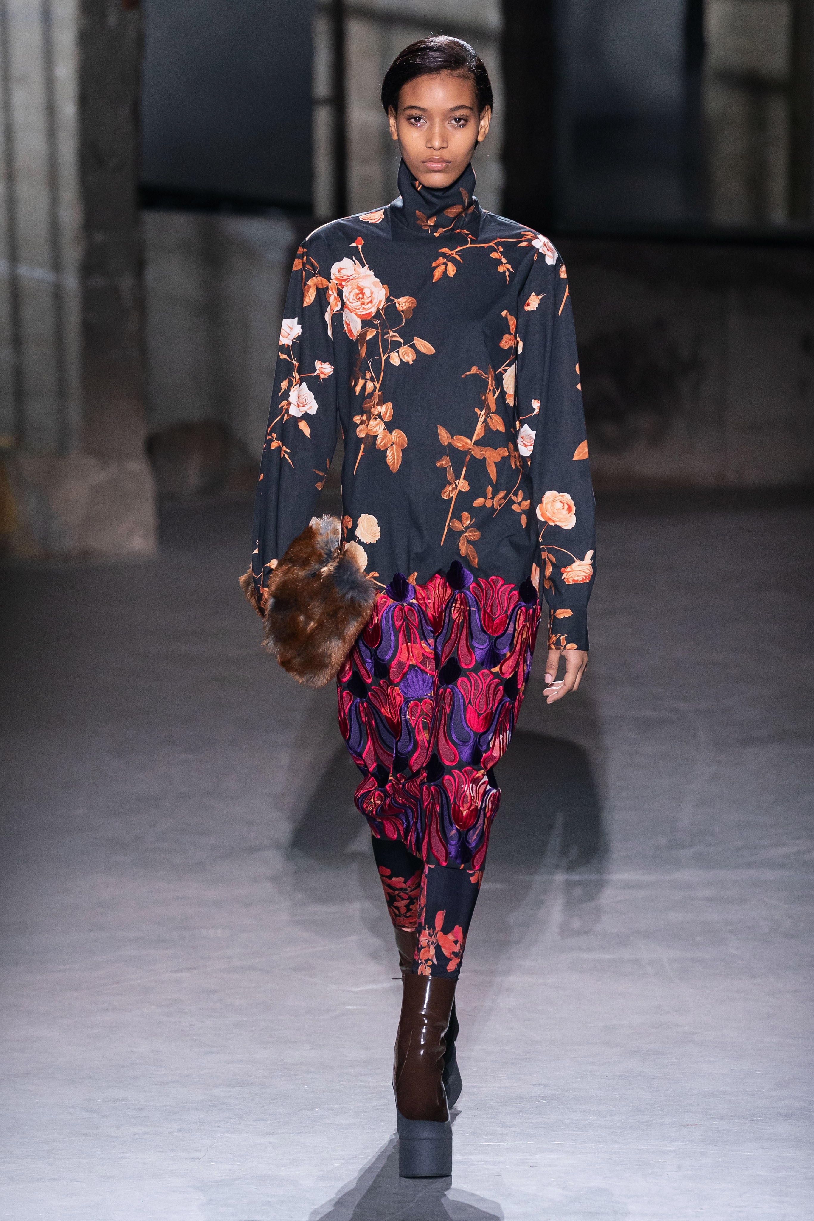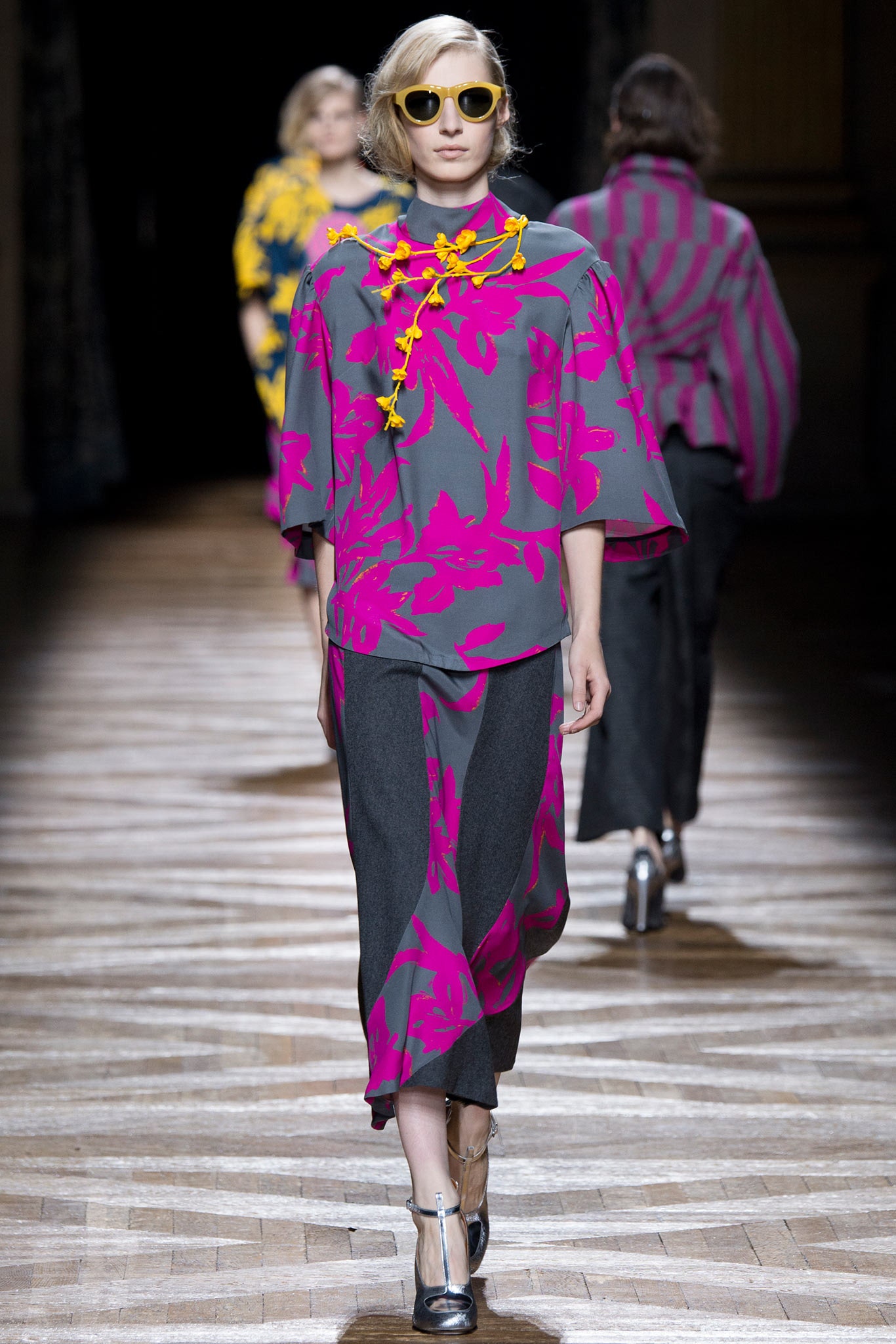 Дриса ван Нотена по праву считают королем принтов. Дизайнер черпает вдохновение из природы, искусства и культурного наследия человечества. Фламандские натюрморты, геометрические калейдоскопы из 60-х, экзотическая флора и фауна, и даже мотивы стиля Джимми Хендрикса, сплетаются в творчестве модельера в удивительно гармоничный и зрелищный узор.