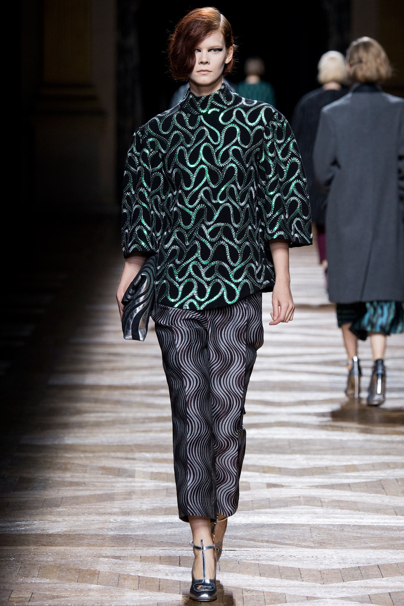 Наряду со стилистическими интерпретациями природных форм, Дрису также тонко удаётся смешивать всё это в неповторимой изысканной эклектике, которая отличает его коллекции и делает узнаваемым фирменный стиль Dries Van Noten.