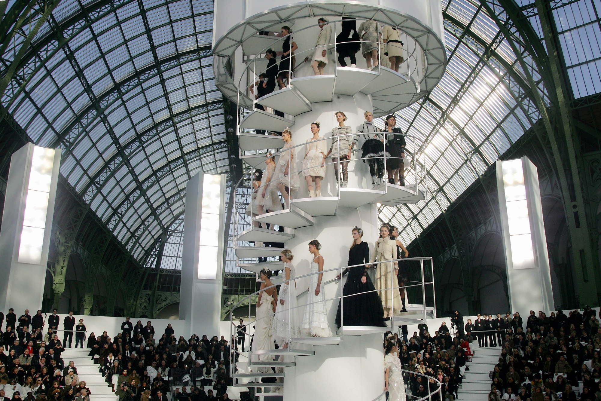 Ейфелева вежа — інша монументальна споруда, копія якої з’явилася на подіумі Chanel. Створення репліки вагою 46 тонн і висотою 38 метрів, символу Парижу, тривало шість тижнів.