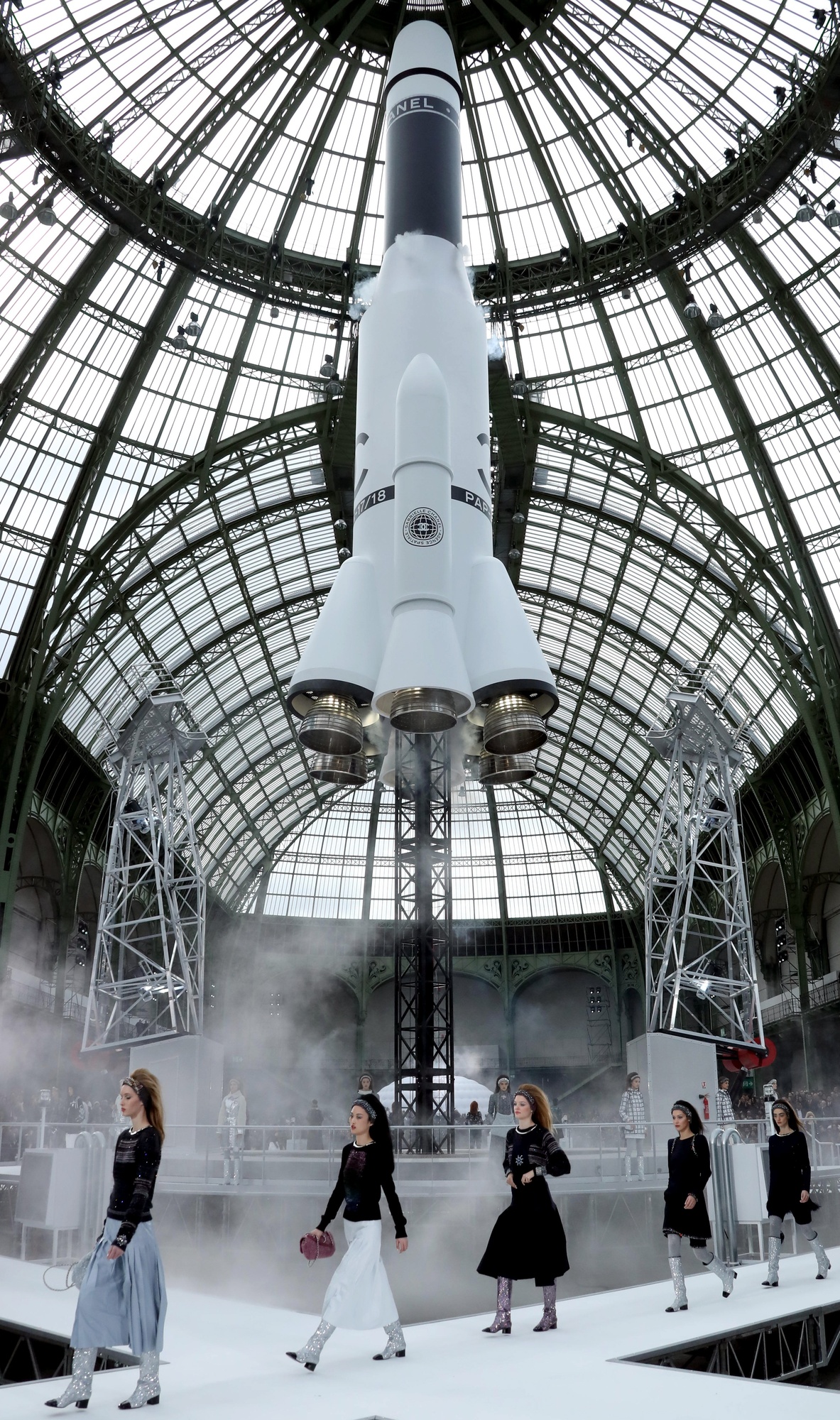 У сезоні осінь-зима 2017/2018 Chanel досліджували космічну тему, прямолінійно відобразивши це з розміщеною ракетою в Гран-Пале. Наприкінці показу вона злетіла під композицію «Rocket Man» Елтона Джона, хоч, звісно, і не пробилася крізь скляну стелю споруди.