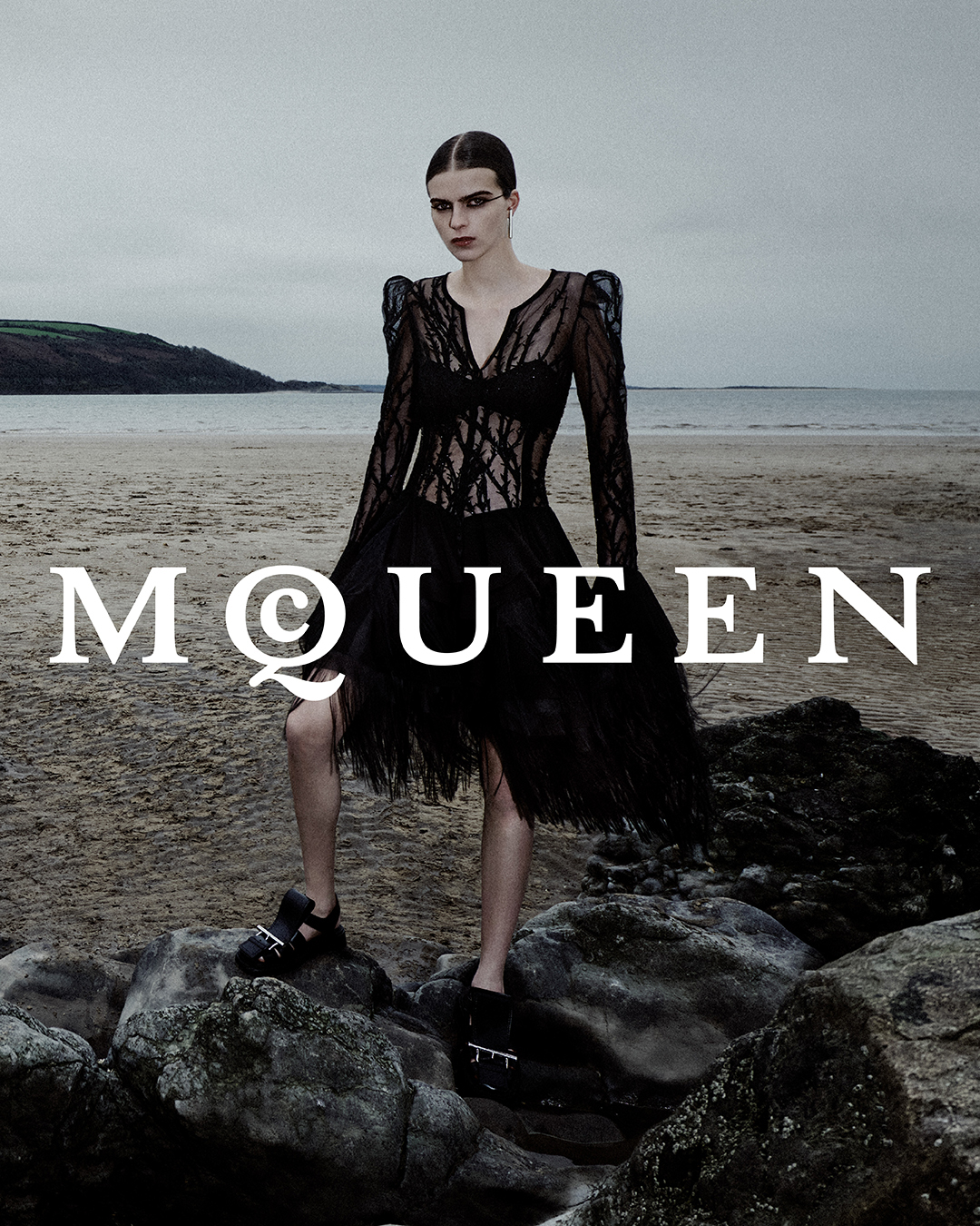 Містичний кампейн McQueen весна-літо 2025 зображає моделей на тлі уельського замка Лланстефан. Зняті Гленом Лачфордом, світлини досліджують дух банші — фольклорного образу, що представлений в історії McQueen і відсилає до ірландської спадщини креативного директора Шона МакГірра.