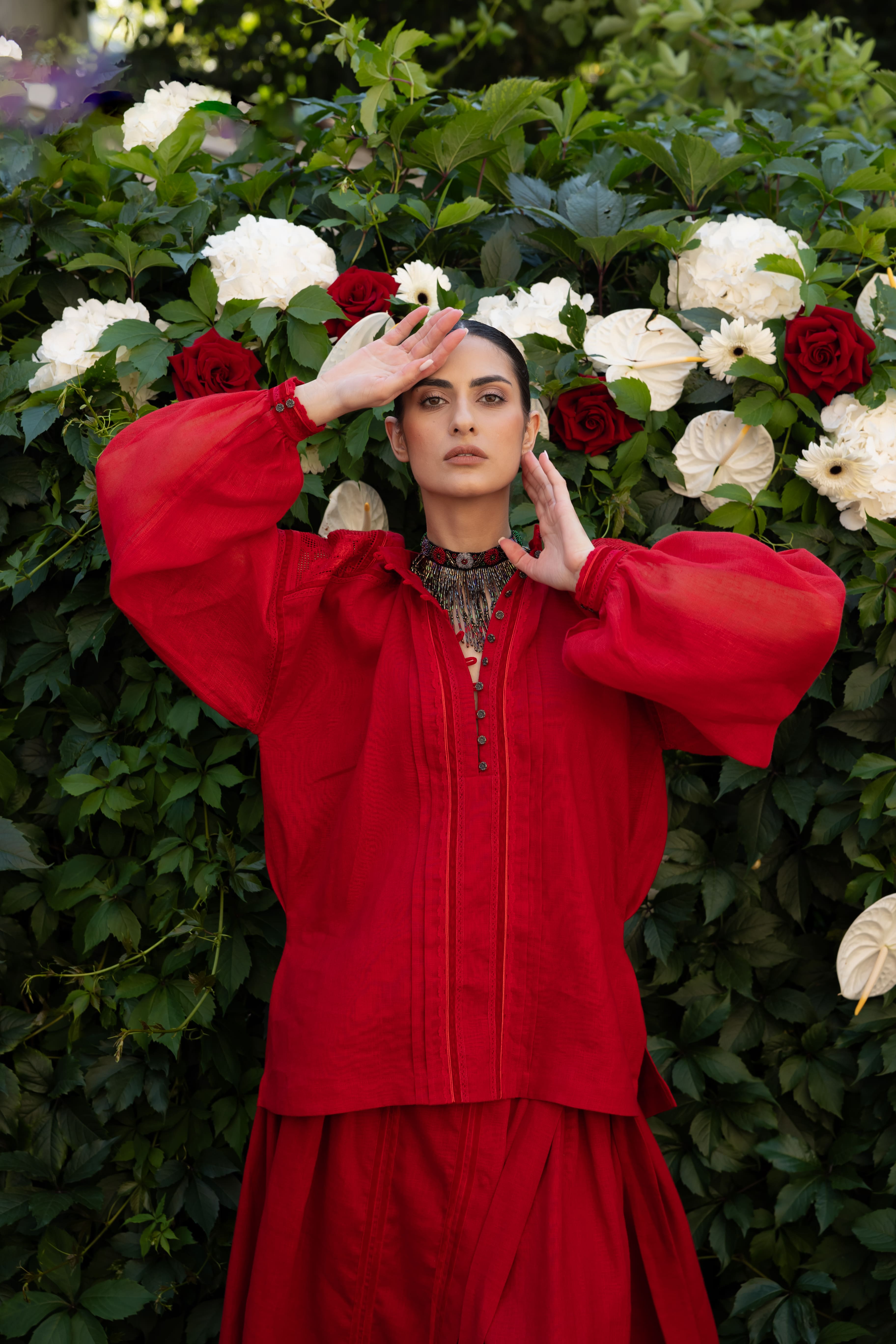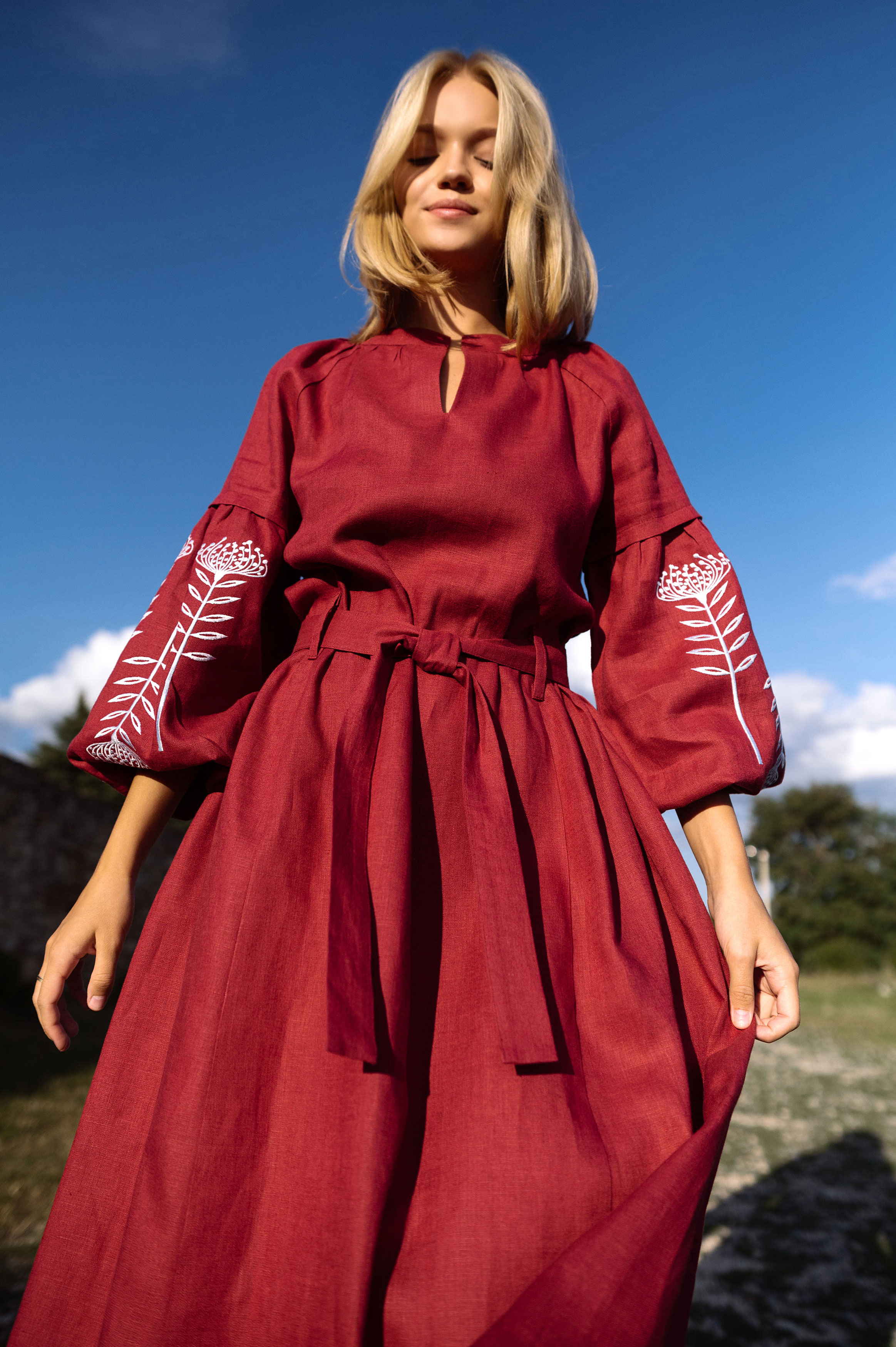 Ексклюзивна колекція червоного вбрання бренду Khrystyna Rachytska, створена спеціально до Дня незалежності, символізує життя, яке є в кожному з нас, яке ми бережемо та цінуємо. Обраний червоний колір, як символ любові та вогню, привертає увагу не лише до одягу, а дозволяє задуматися про ціну життя, яку Україна сплачує за збереження свого роду та спадщини. Вбрання — не просто одяг, а синтез незламного духу, любові та приналежності до нації в сучасному баченні світових тенденцій.