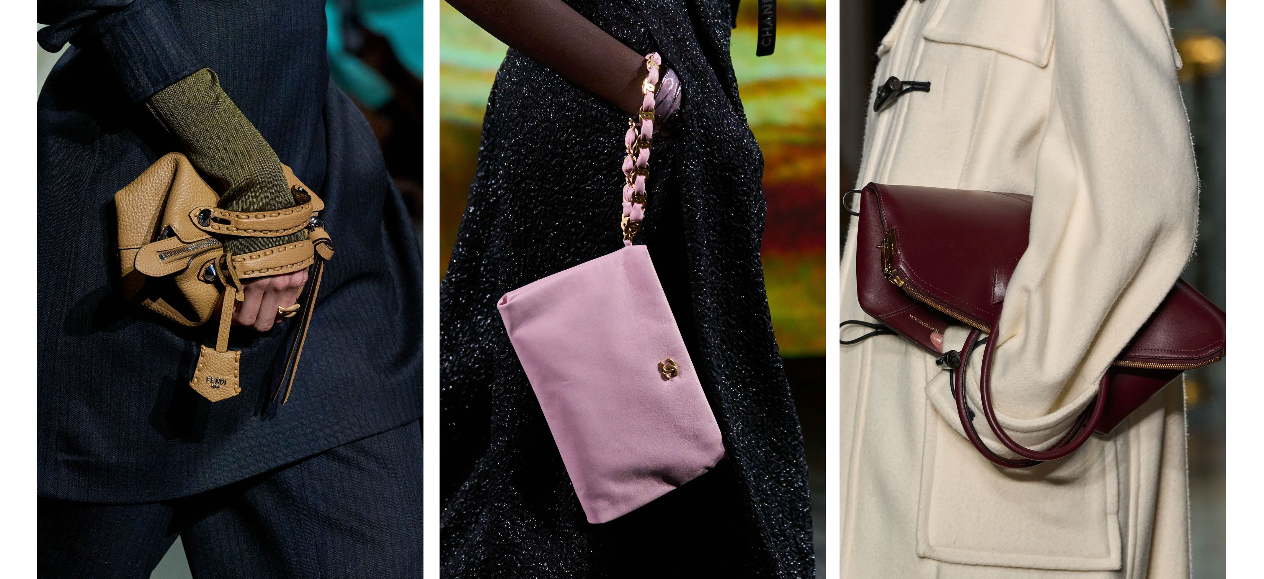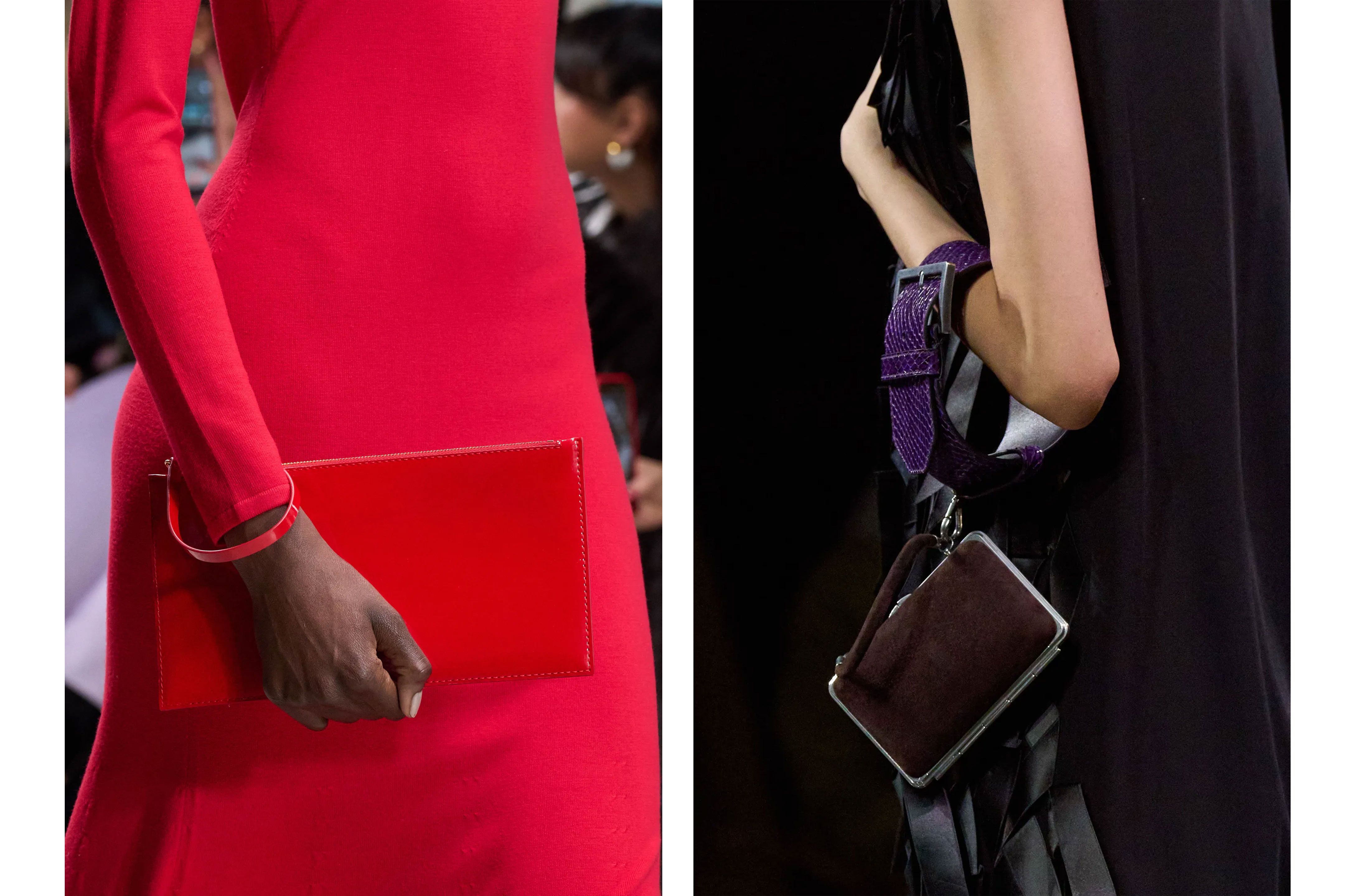 Для Chanel такий аксесуарний симбіоз став прийомом, що додав акцентності блискучій максісукні. Проте тренд на сумку-браслет, як підтверджують подіуми, стосується не лише компактних моделей. Наприклад, Victoria Backham зробили ставку на масивніші сумки, зокрема з подвійною ручкою, котру було помічено й у Fendi.