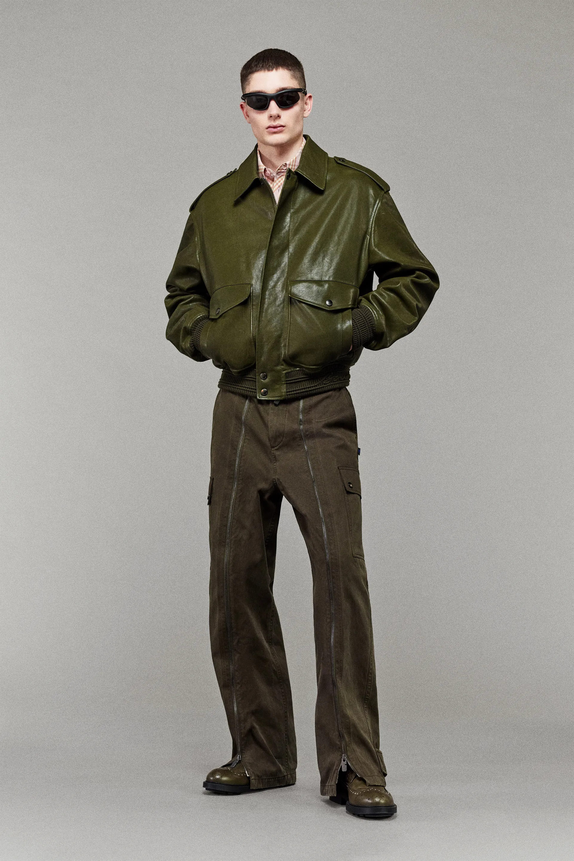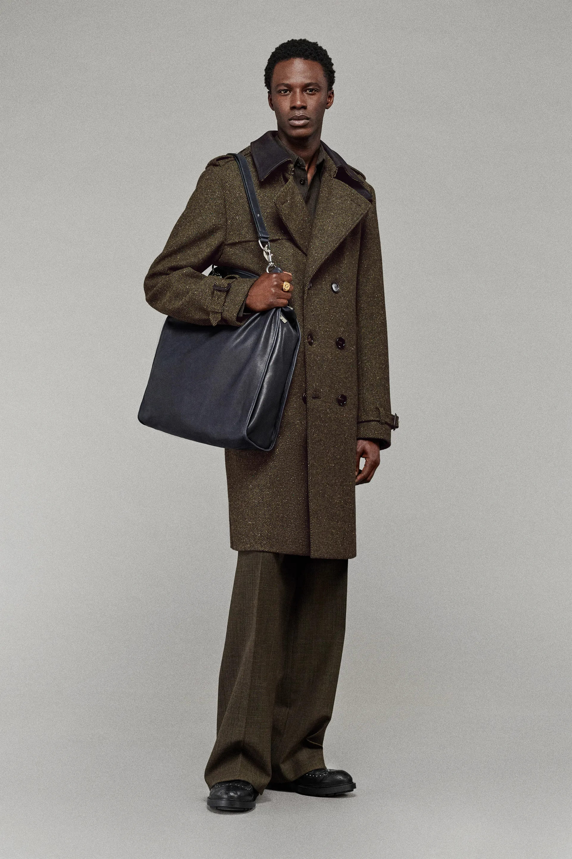 Тренчі, як і частина іншого верхнього одягу в resort — 2025 колекції, отримали водонепроникне покриття. Присутнє в колекції й пальто з вовни, яке було зістарене за допомогою спеціального фарбування та техніки нашарування тканин.