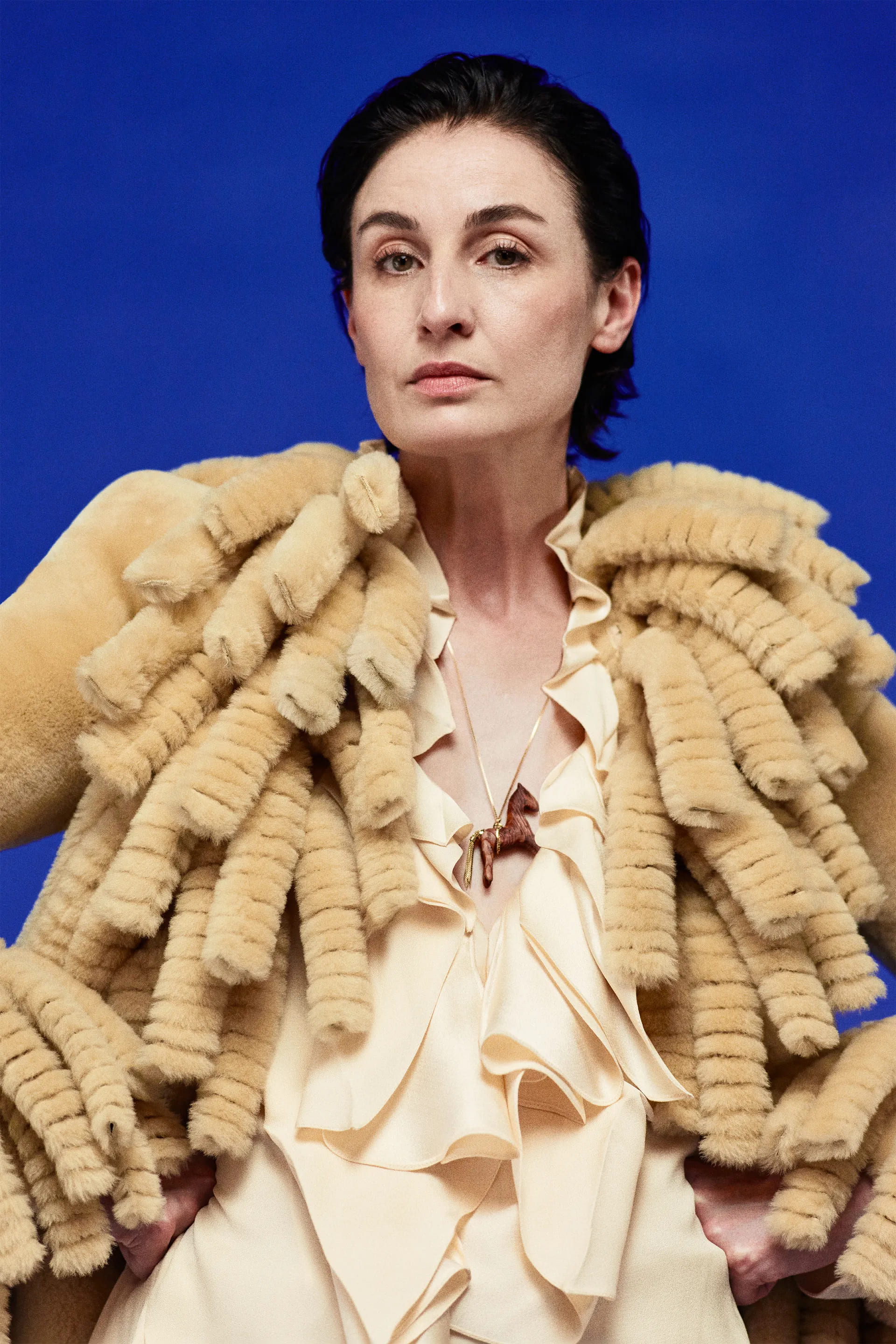 На противагу британський розсудливості дизайнер додав до колекції яскраві декоративні рішення. Наприклад, метелики, вирізані лазером, банти та рюші на сорочках, а також шерстяні китиці на шубах.