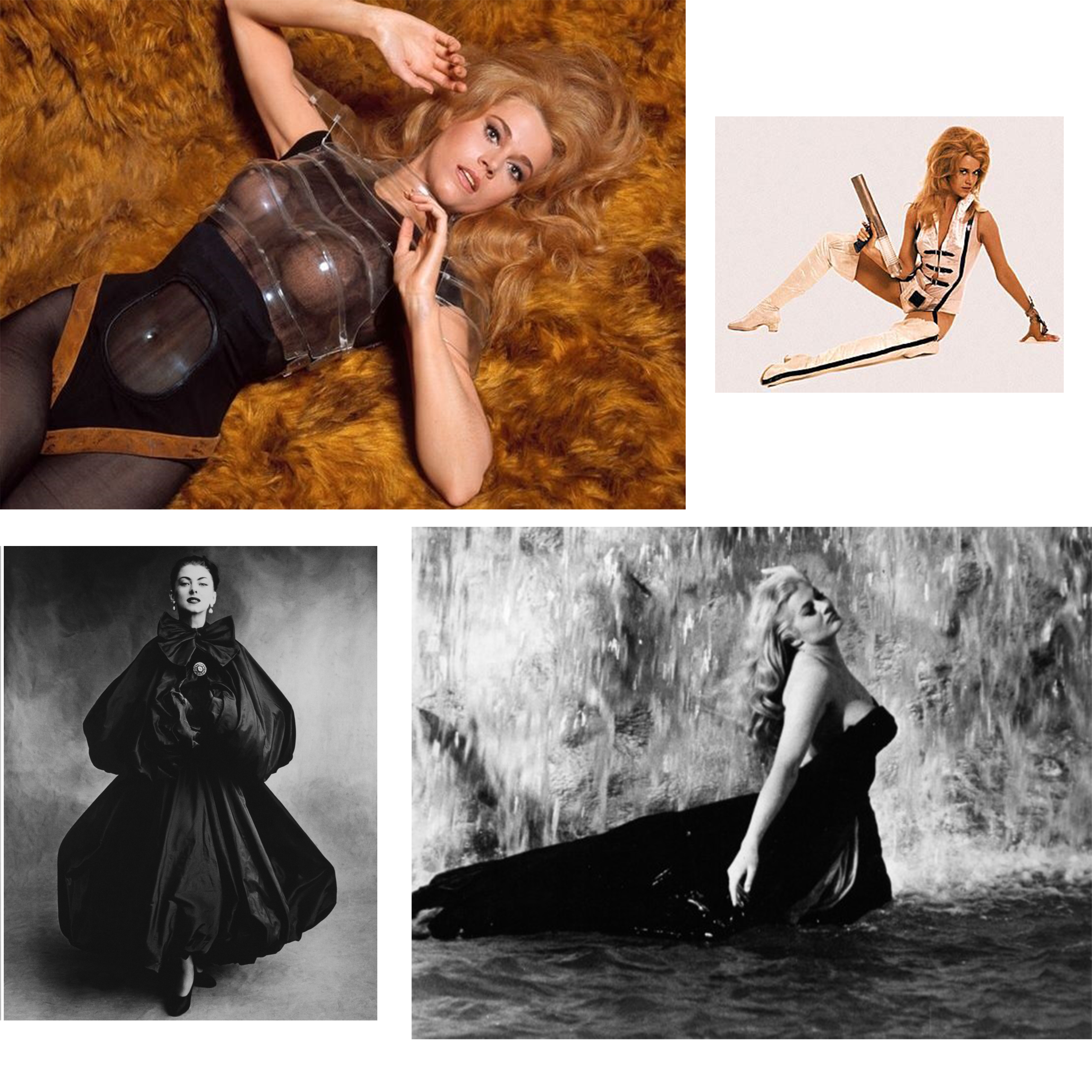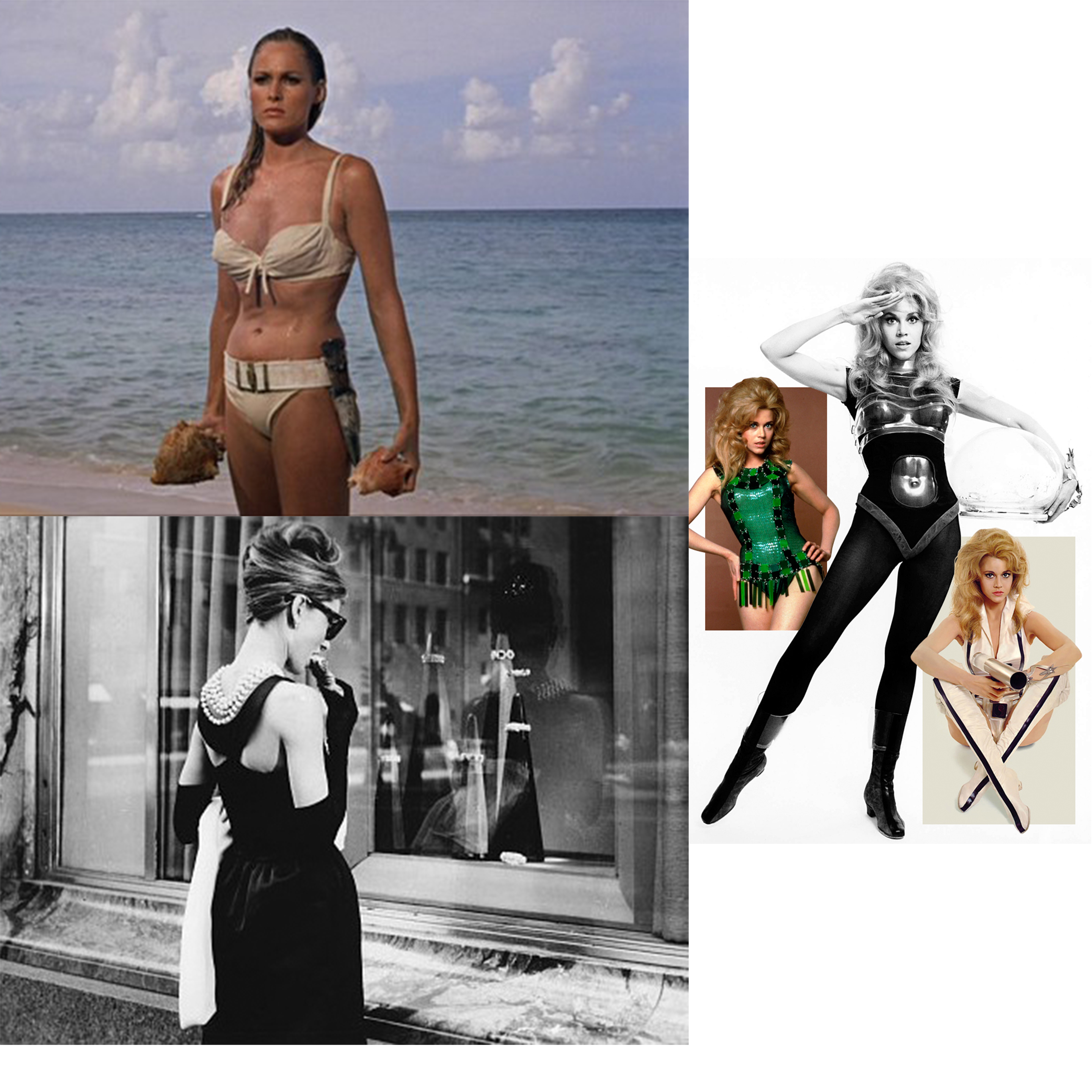 В то время как Хэд и Харрис создавали преимущественно лаконичные образы, другие костюмеры давали полную волю своему воображению, благо научно-фантастические фильмы об инопланетных цивилизациях и будущем были на пике популярности. Яркий пример футуристических нарядов в кино этого десятилетия – лента Роже Вадима «Барбарелла». Костюмы героини Джейн Фонды часто ошибочно считают работами французского дизайнера Пако Рабана, хотя большинство из них на самом деле были созданы Жаком Фонтереем. Наряд Барбареллы из финального эпизода фильма был все же пошит по эскизам Рабана и вошел в историю как самый сексуальный женский костюм в кино.