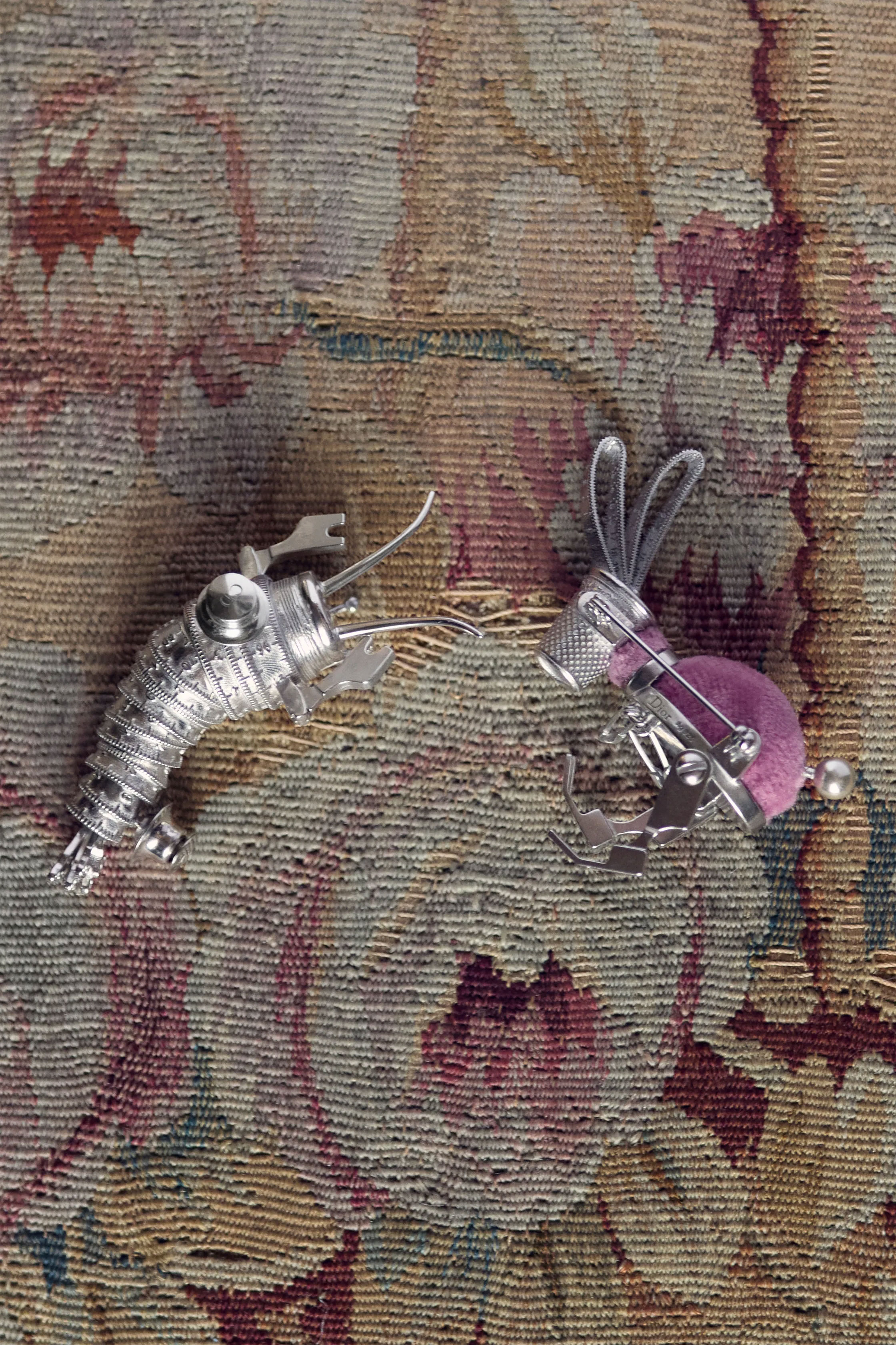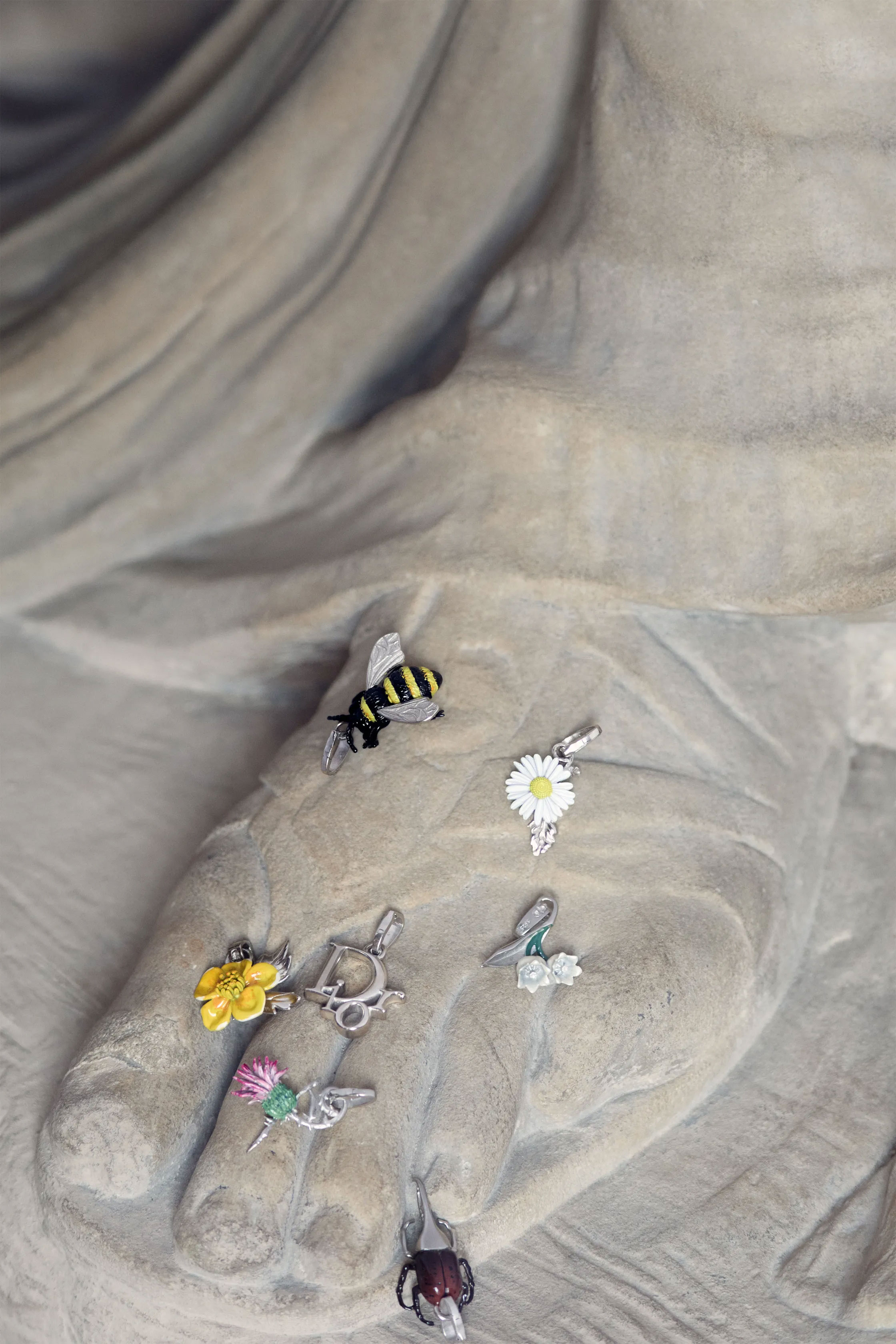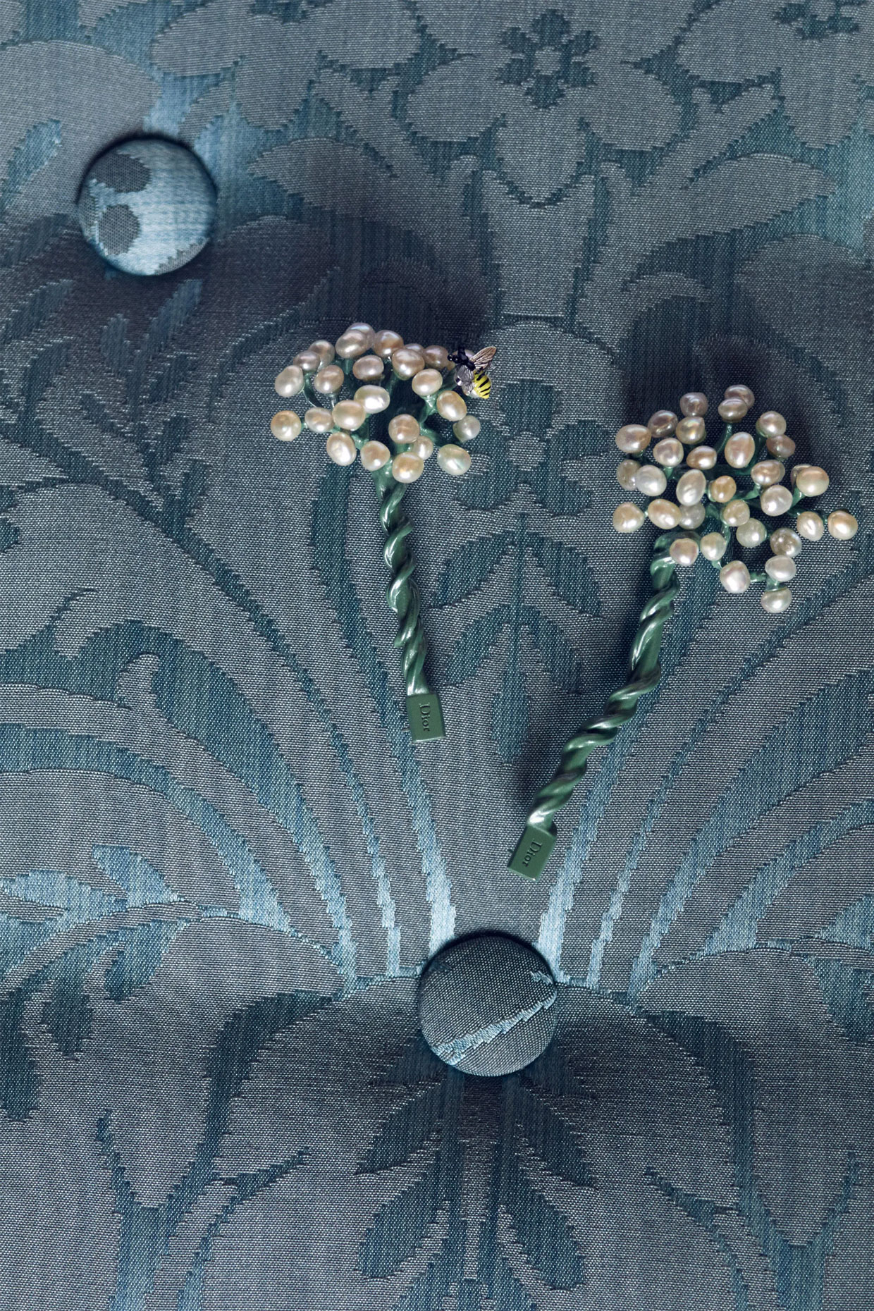Серед кольорової палітри, окрім базових відтінків, — королівський синій, трендовий рожевий, глибокі зелений та червоний. Окрему увагу Dior приділили і лінійці прикрас — від ланцюжків з бджілками та ромашками до брошей з логотипом модного Дому.