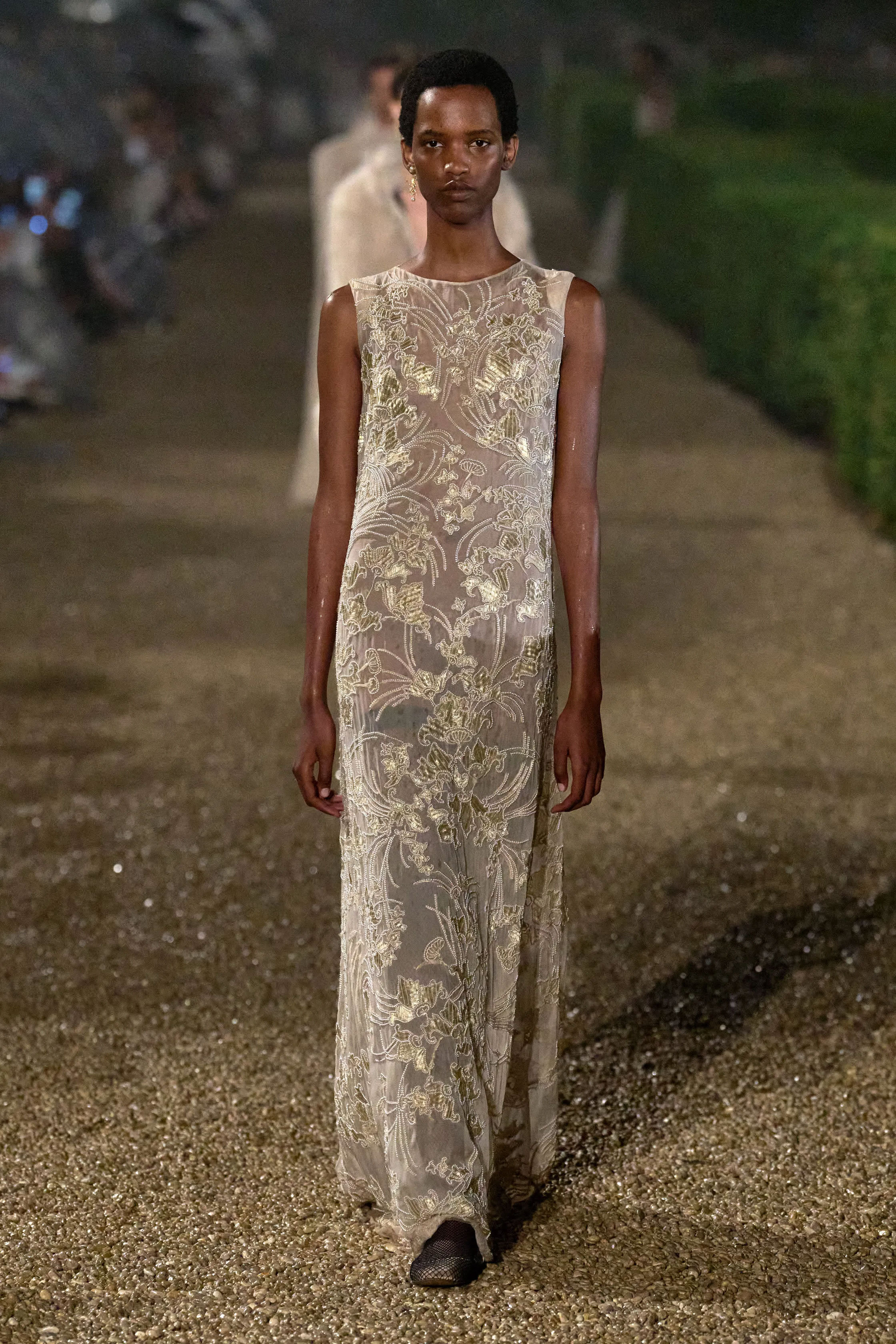 Показ колекції Dior пройшов у розкішних садах вілли Альбані, а дощ, який розпочався напередодні, додавав шоу особливої атмосфери. На створення образів resort – 2026 К’юрі надихнув роман La Bella Confusione італійського письменника Франческо Пікколо. Сюжет книги розгортається в 60-х роках та розповідає про один з найцікавіших періодів в історії кінематографу, а саме про зіткнення Федеріко Фелліні та Луккіно Вісконті в боротьбі за Золоту пальмову гілку Венеційського кінофестивалю.