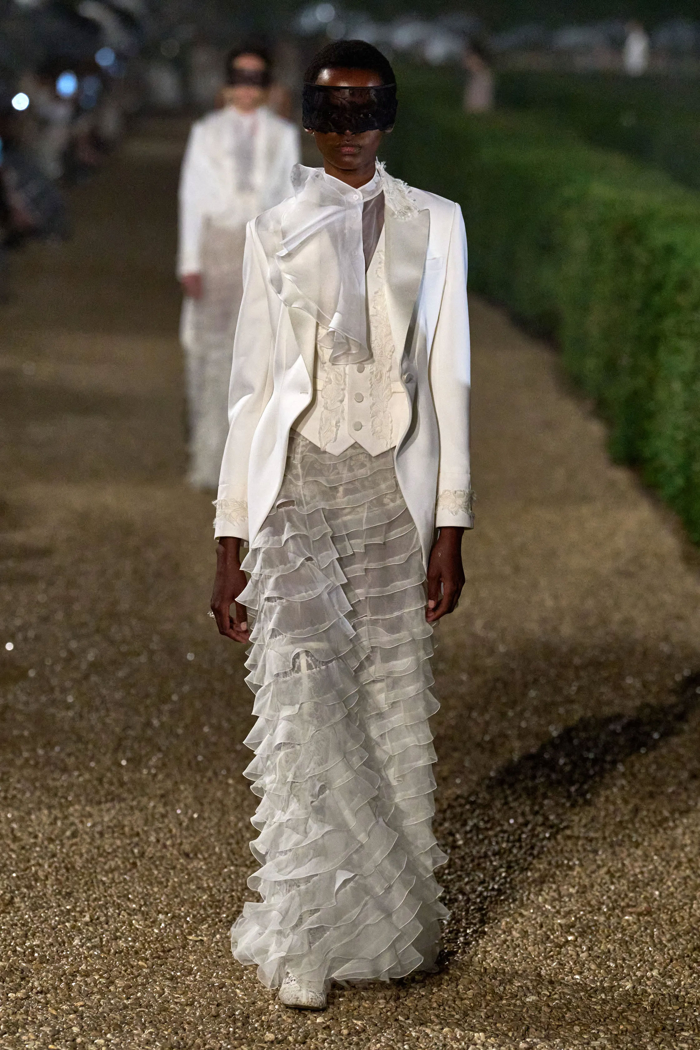 На римському шоу були помічені моделі, очі яких були зав’язані чорними мереживними пов’язками. Поки що залишається лише здогадуватися, був це стилістичний прийом чи прощання з Домом Dior, особливо, коли Кім Джонс для свого фінального показу використав такий ж аксесуар.