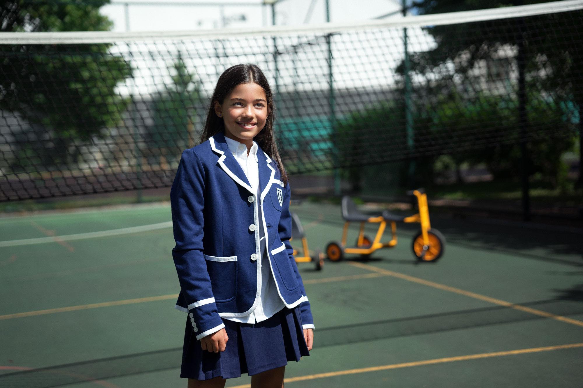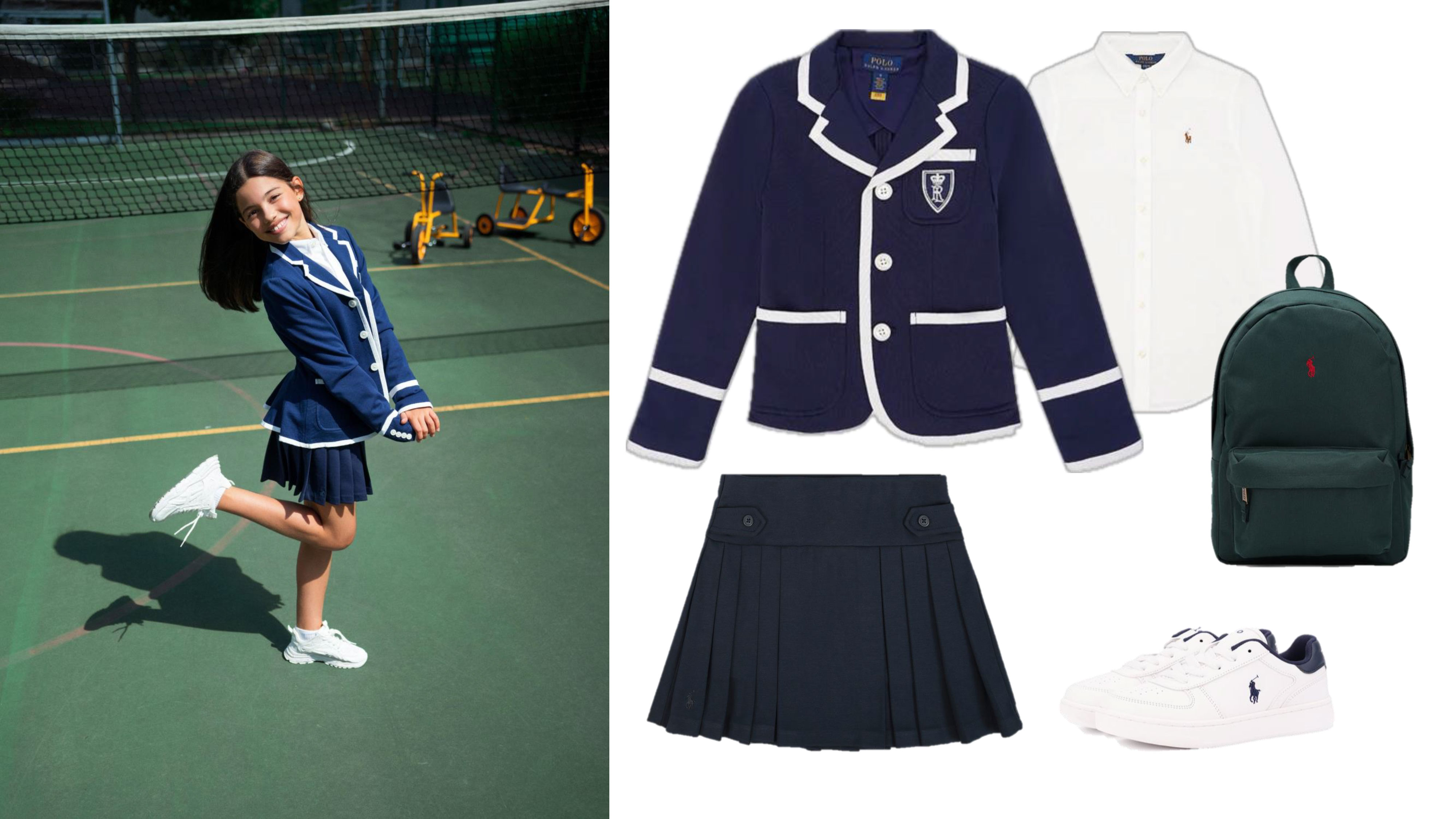 Сорочка, Polo Ralph Lauren. Жакет, Polo Ralph Lauren. Спідниця, Polo Ralph Lauren. Рюкзак, Polo Ralph Lauren. Кеди, Polo Ralph Lauren