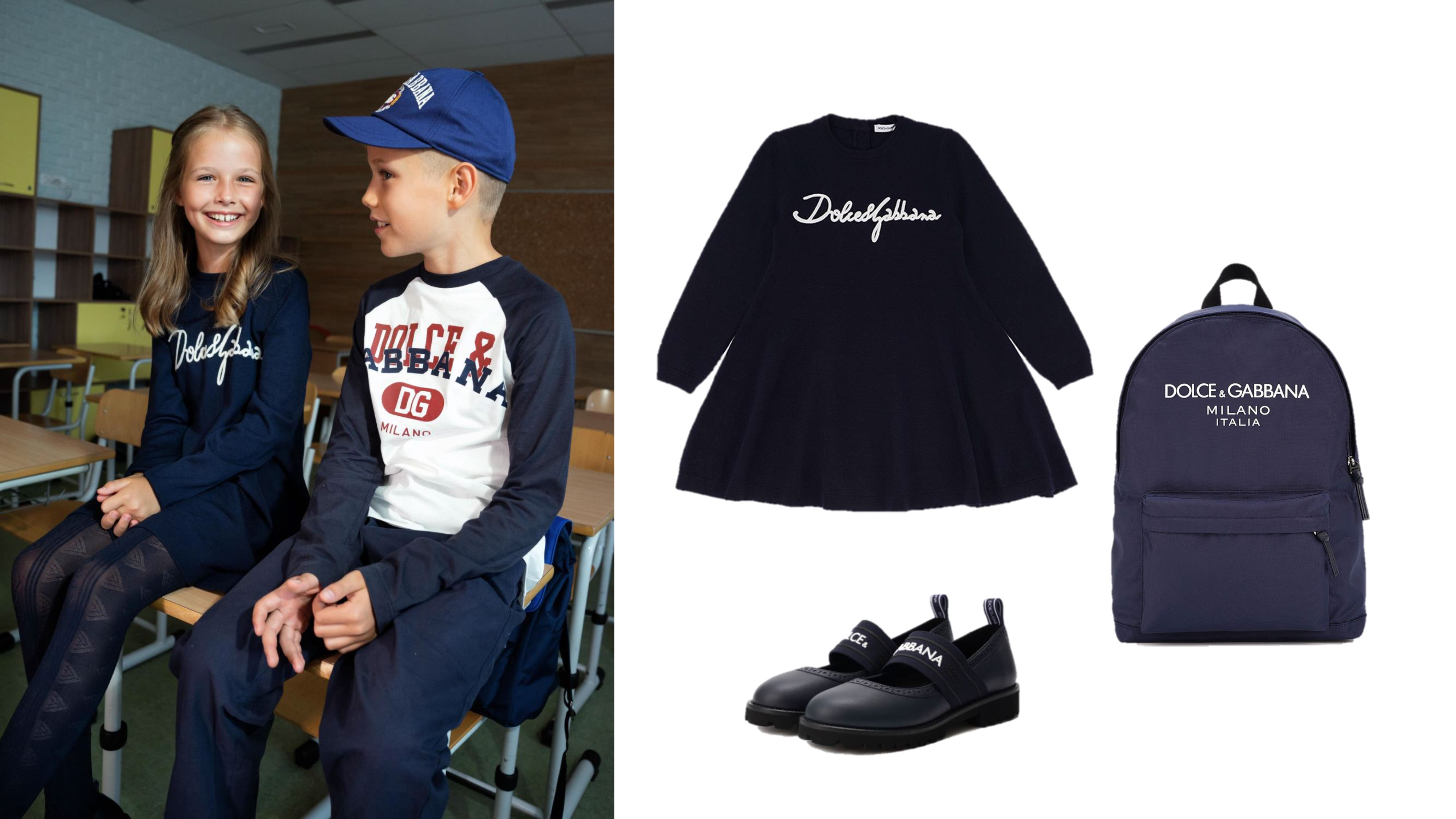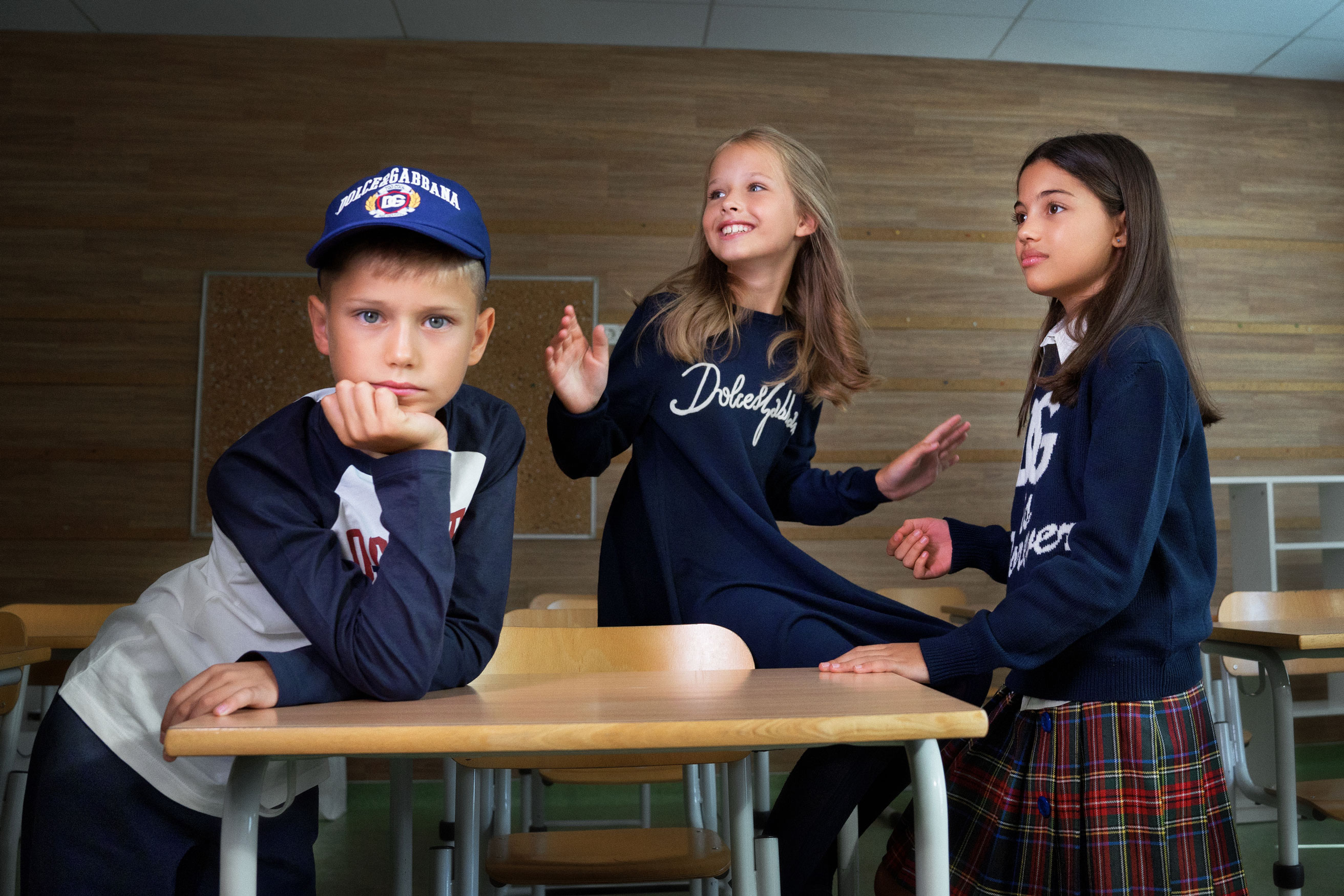 Гардероб для гри – так презентується дитяча колекція Back-to-School. Виходячи з неповторного стилю англійських коледжів, бачення Стефано і Доменіко переосмислює британську строгість у спортивному ключі.