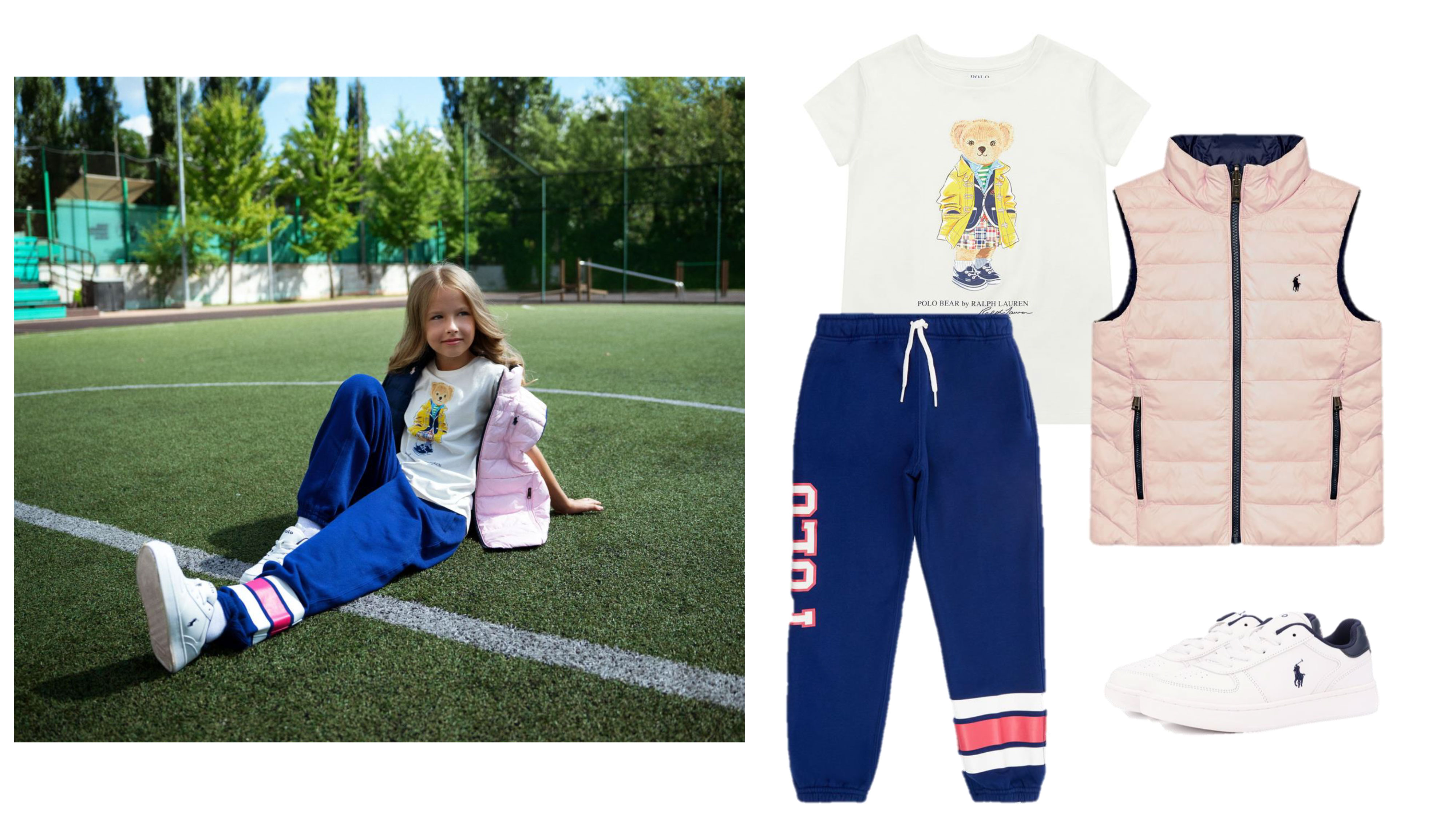 Футболка, Polo Ralph Lauren. Жилет, Polo Ralph Lauren. Спортивні штани, Polo Ralph Lauren. Кеди, Polo Ralph Lauren