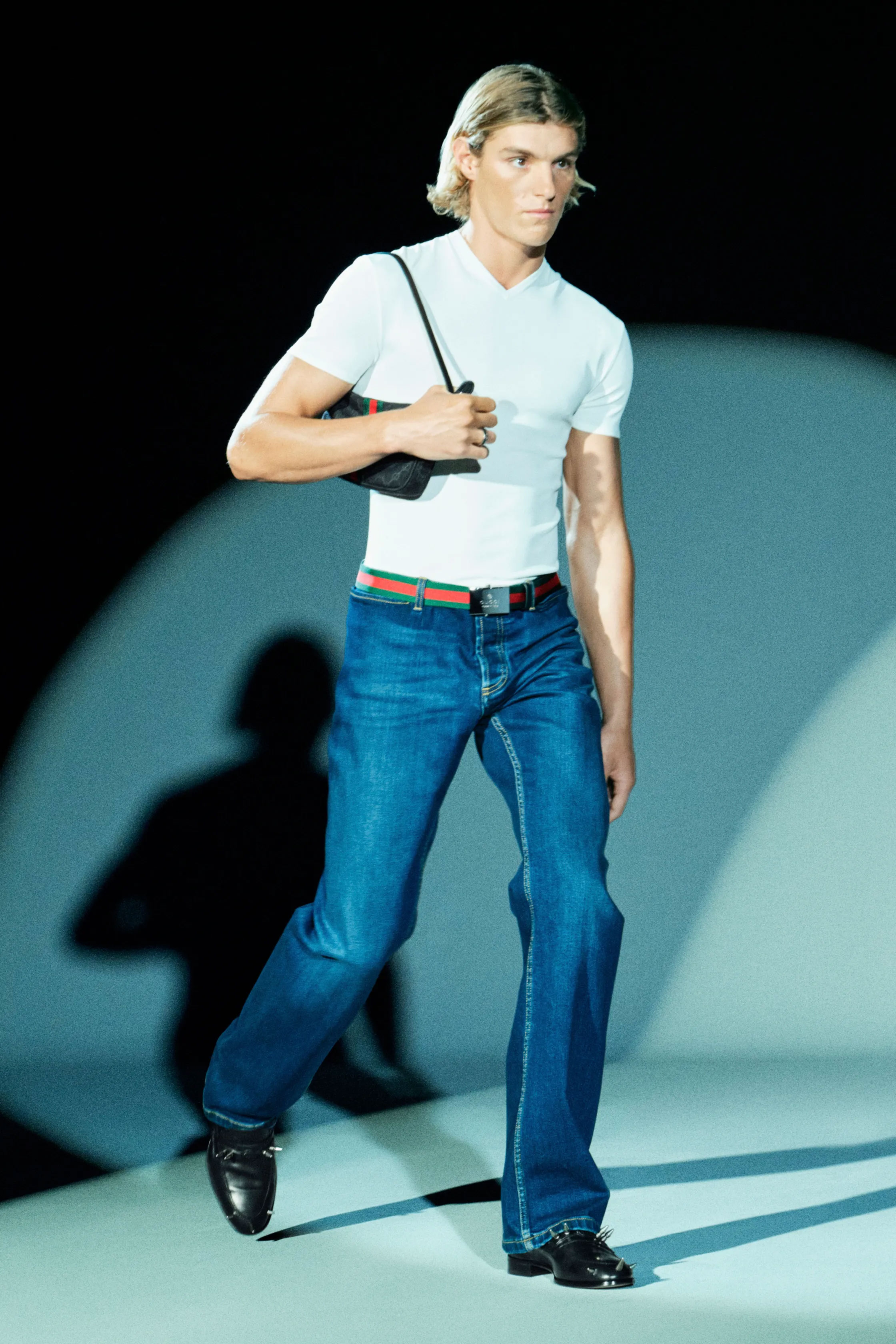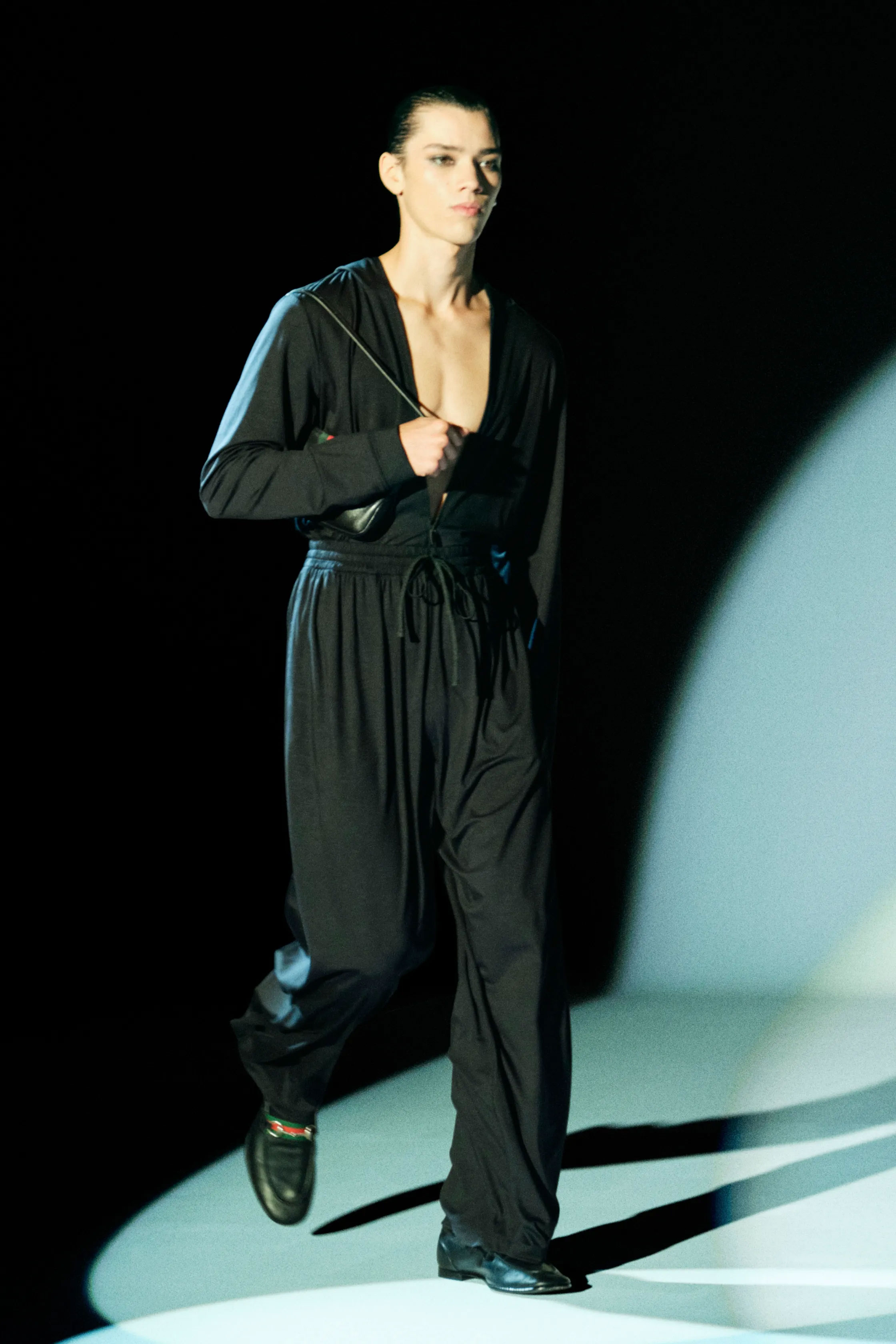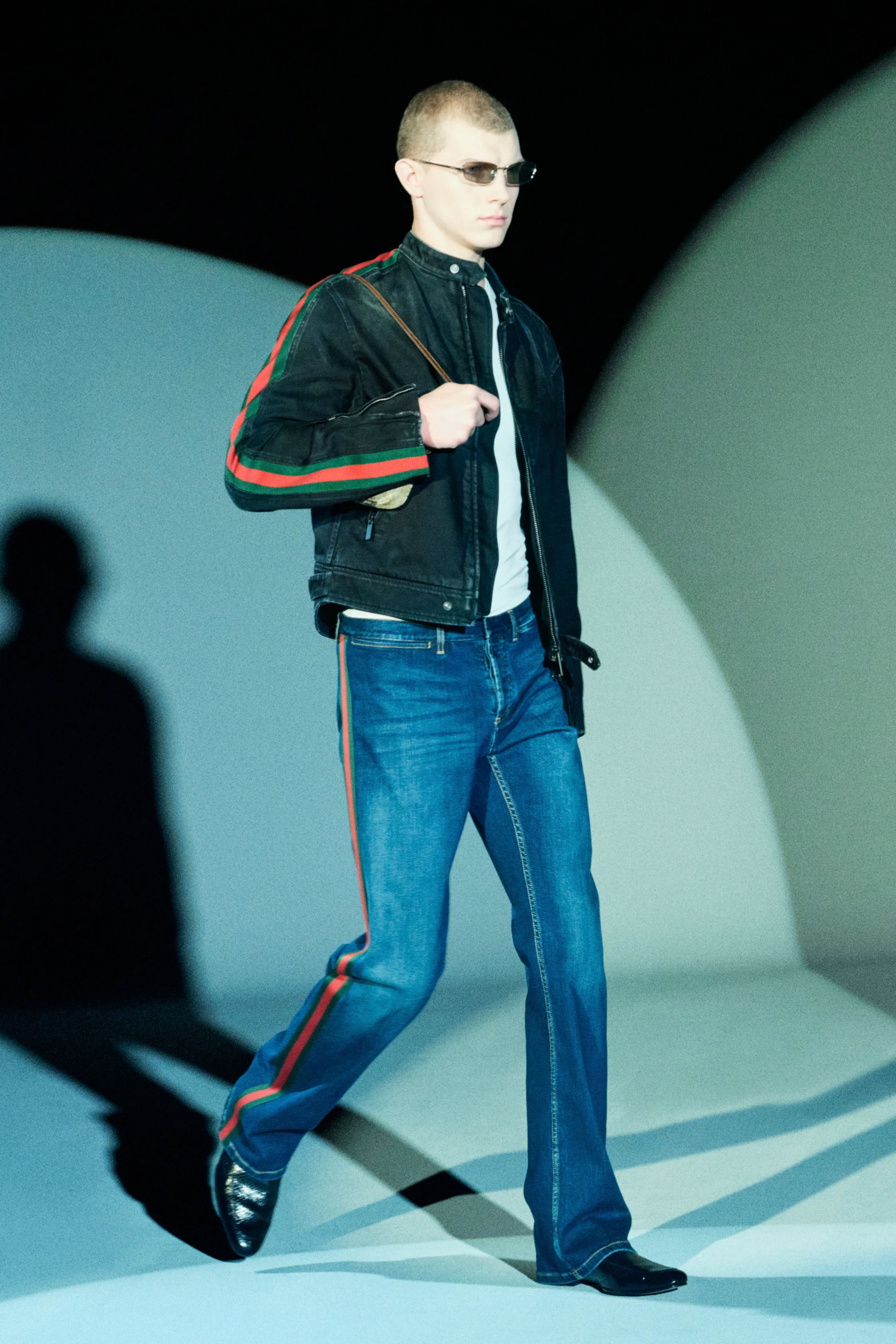 У колекції Generation Gucci на передній план виходять речі, у яких технічність межує з комфортом. Джинси з прихованими деталями, костюми з шовку, що нагадують подорожній одяг, та інтерпретації спортивної екіпіровки створюють лінійку, де рух та ергономіка визначають образ. Текстурований верхній одяг створений із поєднання різних матеріалів — від шерсті до пера — на легких та напівпрозорих основах.